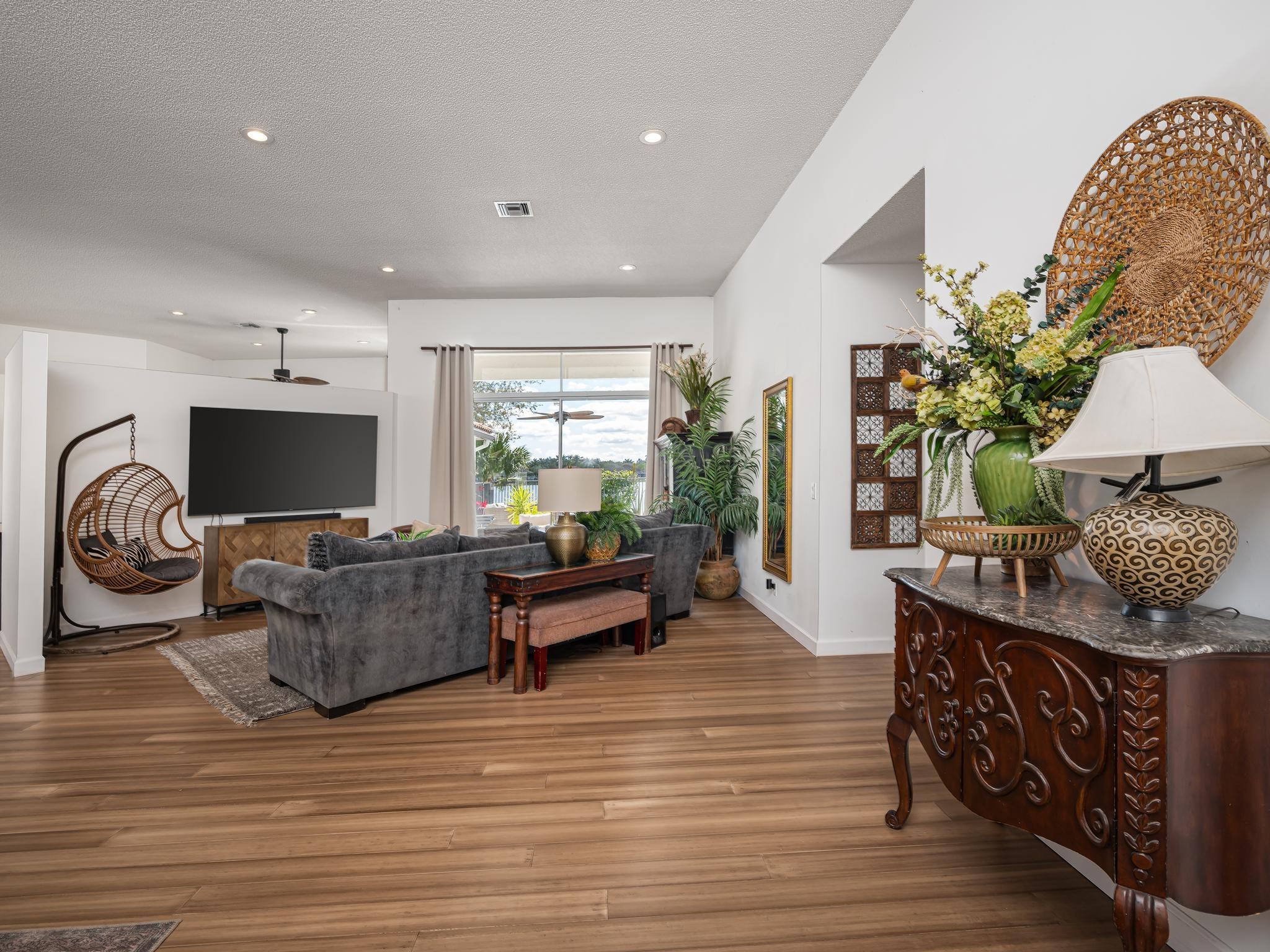 Tropical Paradise with a calming breeze from the endless water views of this 5 bedroom/3 bath pool home in Guard Gated community of the Islands. Brand New roof 2022 and Gutters!! 2022 Kitchen remodeled with all new appliances including wet bar wine fridge. Oversized Pantry!!! Hurricane Impact glass in several of the windows. 2022 Pool Motor. Fully fenced lot with doggy run. High ceilings. Cabana Bath remodeled out to the pool. Split floor plan where Master and 5th room/den(no closet) are one side of the home and 3 bedrooms on the other side. Community boasts covered playground, basketball court, and sand volleyball court. Walking distance to A rated middle and a bike ride away from A rated elementary. Cypress Bay HS zone as well. Sunrise and Sunsets are epic from this home.