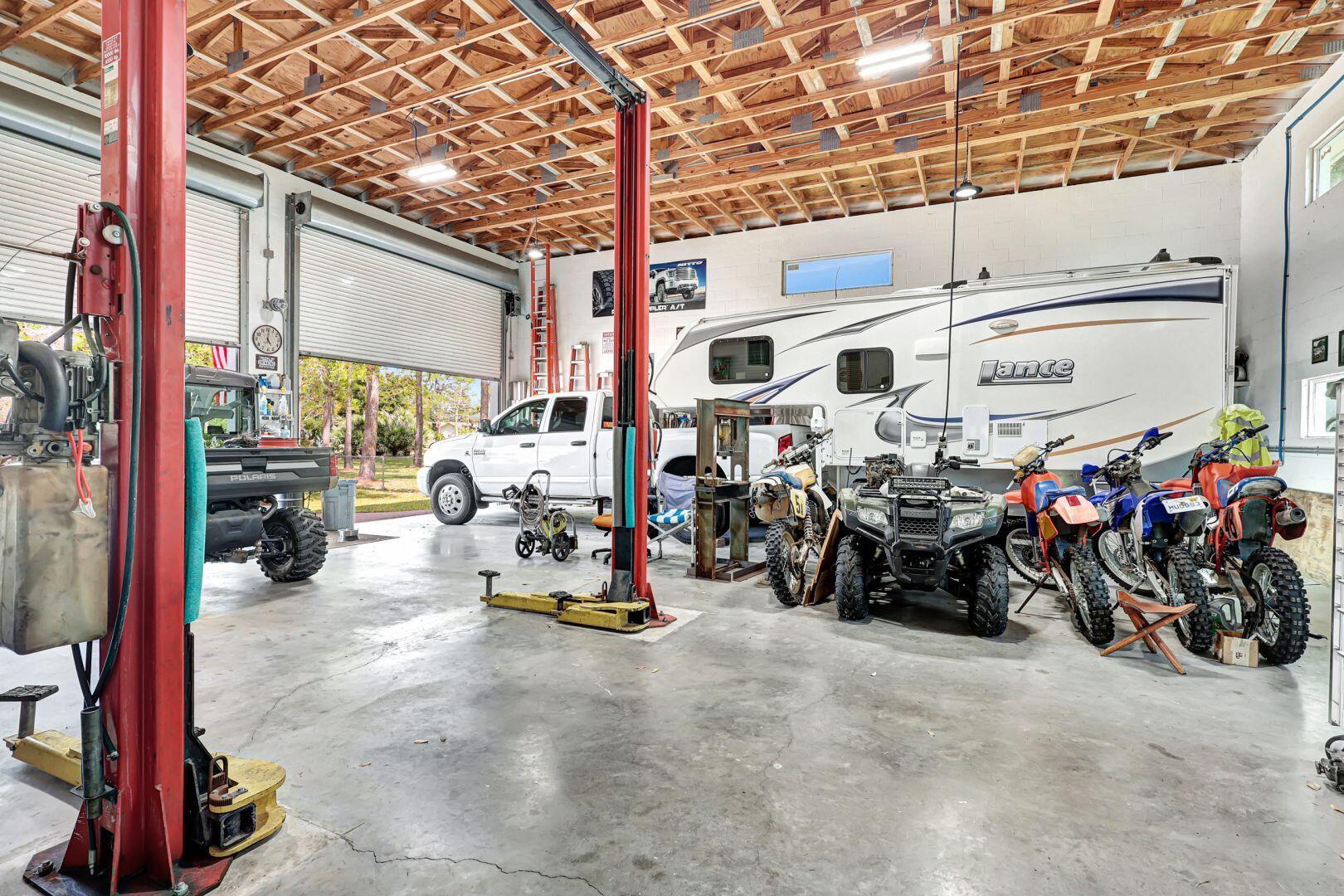 REDUCED OVER $250,000! MOTIVATED SELLER! Need space for your business, storage for your 40 foot RV or your boat? This detached lofted enclave garage; a distinguished two-story structure spanning 1900 square feet on the ground floor, with an additional 400 square feet on the second floor, currently designated for storage but easily convertible into a bedroom. Thoughtfully crafted with a dedicated workshop area. Enhancing its versatility, a robust 10,000 pound auto lift stands ready to streamline automotive maintenance tasks. Equipped with both 30 amp and 50 amp RV hookups, the garage caters to diverse requirements, ensuring seamless funchtionality. Boasting a lofty 16 foot ceiling height and adorned with two 14 foot automated doors, accessibility is effortless and convenient. Additional