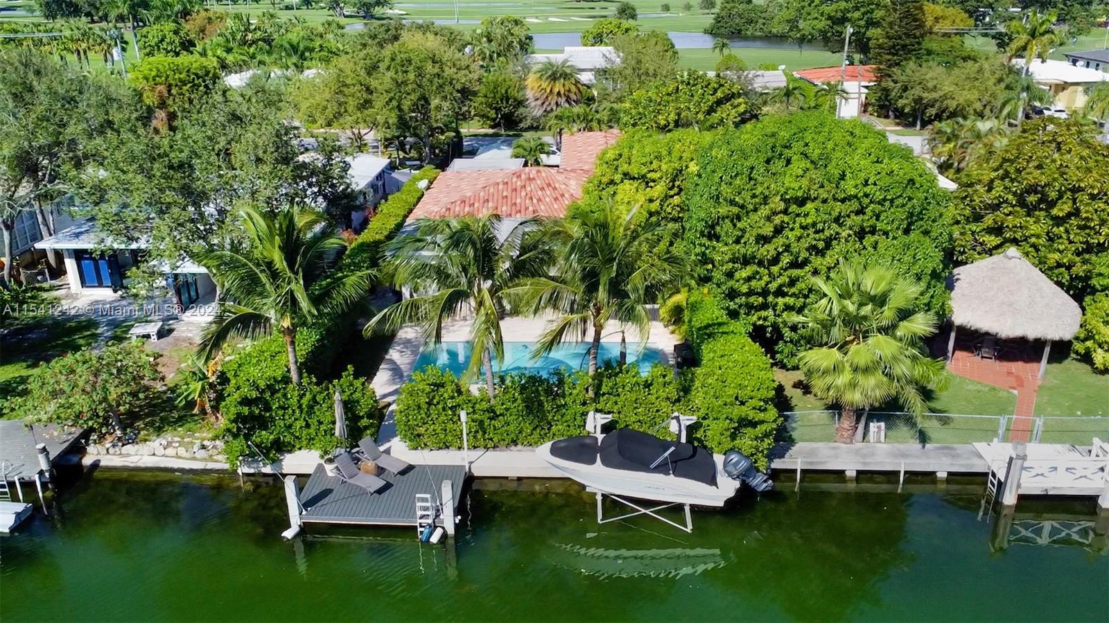 Lowest priced waterfront home on Normandy Shores! Mid-century modern Miami Beach waterfront home located on highly sought-after Normandy Shores Golf & Tennis Community. This beautifully renovated 2,635 square foot home features a breathtaking curved architecturally designed living room with views to the lush tropical gardens, dining room, open kitchen, 3 bedrooms, den/TV room, 4 bathrooms, terrazzo and Italian white marble floors, impact PGT windows and doors throughout. Relaxing back yard features a stunning pool with jacuzzi, private dock with Trex composite decking, and a 5,000-pound boat lift ready to accommodate your boat! Gated and guarded island with golf, tennis, and beautiful parks! A must see!
