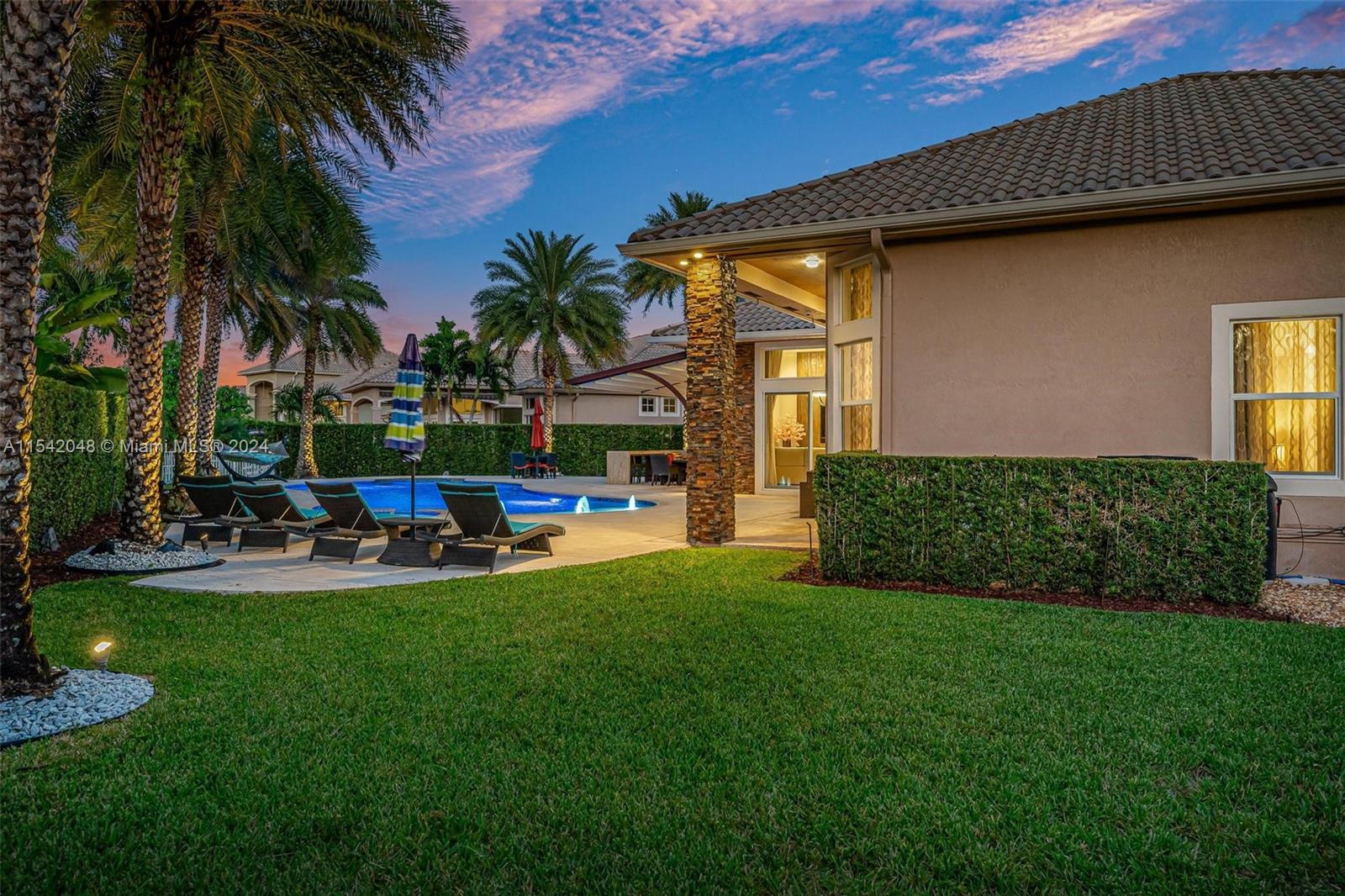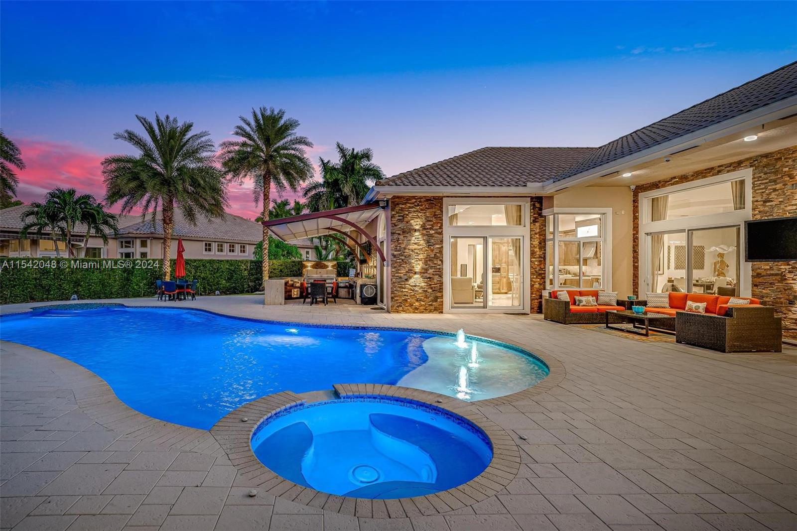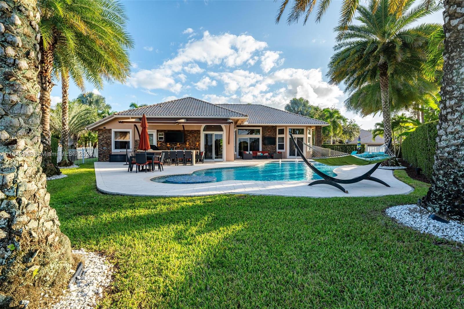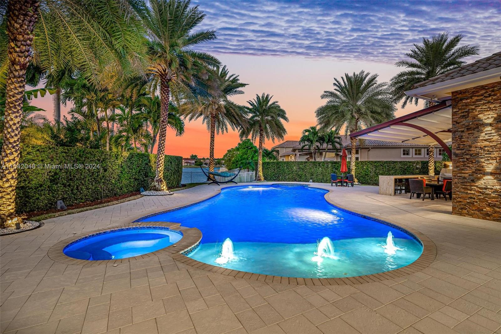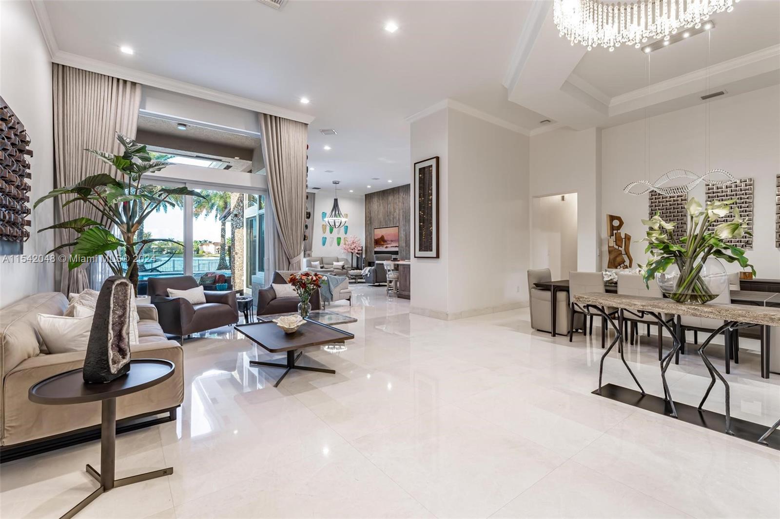 UNPARALLELED LUXURY ESTATE WITH OVER A MILLION DOLLARS IN METICULOUS RENOVATIONS. SITUATED ON A PRIME LAKEFRONT LOT IN THE SANCTUARY AT PEMBROKE FALLS, THIS LENOX-SUPREME HOME BOASTS 4 BEDROOMS + OFFICE & 3 BATHS. CHEF'S KITCHEN FEATURES TOP-OF-THE-LINE APPLIANCES AND QUARTZITE COUNTERTOPS. MARBLE FLOORS IN MAIN AREAS, SWAROVSKI CRYSTAL CHANDELIERS. IMPACT WINDOWS & DOORS, CUSTOM FRONT DOOR IMPORTED FROM GERMANY. OUTSIDE, AN ENTERTAINER'S DREAM PATIO INCLUDES A SUMMER KITCHEN, WOOD BEAM AWNING, OVERLOOKING THE OVERSIZED HEATED POOL AND SPA AND AMAZING LAKE VIEWS. PROFESSIONALLY LANDSCAPED GROUNDS OFFER ELEGANCE AND PRIVACY FOR YOUR ENJOYMENT. ENJOY ACCESS TO A GATED COMMUNITY WITH A RECREATION CENTER AND PREMIUM AMENITIES ENSURE SECURITY AND COMFORT. THIS IS LUXURY LIVING AT ITS FINEST!