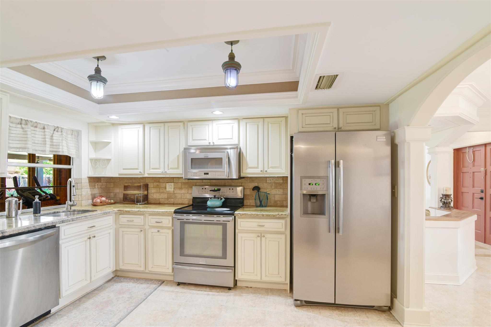 NO HOA DUES WILL SAVE YOU $1000s EACH YEAR! STORAGE for BOAT/RV, freshly painted in Greek Villa, step through the double front doors, you'll immediately notice the attention to detail, from the coffered ceilings gracing the living room and kitchen to the HIGH IMPACT STORM PROTECTION. TERMITE WARRANTY. The kitchen has granite sourced from India, adorned with rivers of rock formations, formal dining area, high-impact windows and a durable barrel tile roof, this home is not only beautiful but built to withstand the elements Fenced yard, 10ft. metal gates, enclosed FLEX AREA ideal for office, fitness center, or game room Attached pergola with lighting & fans, sparkling pool, pond w/ fountain. *TAX ROLE REFLECTS NO HOMESTEAD OR TAX EXEMPTIONS CURRENTLY ON HOME Owner/Agent