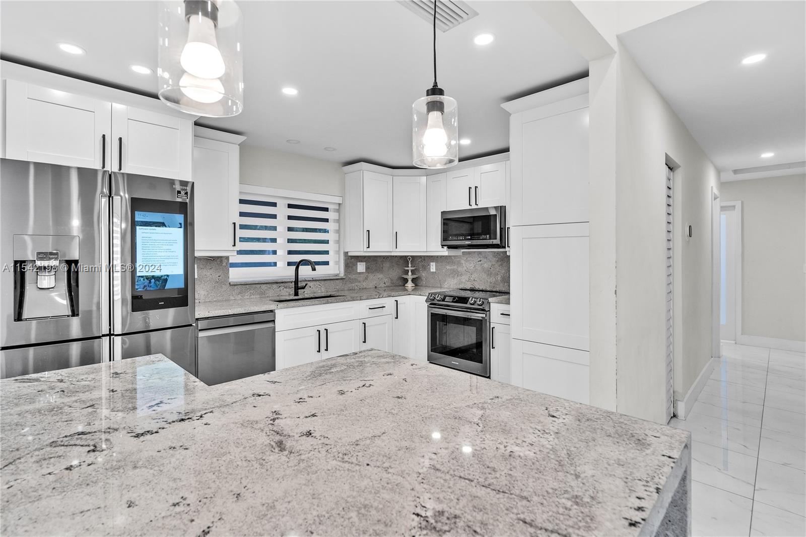 Beautiful remodeled 4 bedroom/2 bath home with pool and 2 car garage partially converted into a studio which can be rented for over $1,200/M!! Impact windows and doors (installed 2020) throughout the entire home, master bath with door out to pool area. The kitchen has beautiful cabinets, granite counter tops and newer appliances. New Roof installed 2021 with solar panel system which saves you tons. Located in the great sought out area of Sunrise with NO HOA!! Great location close to plenty of shopping areas like Sawgrass Mall, amazing parks, and highways nearby.