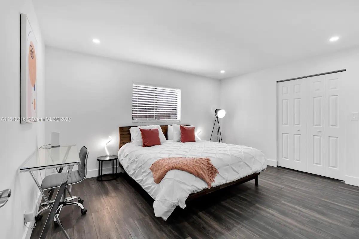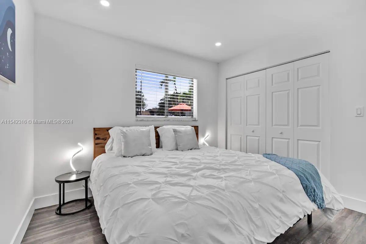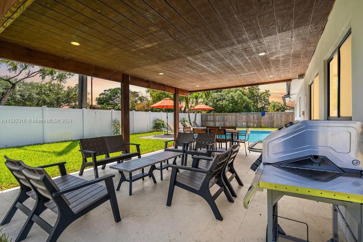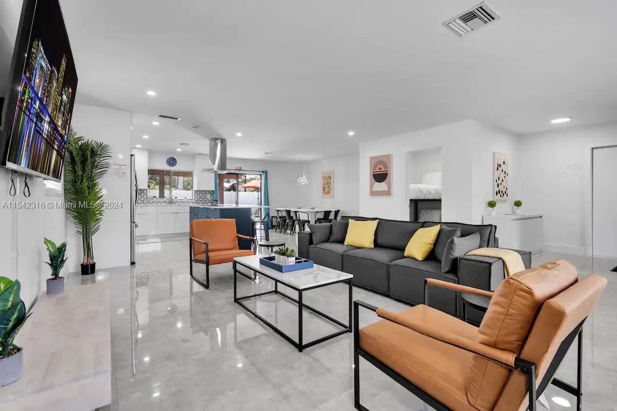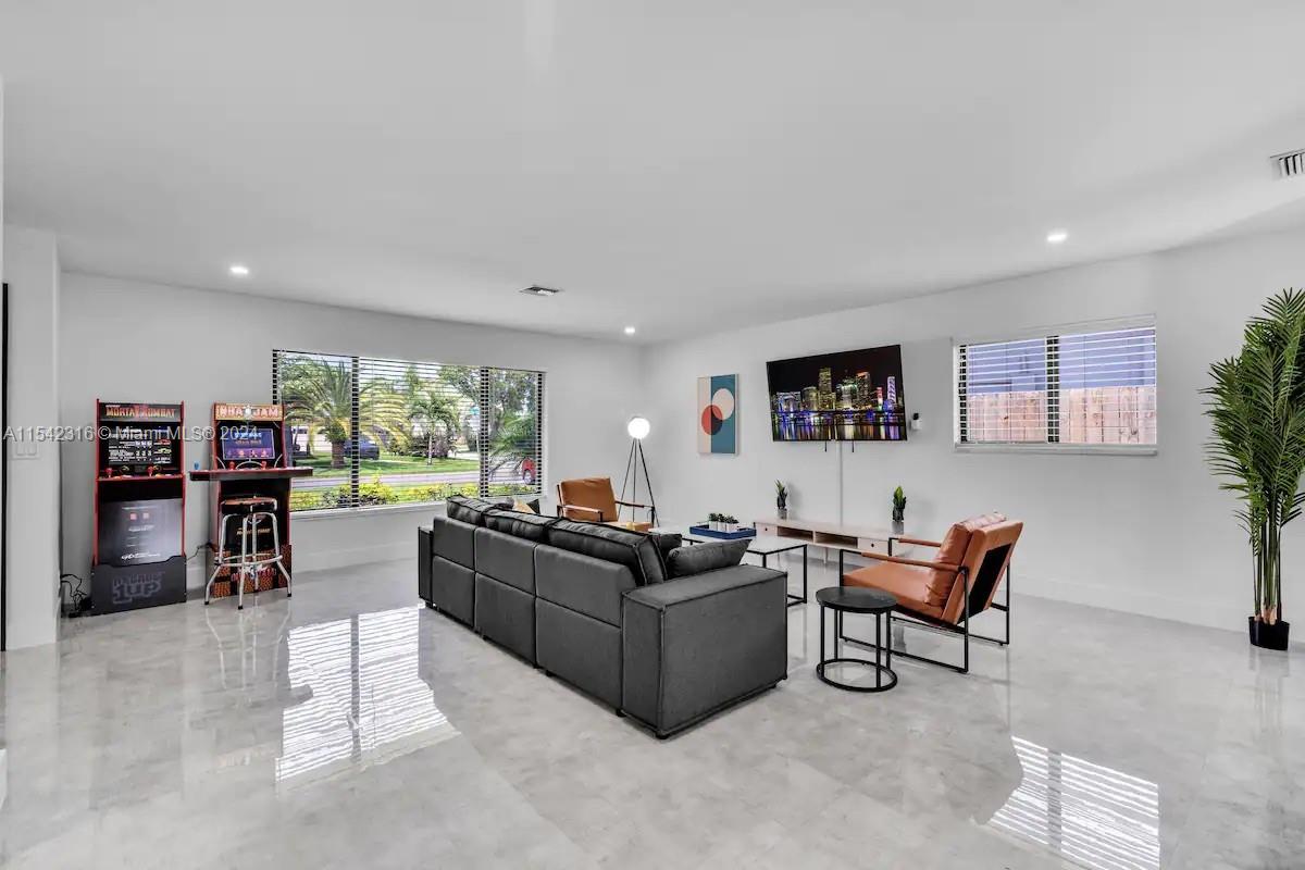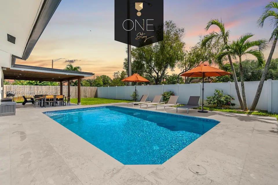 Welcome to a stylish haven with four bedrooms, each featuring plush bedding and Smart TVs. The primary bedroom has a king-sized bed, private ensuite, and an office desk, while the second bedroom offers a queen-sized bed with a Smart TV. Bedrooms three and four have two full-sized beds and a bunk bed with twin-sized beds, respectively. The two full bathrooms offer comfort with high end finishes. The well-appointed brand new kitchen has high end stainless appliances, ample counter space, and all culinary essentials. The living room, styled with a modern sofa, Smart TV with Xfinity Stream, and two arcade games, sets the scene for leisure and entertainment. Step outside into vibrant Ft. Lauderdale living with a private pool, sun-beds, and an outdoor area with a gas grill. Call Listing agent.