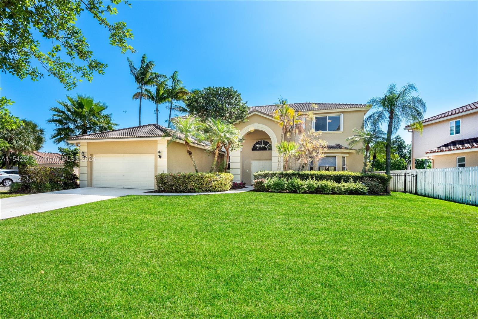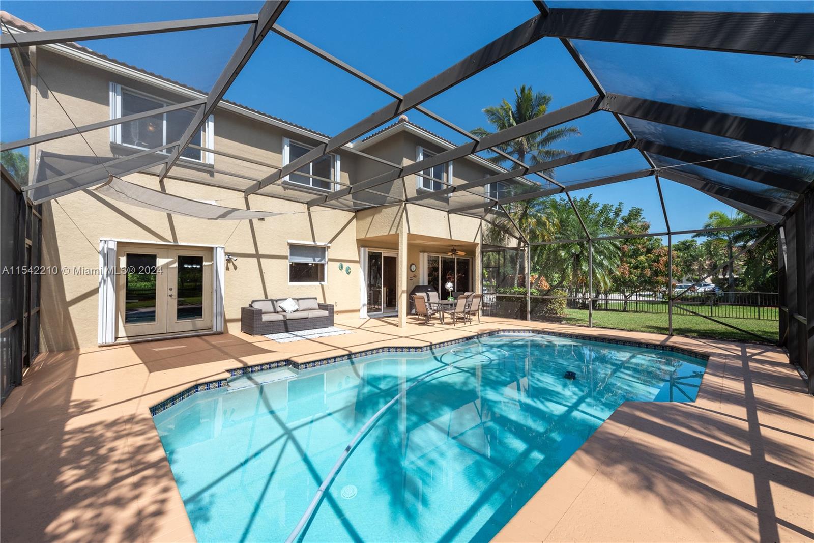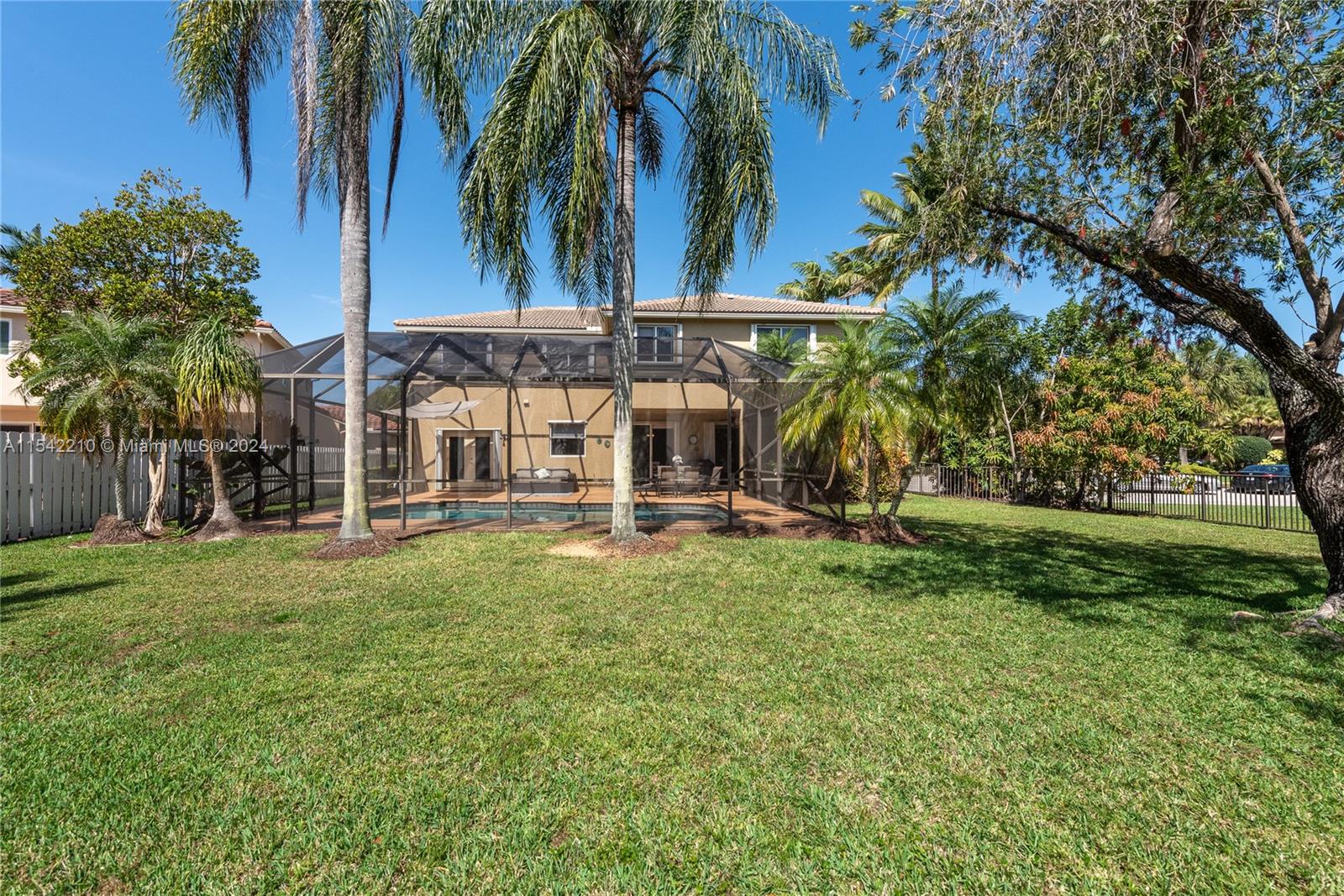 Spacious 5 bedrooms, 3 full baths, 2 story home nestled within the prestigious 24-Hour manned gated community, The Lakes, in Weston. New Roof installed in august 2013 - one new AC from 2022. Gourmet Kitchen Cherry Cabinets, Granite Countertops, Stainless Steel Appl. Oversized Master has his/her walk-in closets, an additional extended area ideal for a home office or comfy sitting room! One Bedroom downstairs, Cabana Bath, Privacy abounds with an oversized Fenced Lot plus an amazing luscious green space behind fenced yard. Screened oversize Pool & Lanai .This home is protected by accordion shutters. The Lakes community offers great amenities: Community swimming pool with cabanas, Children's sandy tot-lot, Large playing field in a tranquil setting. 24 Hour Guard Gated. TOP RATED SCHOOLS!