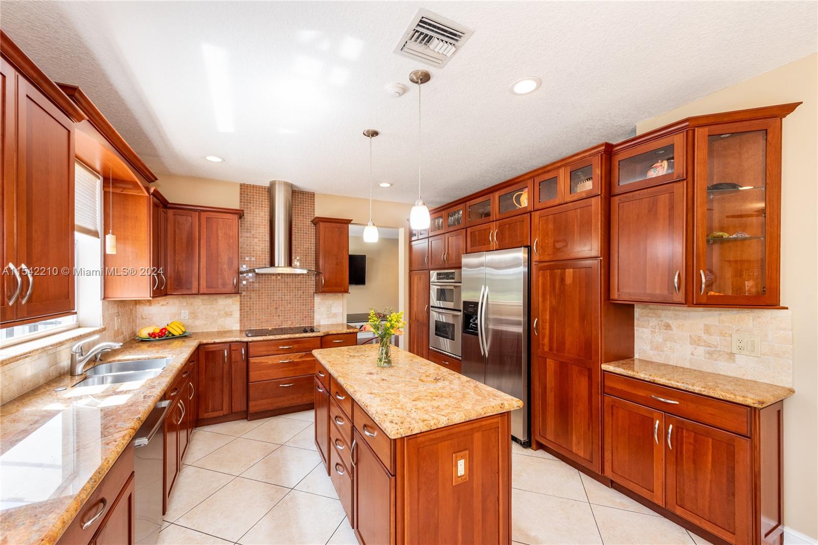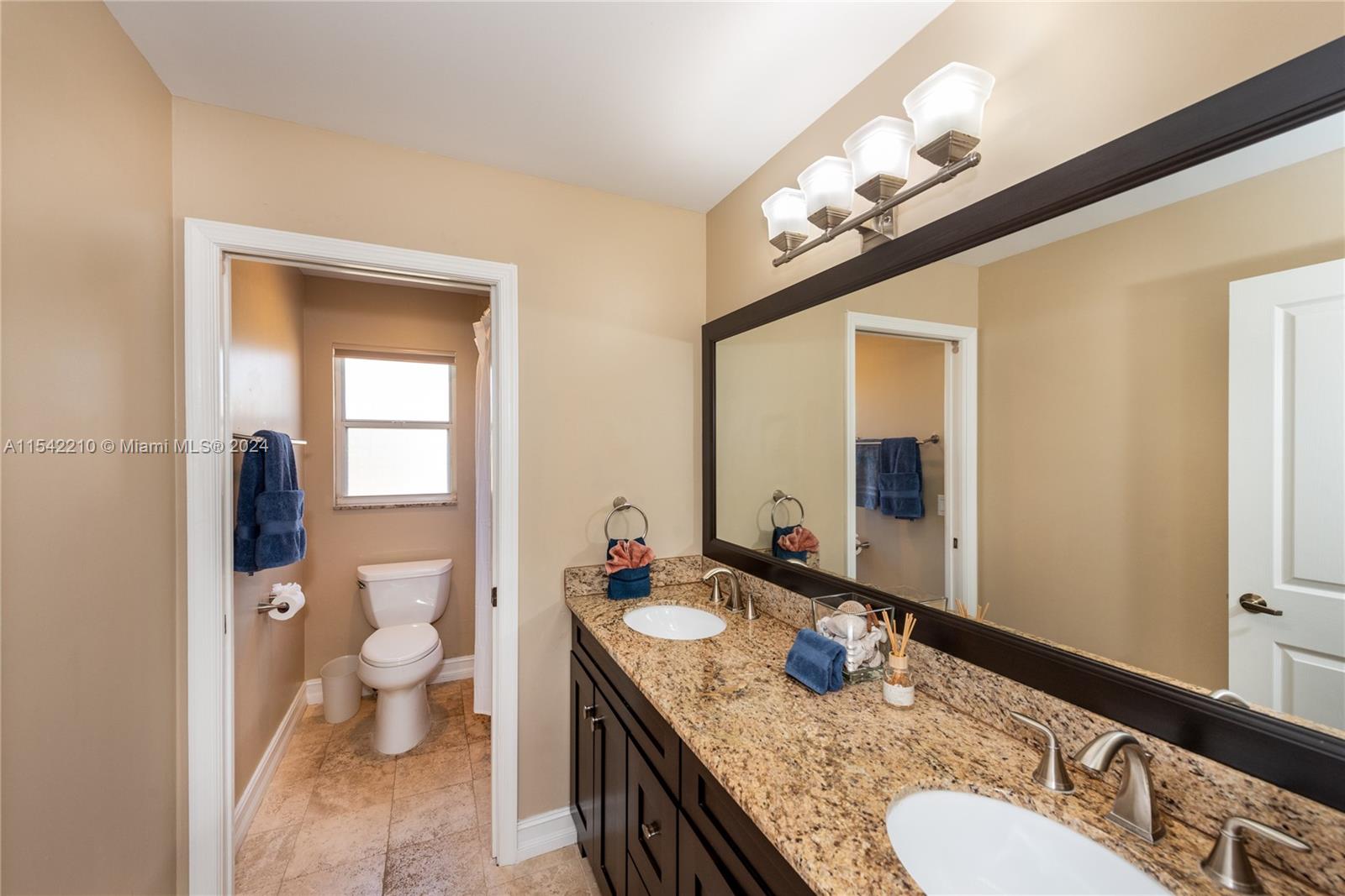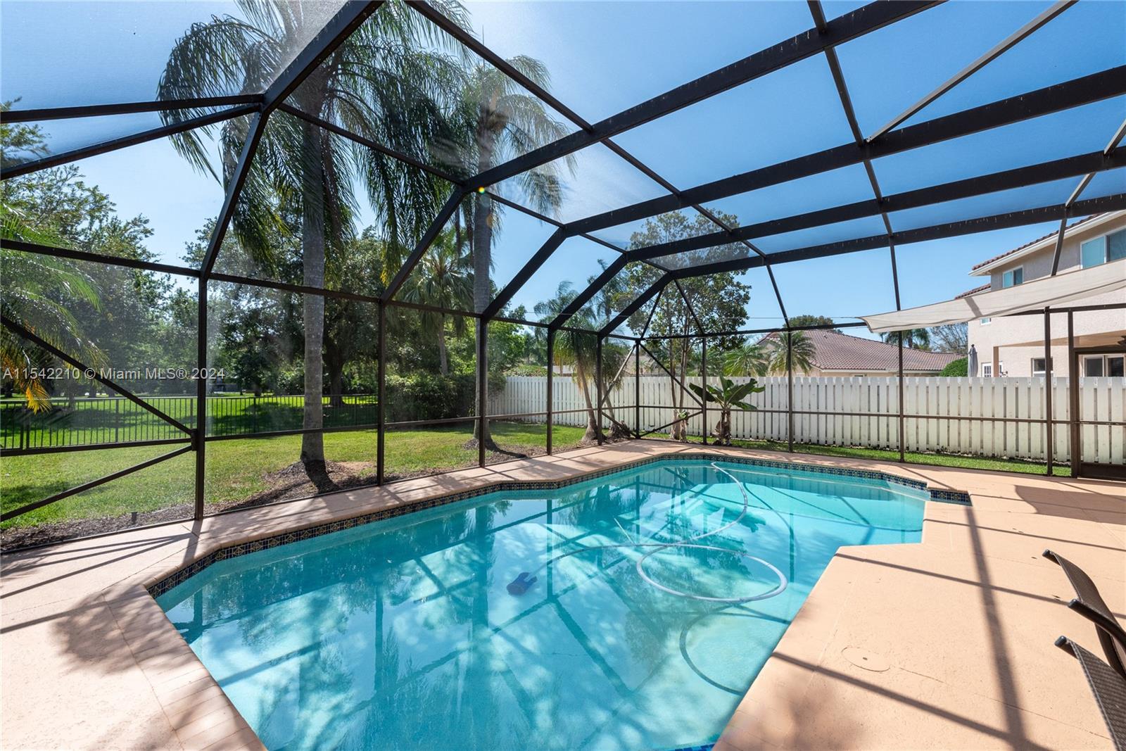 Spacious 5 bedrooms, 3 full baths, 2 story home nestled within the prestigious 24-Hour manned gated community, The Lakes, in Weston. New Roof installed in august 2013 - one new AC from 2022. Gourmet Kitchen Cherry Cabinets, Granite Countertops, Stainless Steel Appl. Oversized Master has his/her walk-in closets, an additional extended area ideal for a home office or comfy sitting room! One Bedroom downstairs, Cabana Bath, Privacy abounds with an oversized Fenced Lot plus an amazing luscious green space behind fenced yard. Screened oversize Pool & Lanai .This home is protected by accordion shutters. The Lakes community offers great amenities: Community swimming pool with cabanas, Children's sandy tot-lot, Large playing field in a tranquil setting. 24 Hour Guard Gated. TOP RATED SCHOOLS!