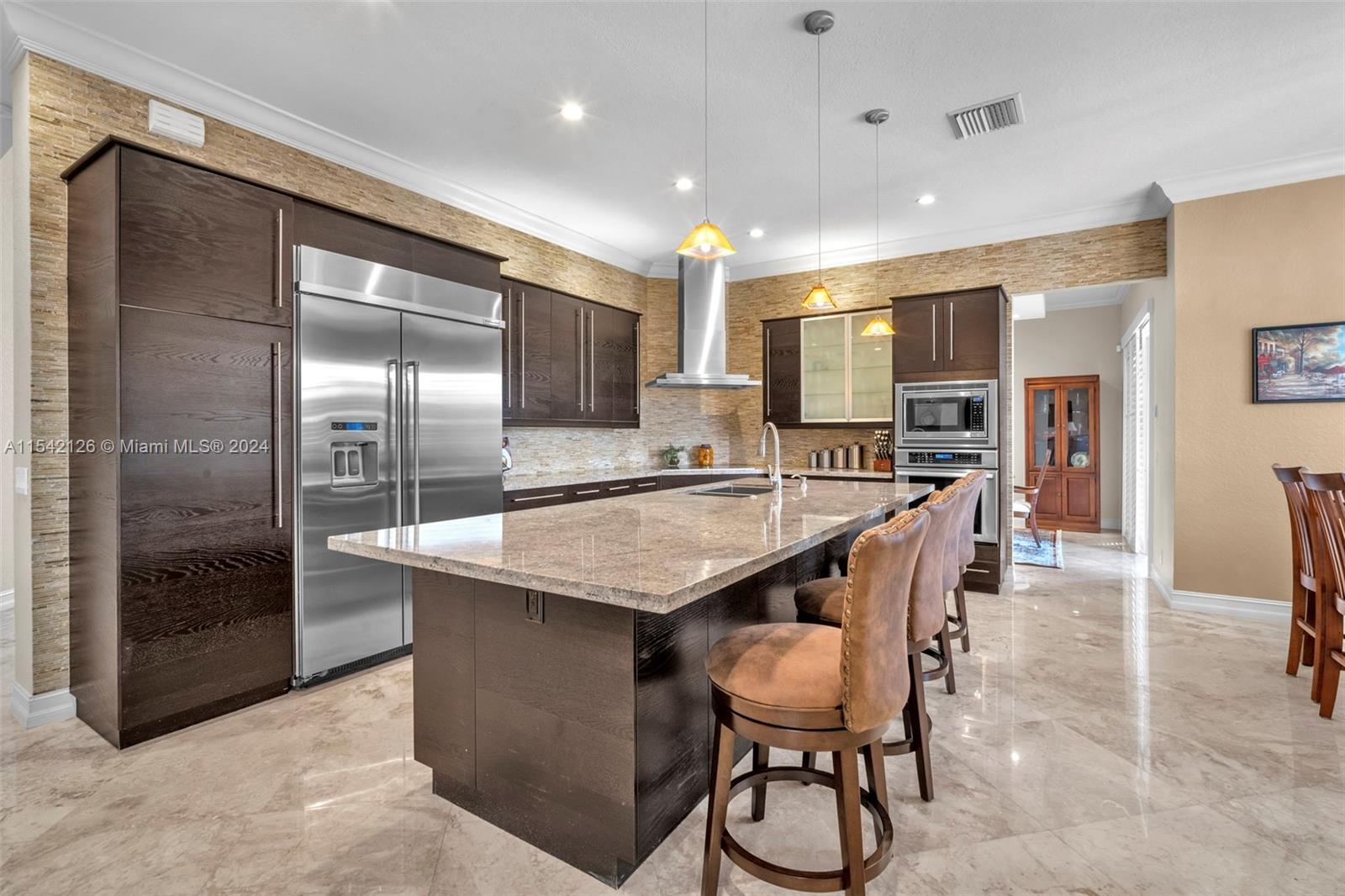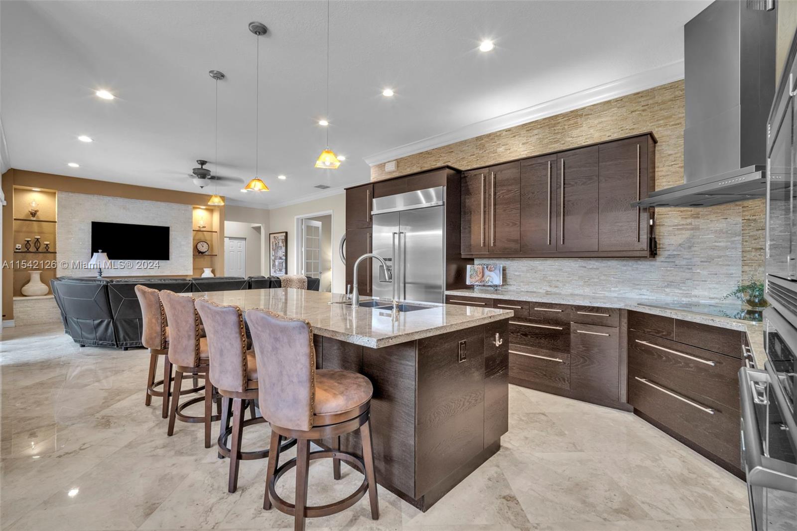 Finally in Weston Hills, be greeted by a grand entrance that sets the tone for sophistication and indoor/outdoor living. Notice the glistening marble floors & bright windows that sparkle all throughout the main level. The family rooms, cabana bath, & generous 5th bedroom create a functioning space. Enjoy an open-concept elegant kitchen ideal for cooking together & hosting. The perfect layout continues upstairs w/ a loft, Jack/Jill bedroom & bath, a 3rd ensuite bedroom & an oversized owner's suite. Step outside into a backyard oasis, enjoy lake views of privacy & serenity. Extra peace of mind w/ a Newer Roof & ACs & countless features throughout. All set in an upscale safe gated community w/ A+ schools, this home has it all. The chance is here to call this Home, where elegance meets quality