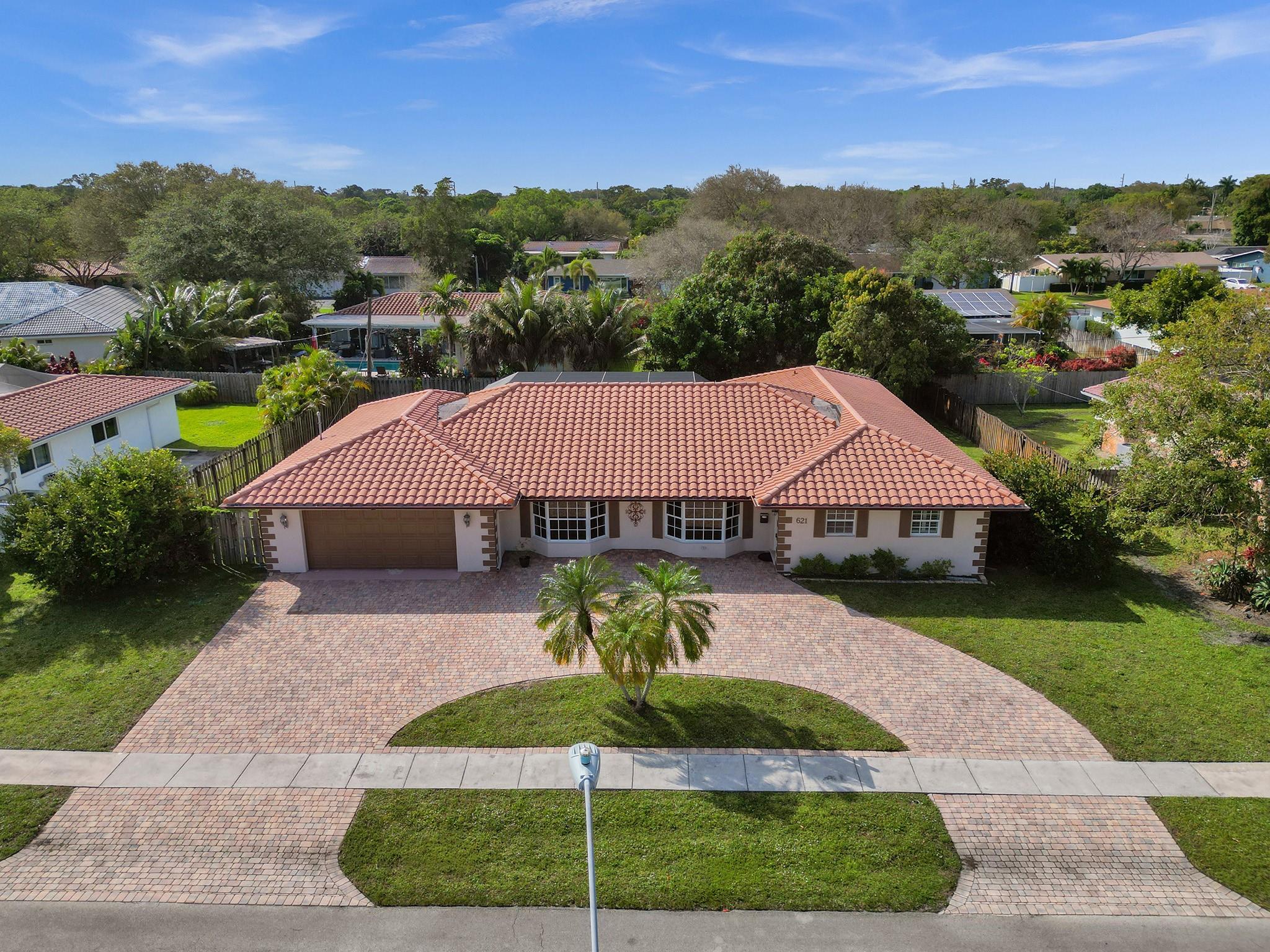 Welcome to this well-kept Plantation Secluded Gardens home nestled in the heart of Plantation and just steps from Liberty Tree Park. This spacious three-bedroom, two cabana bath home also includes a bonus room which is currently set up as an office. The interior offers a stacked bedroom layout, tile floors throughout, crown molding, ss appliances & plantation shutters. The common living areas overlook the expansive, covered patio and screen enclosed pool providing ample space to entertain family and friends. The fenced yard ensures privacy, and the solar heated pool allows for year-round enjoyment. The home has partial impact windows along with panels offering full hurricane protection. Conveniently close to shopping, restaurants, downtown and all major highways. No HOA!