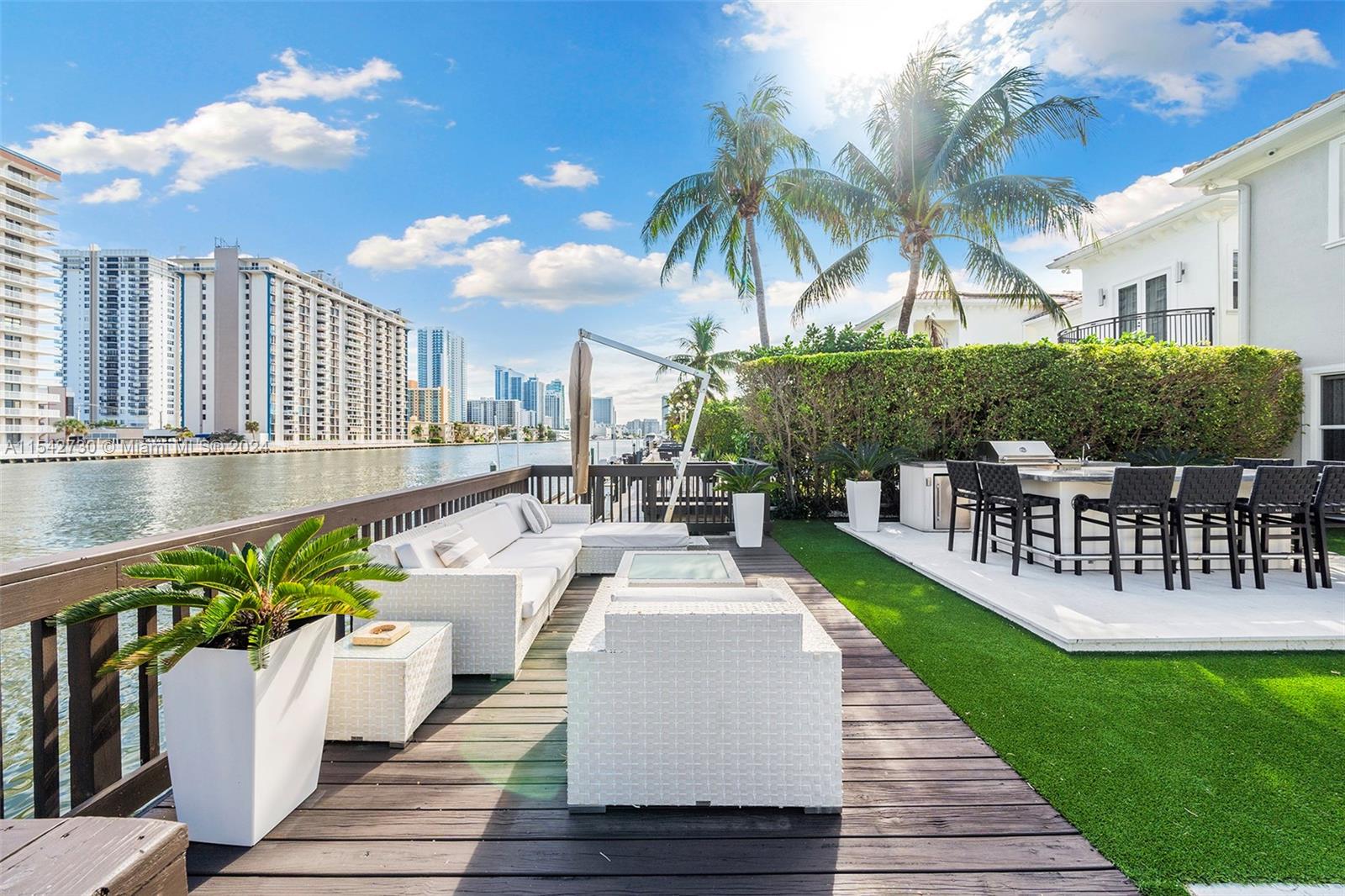 Experience waterfront luxury living in the private gated community of Harbor Islands. Boasting numerous luxury upgrades / finishes along the Intracoastal in this 6BR/5.5BA + office/den residence. This large family estate has a large kitchen, with new modern flooring throughout, impact windows and doors, motorized blinds, home automation, 162+ bottle wine cellar, volume ceilings, 3 car garage and more. Outdoors, the essence of entertainment with a heated pool, summer kitchen, synthetic grass, private dock with a 20,000 lbs. boat lift ensures effortless access to the water, all while enjoying panoramic views of passing yachts along the Intracoastal. Great opportunity to live in unparalleled luxury in Harbor Islands.