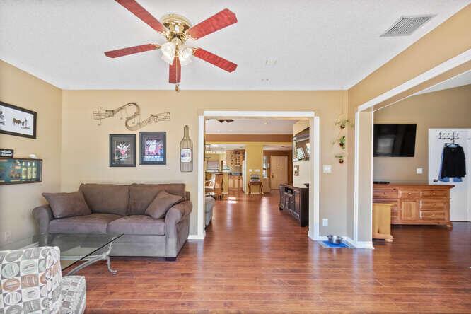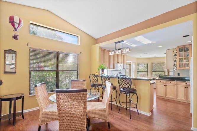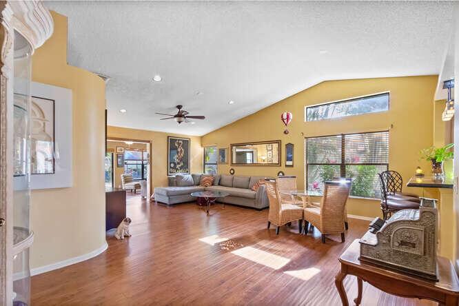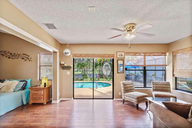 Location, location, location. Culdesac corner large lot backing to the lake with a private pool. Paddle board from your fenced yard. So much opportunity. Large foyer, separate laundry room. Dry bar off dining room/family room. Vaulted den or potential 3rd bedroom.Large eat in kitchen, granite counter, 2 tiered counter bar space. Bayed eat in kitchen area with a side door grilling. Dining room combination with the family room. Vaulted family room with CF and recess lighting. Primary bedroom is open to Florida Room. Huge fenced lot with room for playset and garden. Wonderful private pool with full enclosed gate.Roof is 17 years new,Ac is2021. Home is priced to sell ''AS IS. mission-bay site