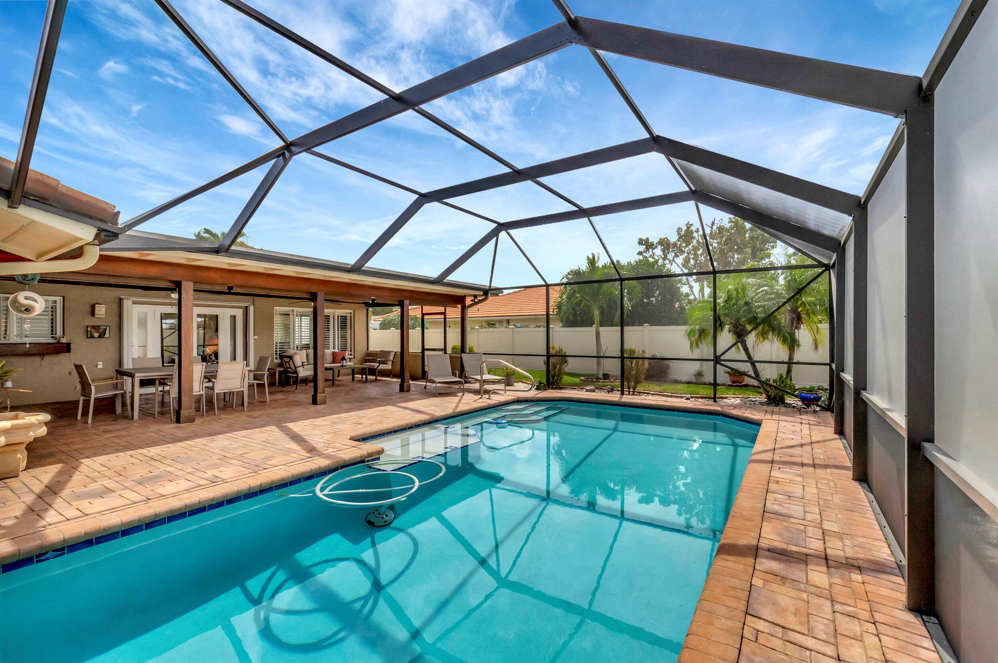 STUNNING 3 BEDROOM, 3 BATH POOL HOME IN DESIRABLE PHEASANT WALK...INTERIOR FEATURES INCLUDE RECTIFIED PORCELAIN TILE FLOORING THROUGHOUT, LOVELY KITCHEN W/GRANITE COUNTERS & STAINLESS APPLIANCES, SPLIT BEDROOMS W/ CUSTOM CLOSETS & RENOVATED BATHS...BACKYARD IS SUPREME, W/ 440 SF COVERED LANAI W/ PECKY CYPRESS CEILING & CUSTOM LIGHTING, GORGEOUS 16 X 32 POOL W/SUNSHELF & BENCHES, ALL SURROUNDED W/ NO-SEE-UM SCREEN ENCLOSURE W/PRIVACY PANELS...EXTERIOR FEATURES INCLUDE ALL IMPACT GLASS, PAVERED DRIVEWAY, WALKWAYS, & PATIO, CUSTOM VINYL FENCING W/ DECORATIVE CAPS, NEW ELECTRICAL BOX, & GATED WALKWAY W/SCREENED FRONT ENTRY...RESIDENTS ENJOY LOW HOA, NEIGHBORHOOD LAKE, PARK, PLAYGROUND, & PICNIC AREA...MINUTES TO SHOPPING, DINING, ''A'' RATED SCHOOLS, HOUSES OF WORSHIP, & ALL MAJOR HIGHWAYS...