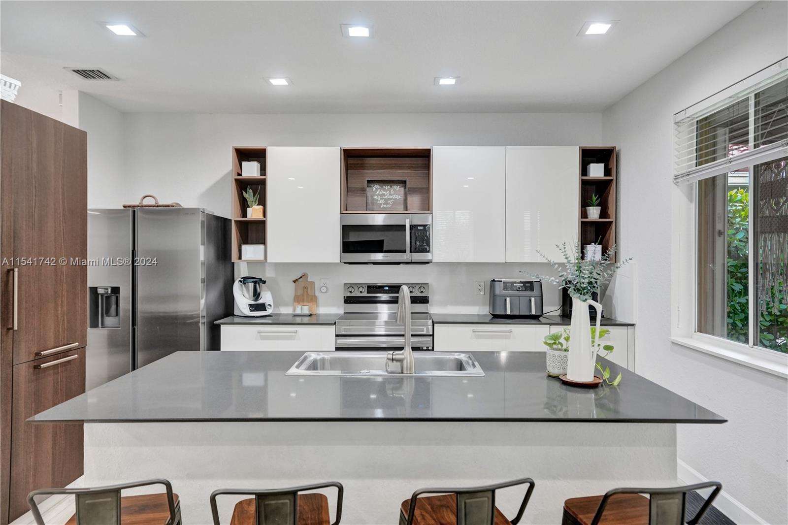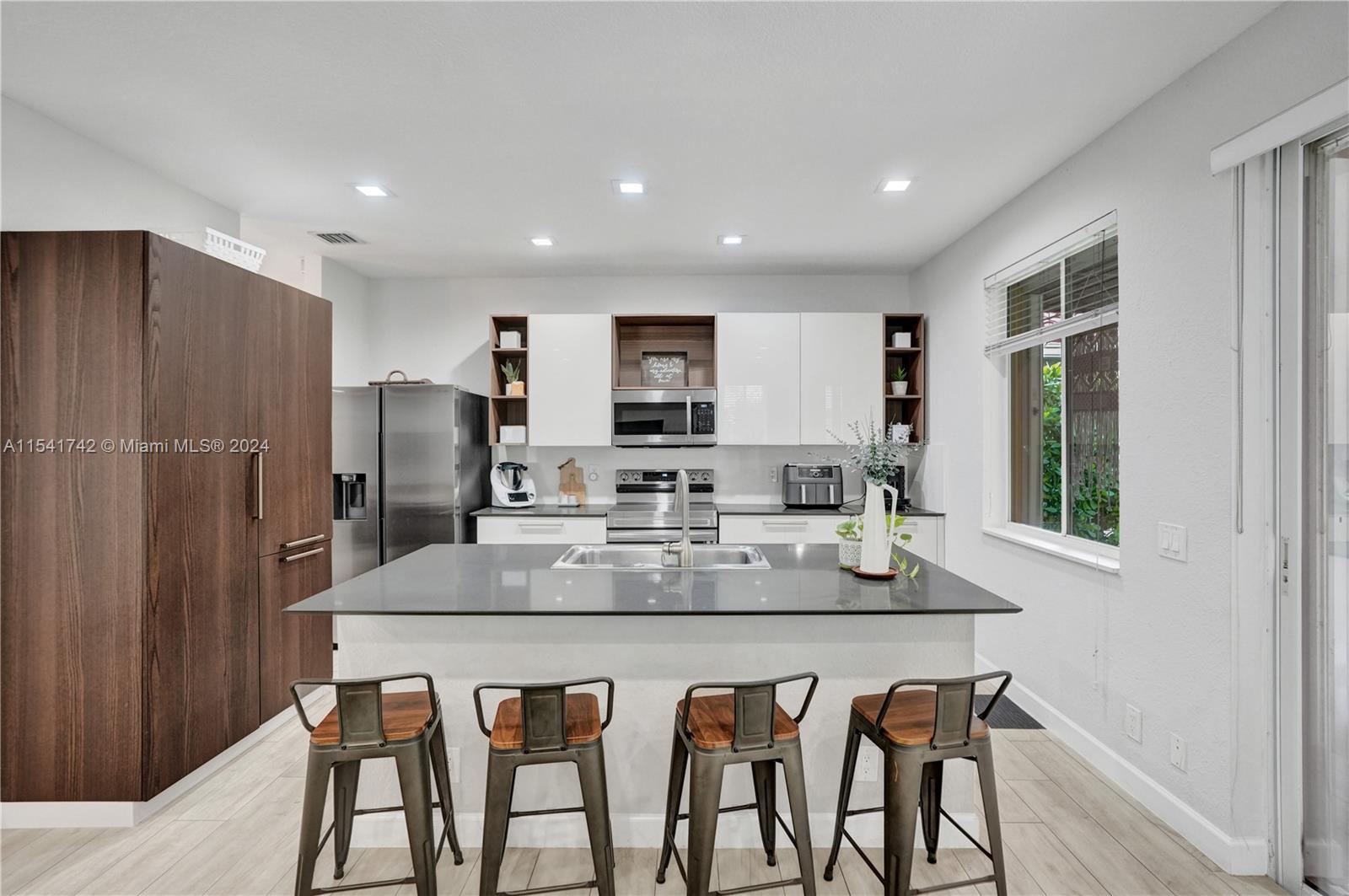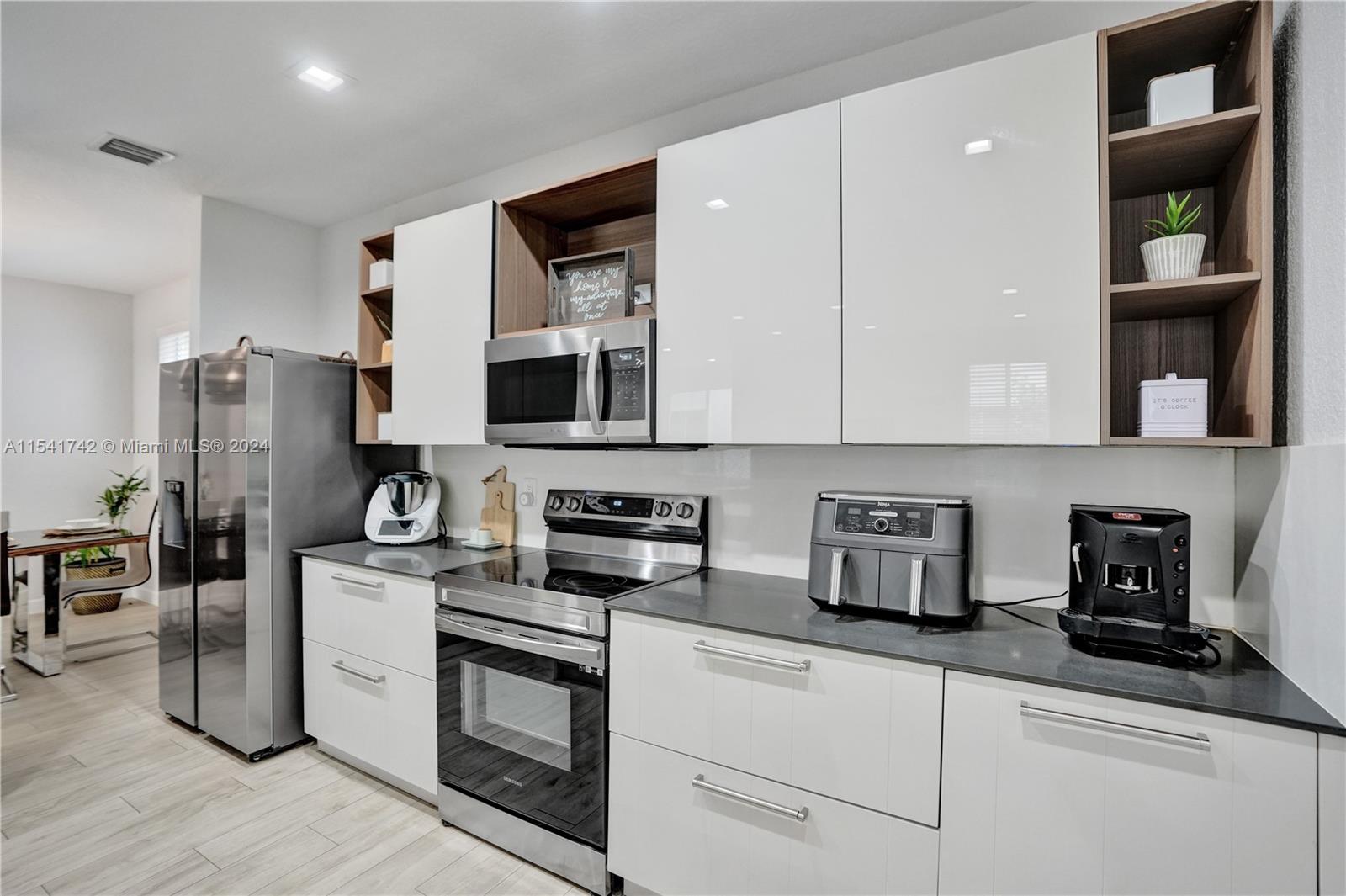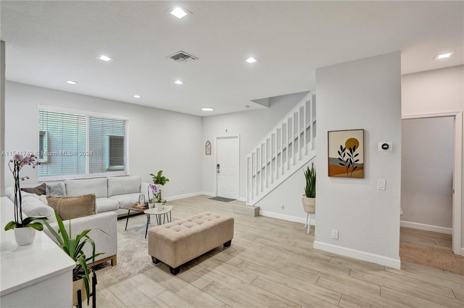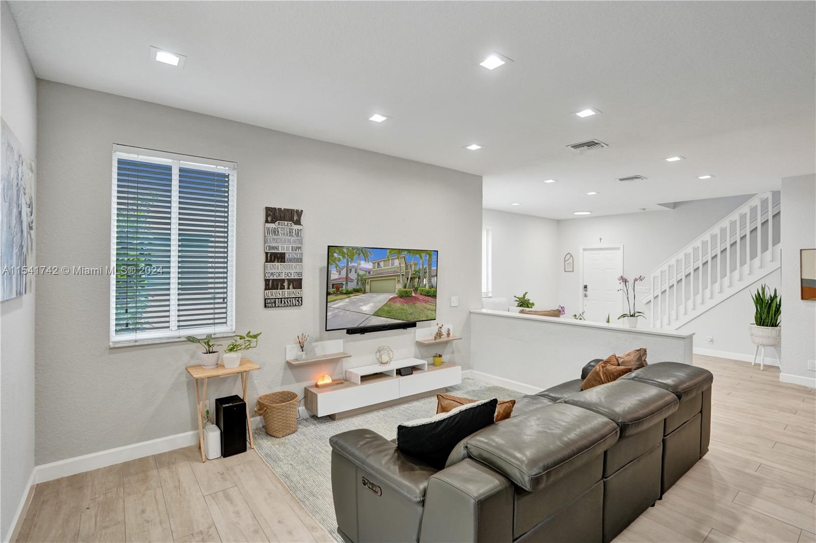 Nestled within a prestigious family-oriented neighborhood, this lovely two story home totally remodeled features 4 bedrooms and 2.5 bathrooms in an open floor plan that invites you into a bright living area, adorned with chic finishes. The modern kitchen showcases newer stainless steel appliances and custom cabinetry. Neutral Tile floor on 1st and 2nd floor. Luxury wood look laminate flooring on bedrooms. A High Efficiency AC was installed in 2023. The resort-style living offers 5 star amenities, with clubhouse, 3 swimming pools, sports courts, surrounded by lush landscaping and walkable paths within tranquil lakes. Savanna offers serenity and comfort in a prime location with an excellent school district, and surrounded by shoppes, restaurants and un paralleled lifestyle.