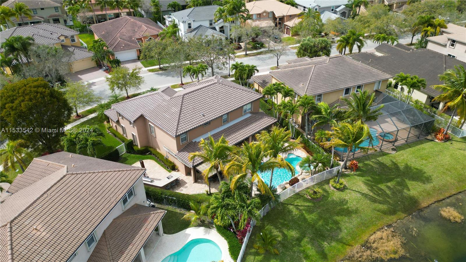Beautiful water front two story 5 bedrooms and 3 bathrooms house, inmaculate condition it feels like a model home, one full bedroom and bath on first floor, granite counter tops and double oven wall in kitchen, big island. Induction stove. Porcelain on first floor living areas and carpet on second floor (2023). Roof replaced in 2023, the A/C is 2018, washer and dryer 2022. Gorgeous backyard, perfect for entertainment free form pool, lake, and summer kitchen. Accordion schutters, all upper windows in living area will be high impact windows. Located in the prestigious guard gated community of Isles at Weston, You can enjoy the recently remodel gym, 2 pools, basket and more at the club house. Walking distance to Manatee Bay Elementary, Falcon Cove Middle, and Cypress Bay high schools.AS-IS