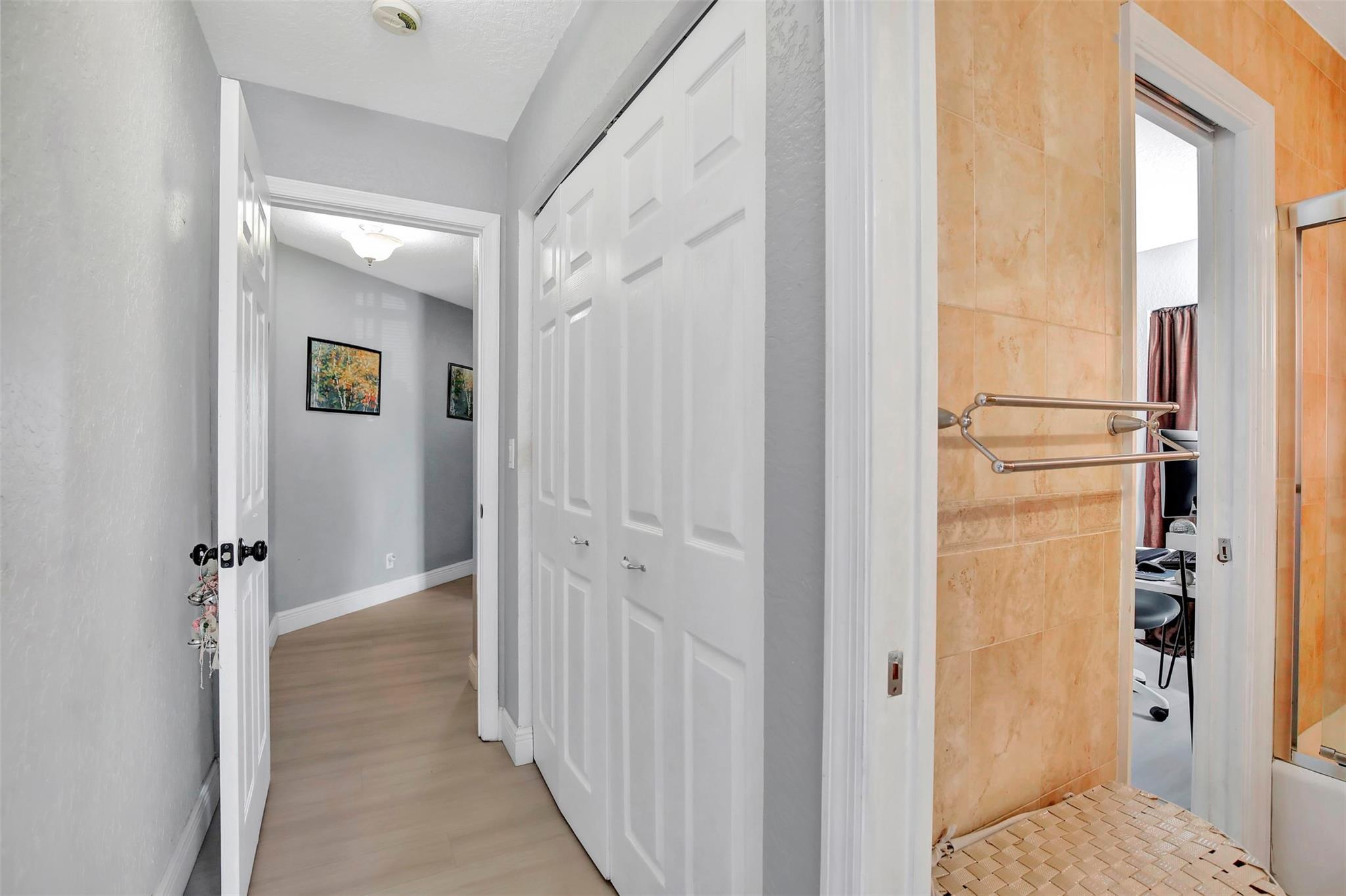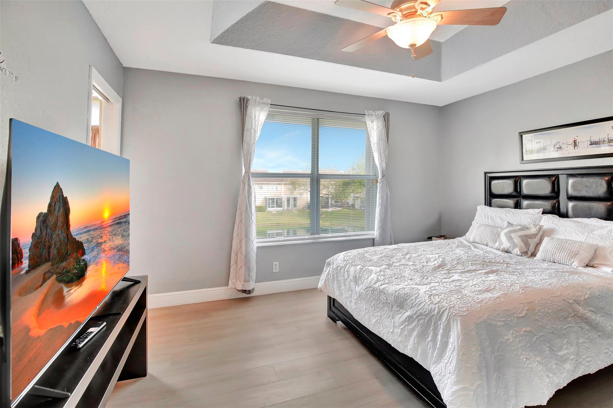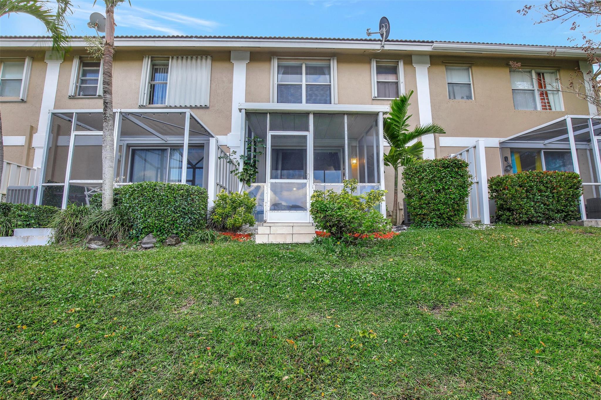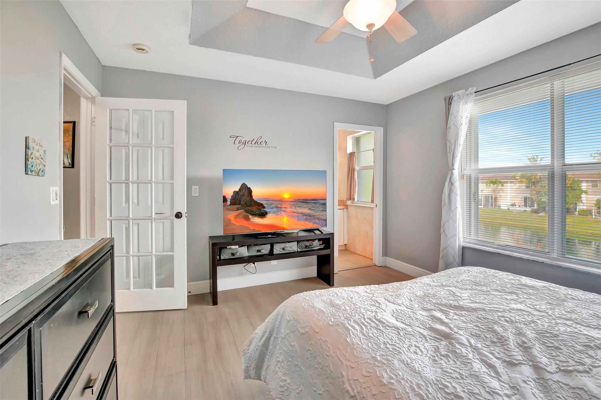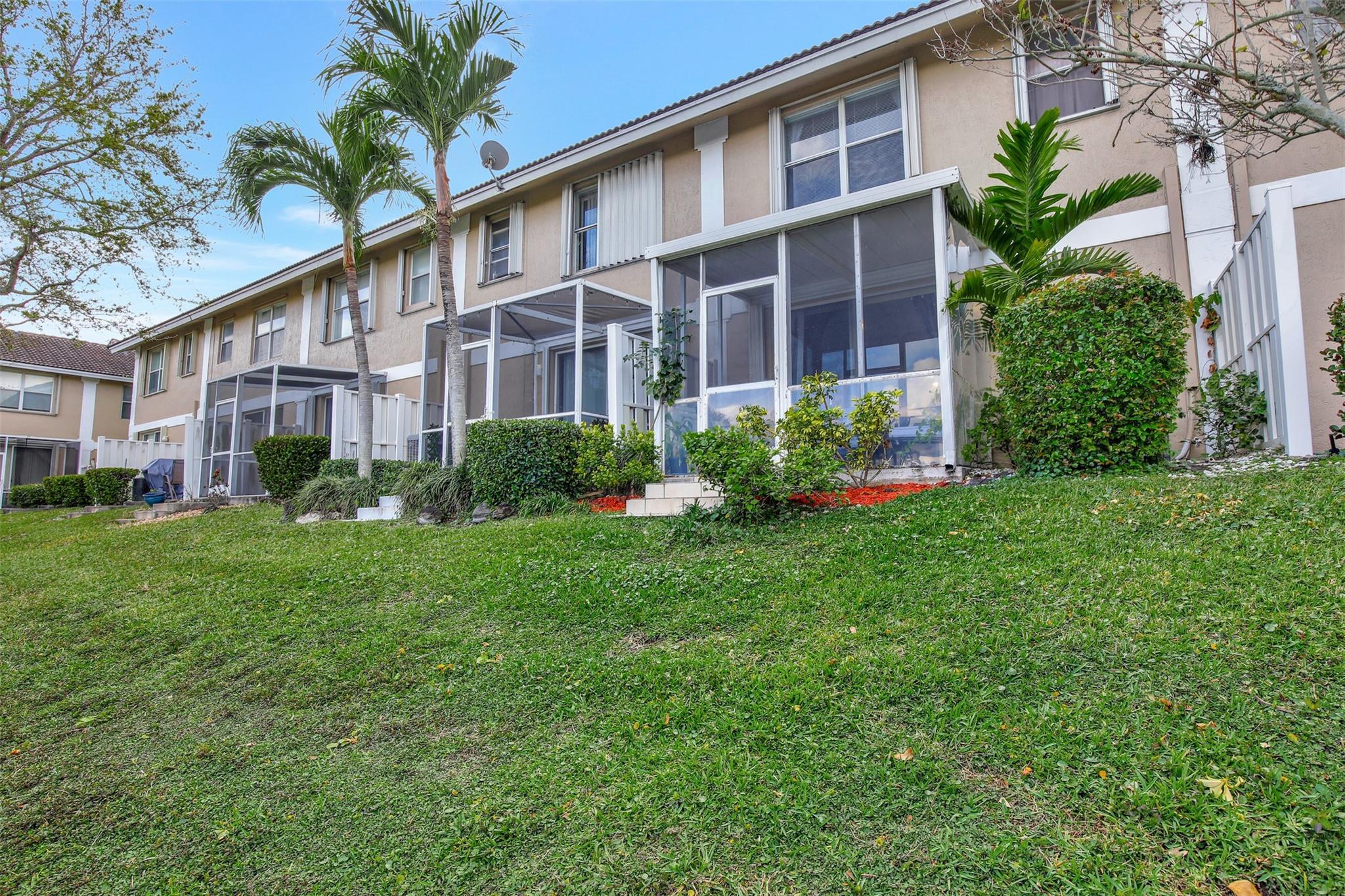Welcome to this beautifully updated townhome nestled within Sunrise's Palm Bay, a gated community. This inviting unit showcases vaulted ceilings and luxurious vinyl floors, creating an ambiance of modern elegance. The modern kitchen features newer stainless steel appliances, perfect for culinary enthusiasts and entertaining guests. A master suite featuring a coffered ceiling and a convenient walk-in closet offers a comfortable retreat for homeowners. A Jack and Jill bathroom connects the guest bedrooms, providing added convenience and privacy. Take in serene lake views from the enclosed porch, ideal for relaxation and outdoor gatherings. Safety is prioritized with accordion shutters and a hurricane-proof garage door, an AC unit in 2019 & 2021 WH. One-car garage and a two-car driveway