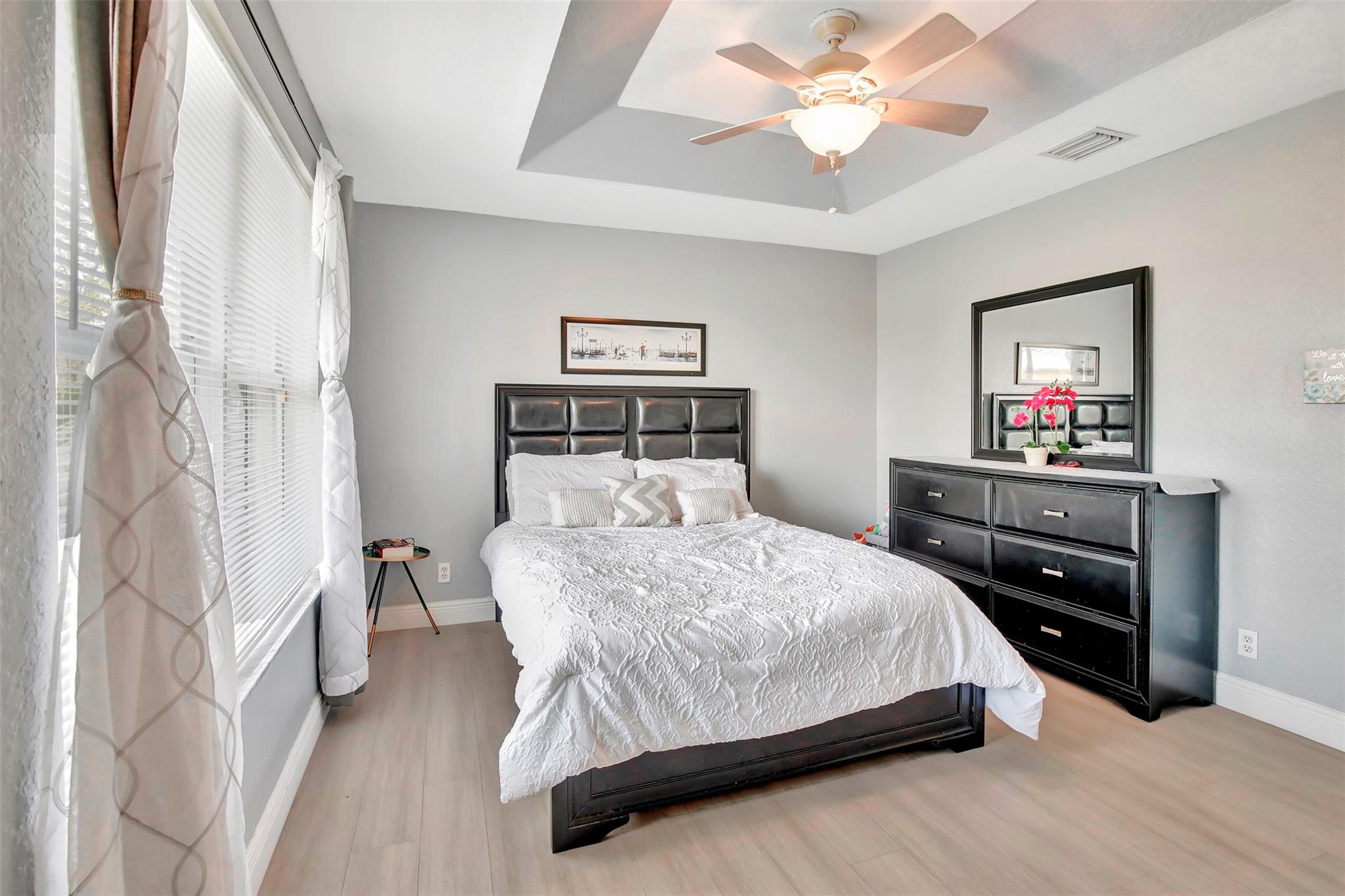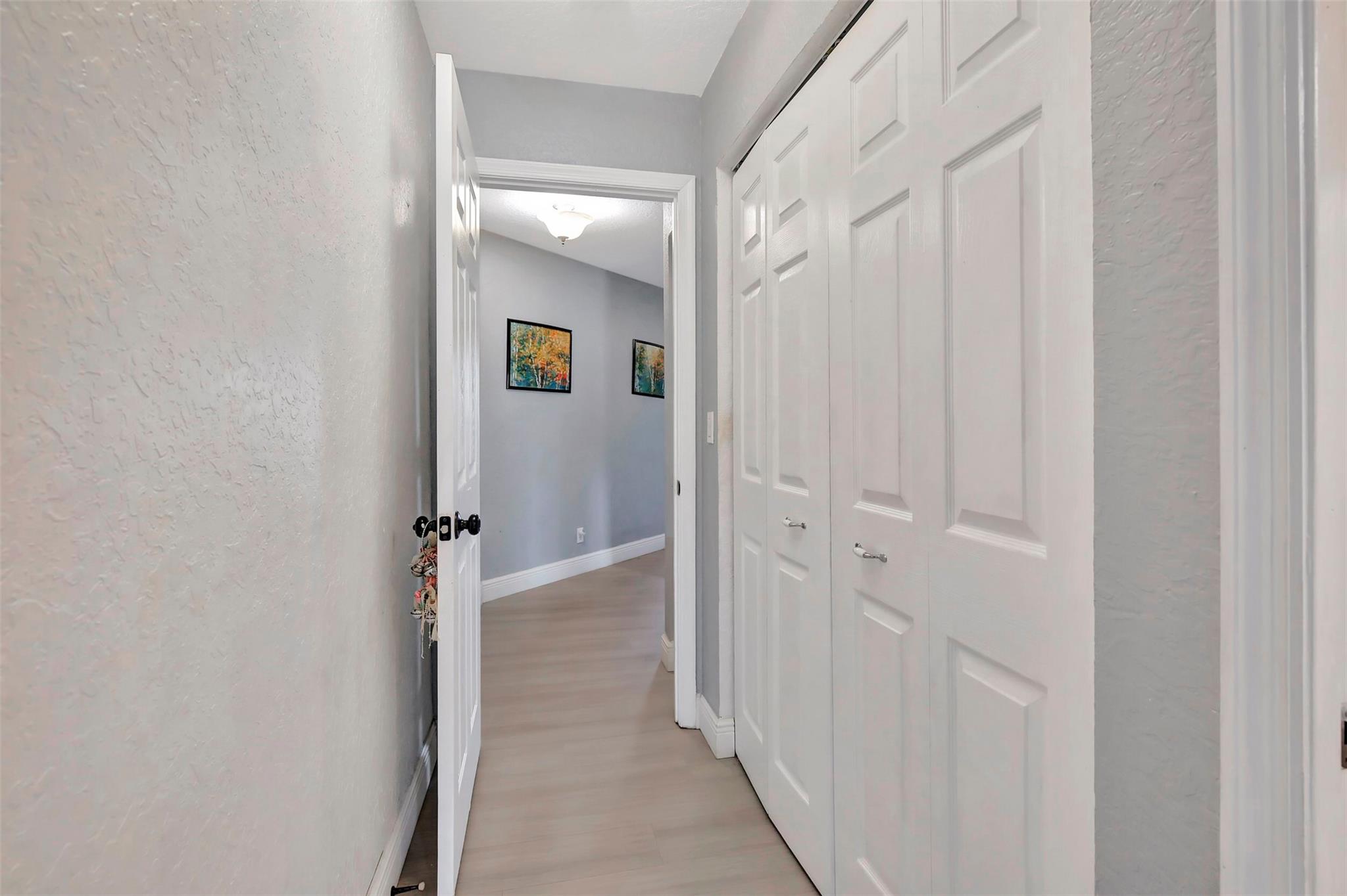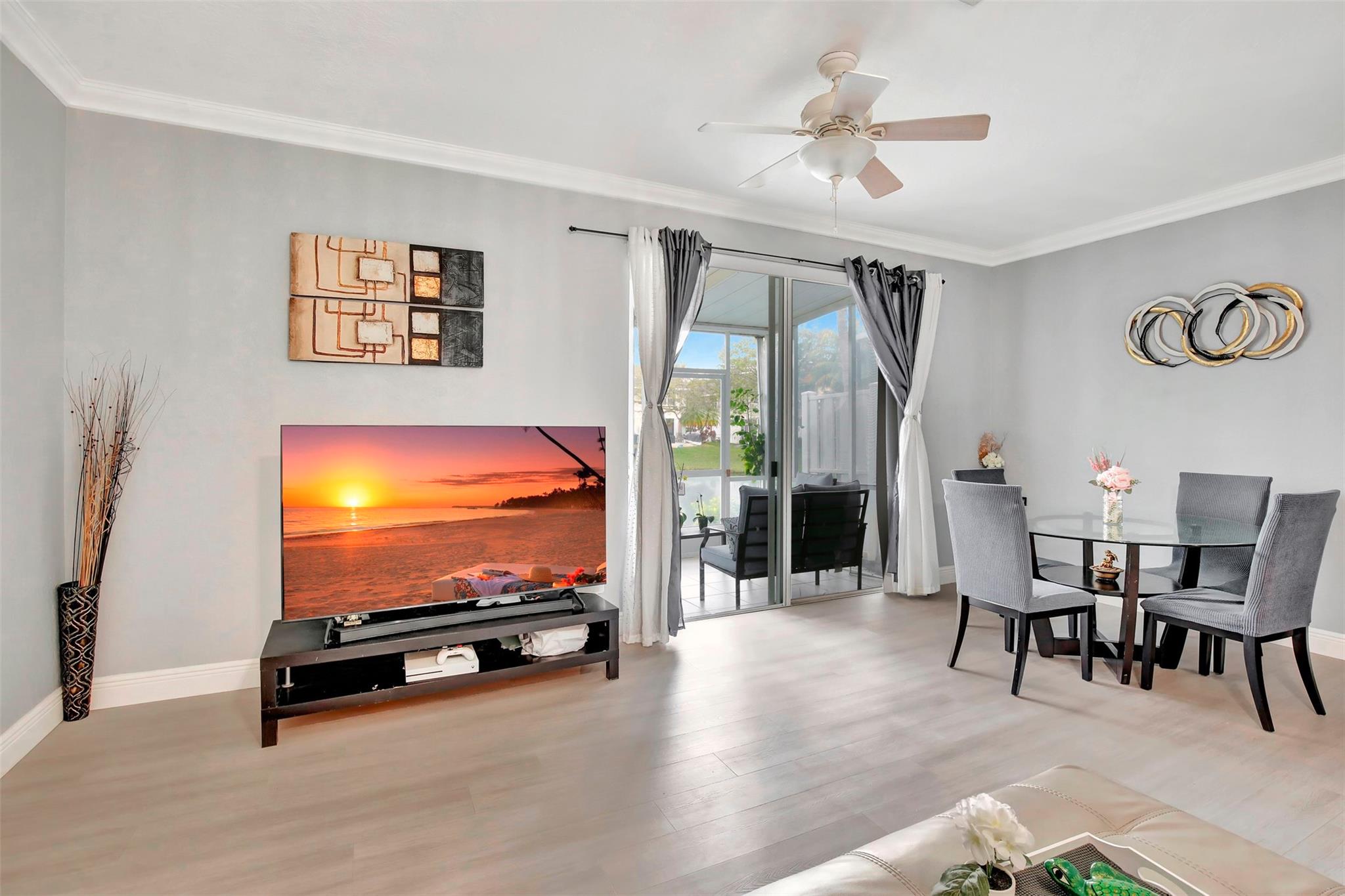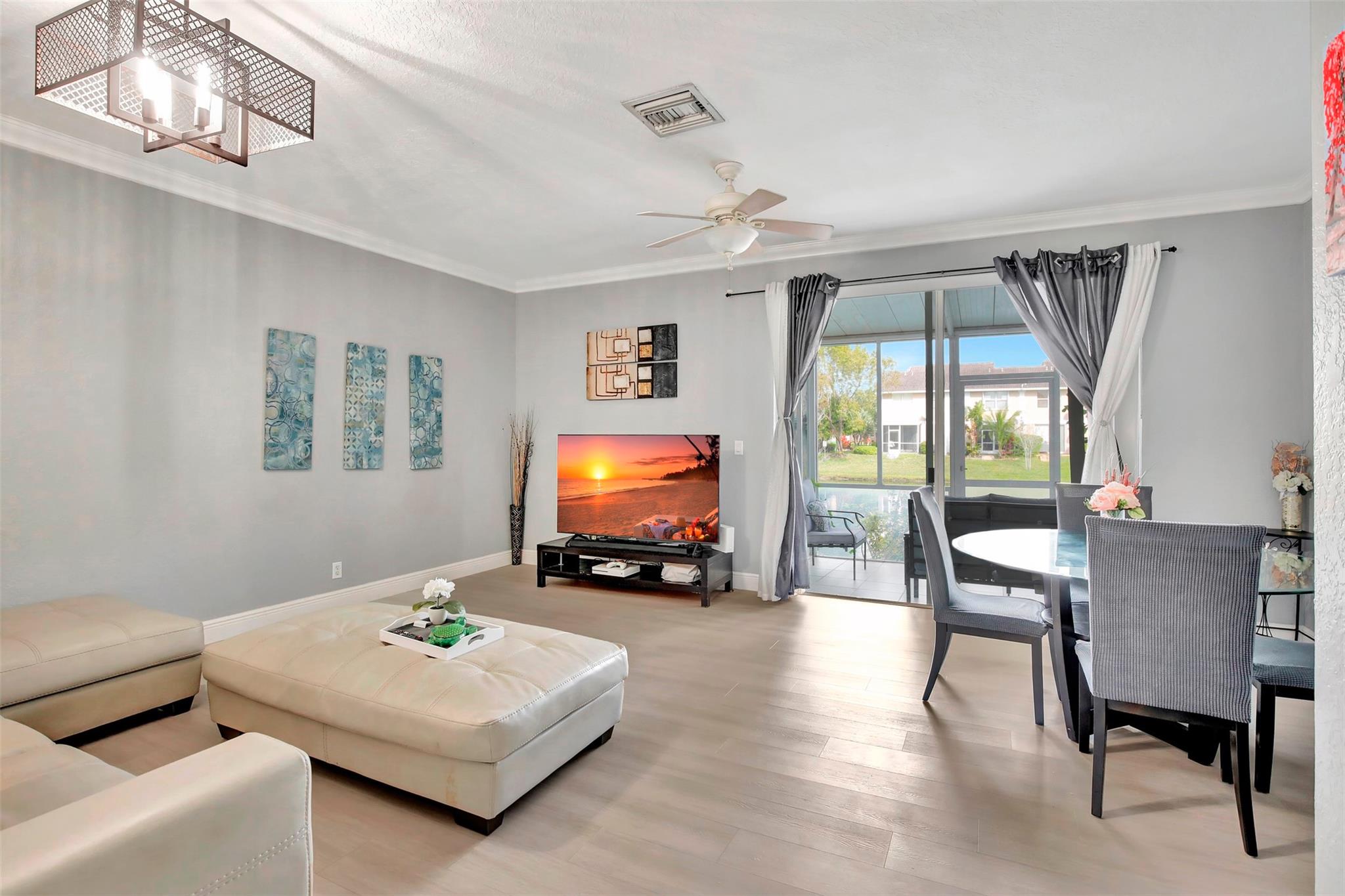 Welcome to this beautifully updated townhome nestled within Sunrise's Palm Bay, a gated community. This inviting unit showcases vaulted ceilings and luxurious vinyl floors, creating an ambiance of modern elegance. The modern kitchen features newer stainless steel appliances, perfect for culinary enthusiasts and entertaining guests. A master suite featuring a coffered ceiling and a convenient walk-in closet offers a comfortable retreat for homeowners. A Jack and Jill bathroom connects the guest bedrooms, providing added convenience and privacy. Take in serene lake views from the enclosed porch, ideal for relaxation and outdoor gatherings. Safety is prioritized with accordion shutters and a hurricane-proof garage door, an AC unit in 2019 & 2021 WH. One-car garage and a two-car driveway
