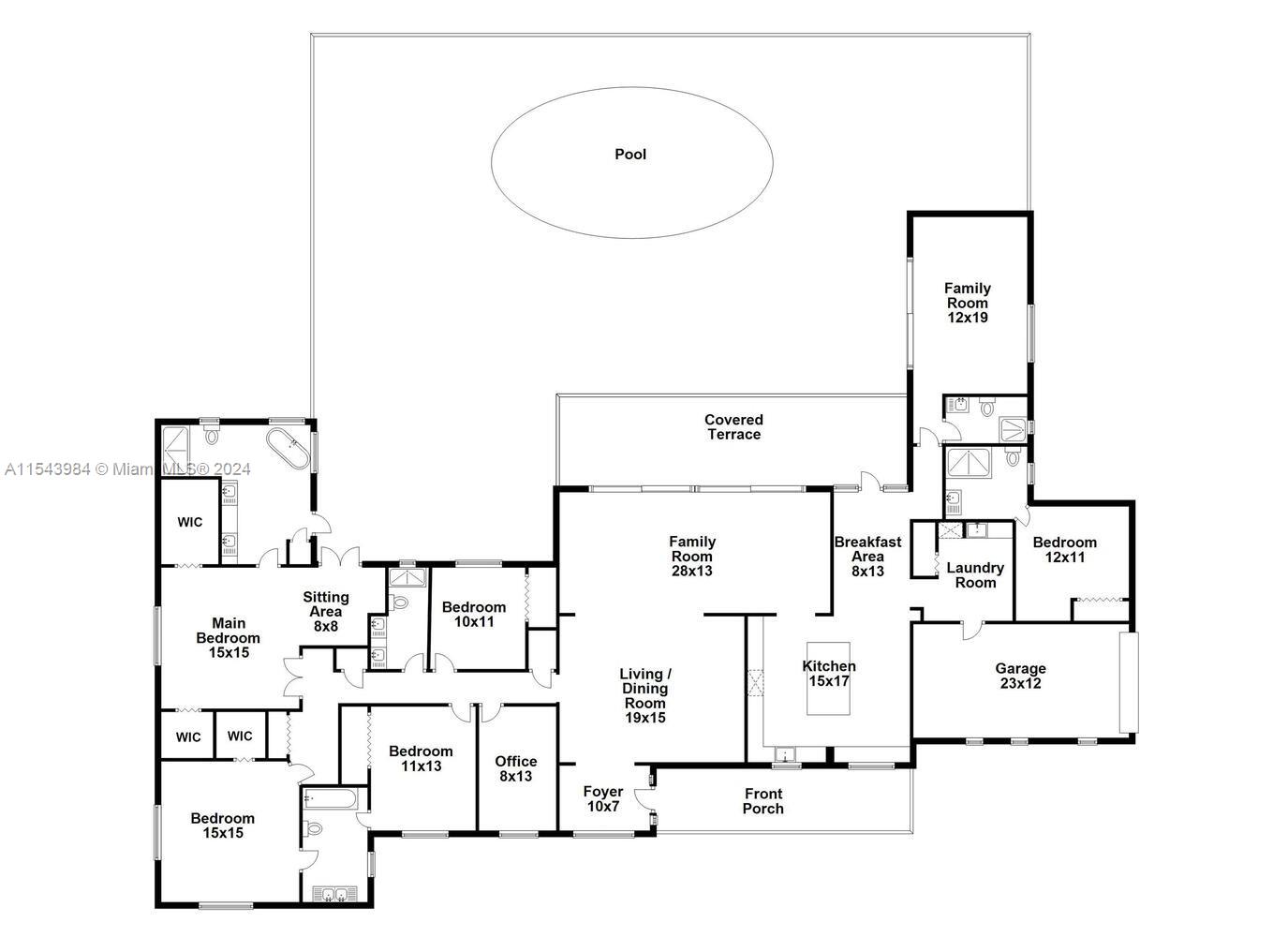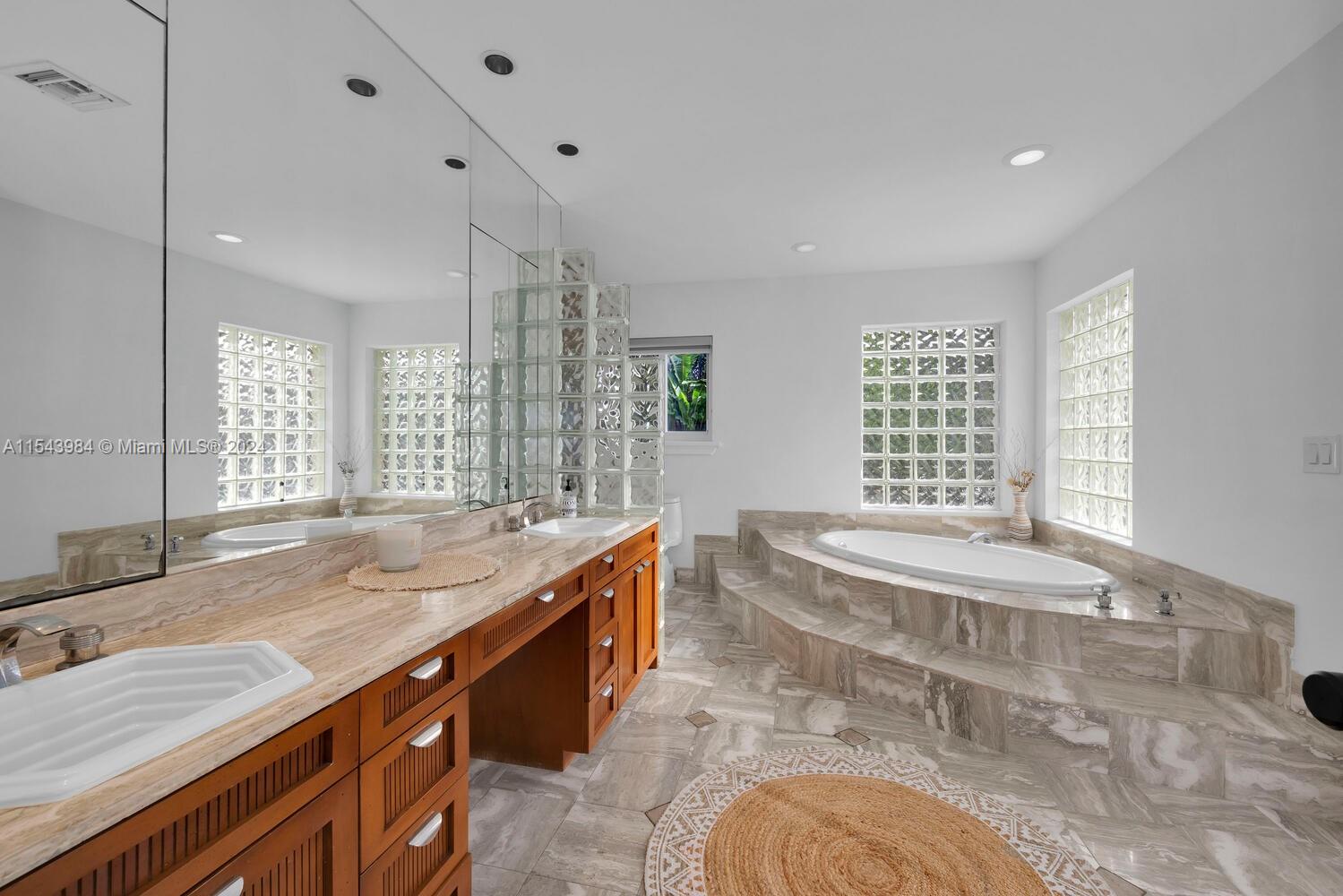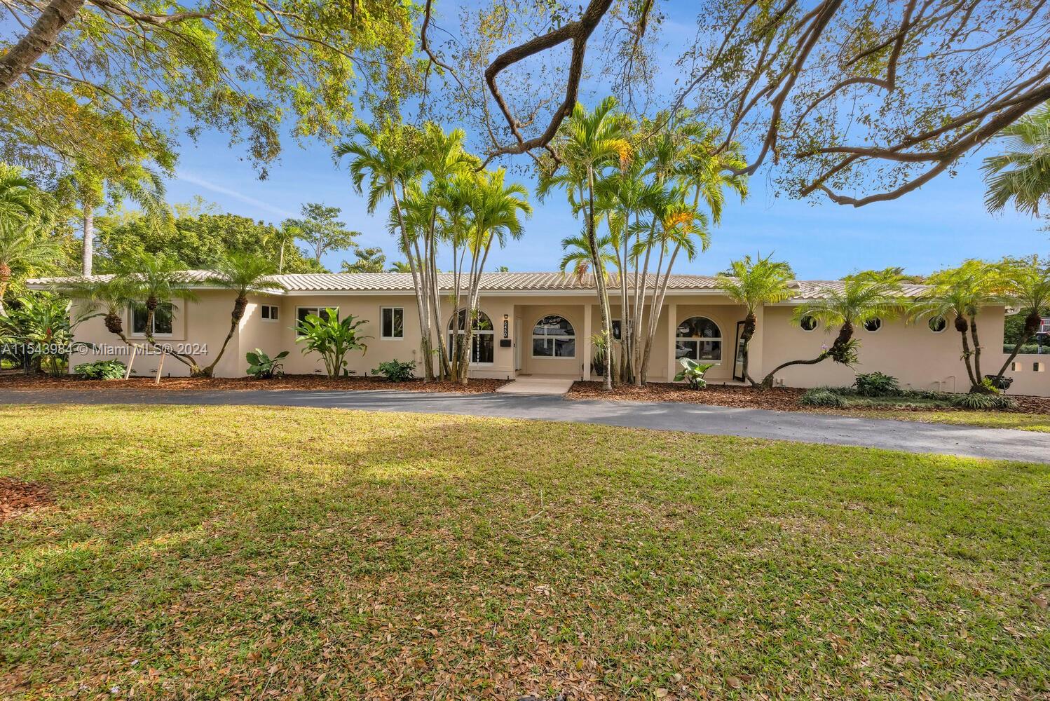 Welcome to paradise! This 1-story 5 BR/5BA + office home provides wonderful privacy ideally situated in the Pinecrest Elem School district on a no-thru street, yet close to it all. We aren't sure what you'll like better-the builder's acre lot w/ enough room for a soccer game or house expansion, or the house itself which is not your typical Pinecrest ranch! High ceilings thruout the living spaces are an unexpected surprise, and the list of updates is impressive. All impact windows & doors, luxury vinyl flooring, gorgeous kitchen w/ cooking island & new appliances, newer a/c & ducts, 2 new septic systems, updated plumbing (sleeve & pvc) & new flat roof. The pool & patio area are the perfect spot to relax at the end of the day, and a koi pond with yellow-belly-turtle is the icing on the cake.