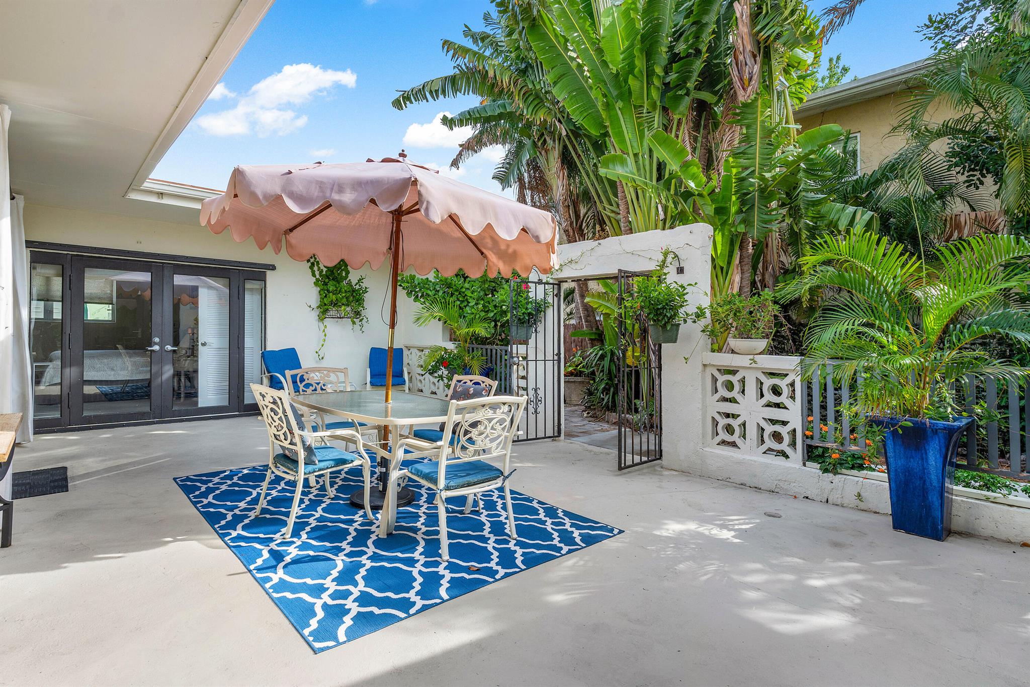 Explore this charming courtyard home near downtown West Palm Beach and Palm Beach Island, complete with a separate guest cottage. Enjoy the flexibility of a 2-bedroom home plus a cottage or the potential for rental income from two separate buildings. Spacious courtyard entryway & updated finishes throughout. The main house features 2 bedrooms, 2 bathrooms. Master bedroom has a large closet. Partial impact windows & doors. There is off street parking space for boats/recreational vehicles. Boat ramp located 5 minutes away from the home. The detached guest cottage, ideal for guests, storage, or rental income, offers 1 bedroom, 1 bathroom, a full kitchen, and a separate entrance for parking