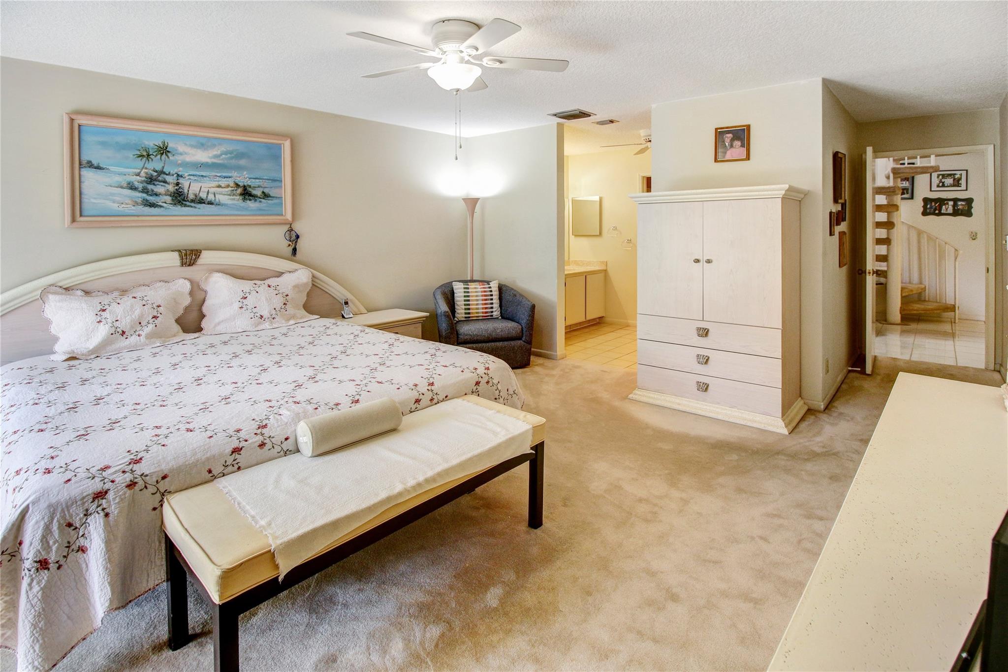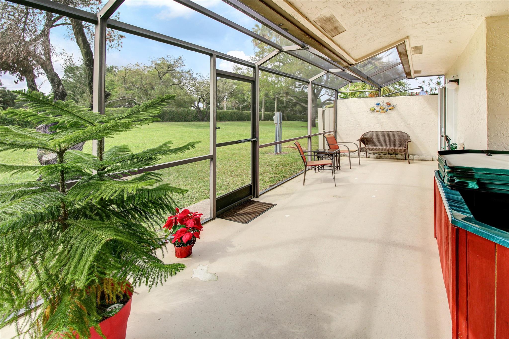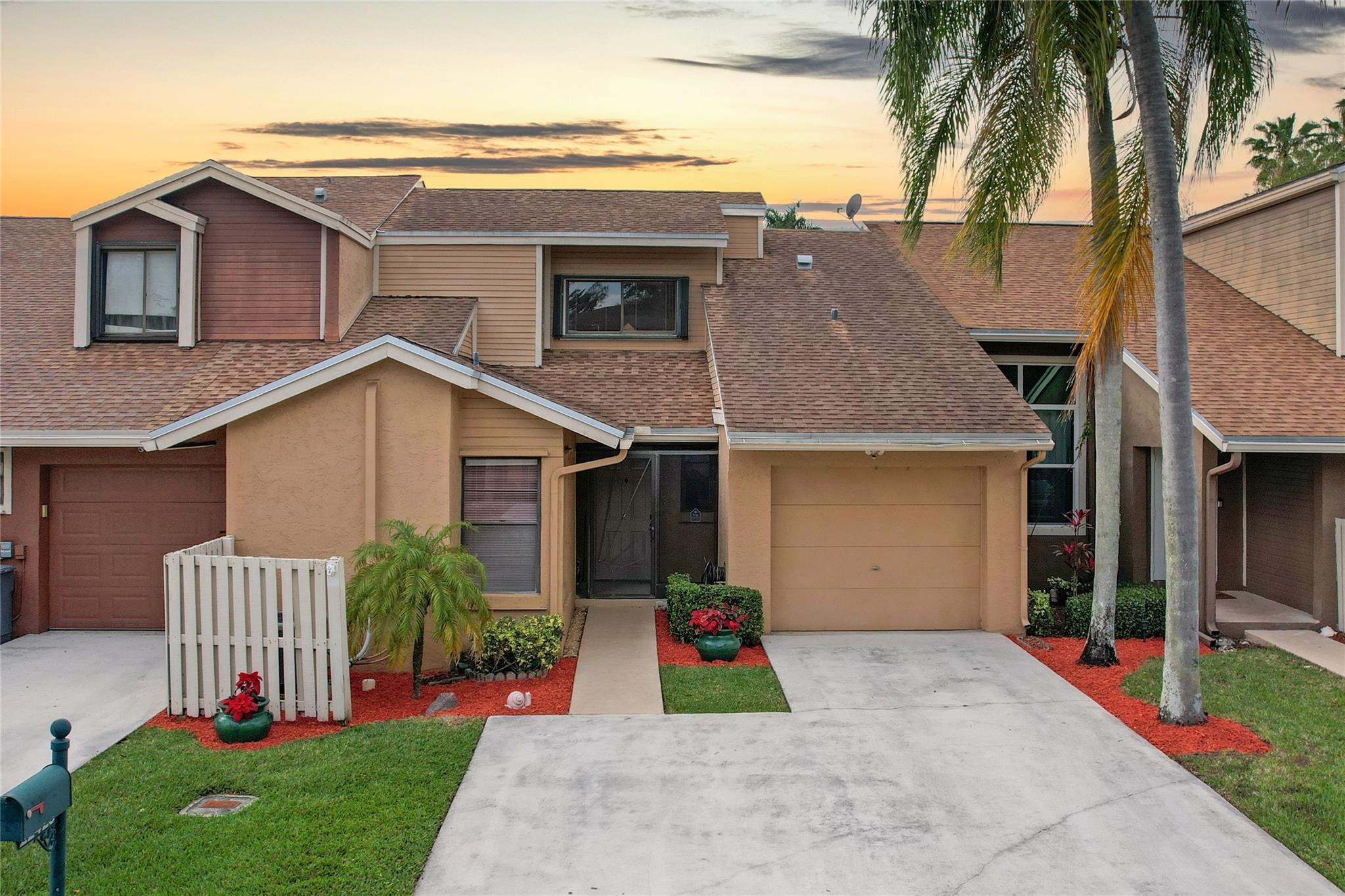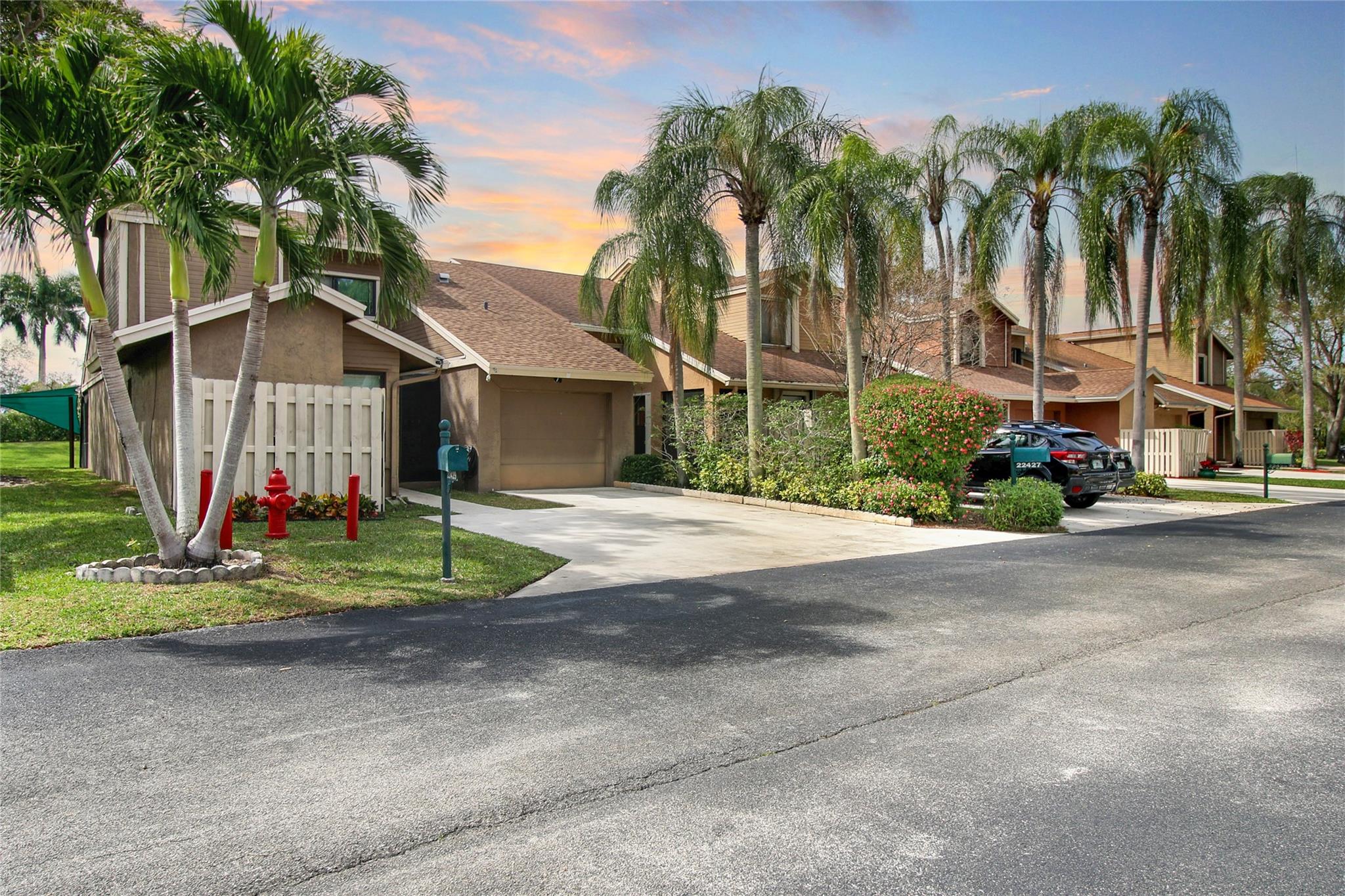 Welcome to this beautiful, very desireable community of Timberwalk 2 in West Boca Raton. This clean, clean, clean & wonderfully maintained home is a 3 bedroom / 2 bath Townhome. Low HOA. The Master & 2nd bedroom, as well as both bathrooms are on the first level. Take the spiral staircase up to the 3rd bedroom located in the loft. High vaulted ceilings in the living area add to the spaciousness of the home. Large screened patio with a very peaceful garden view. Hot tub will convey. 1 car garage & 2 parking spaces with plenty of guest parking. Accordian shutters for protection. Schools within walking distance. Close to shopping and West Boca Med Center. 2 parks exclusive to Loggers Run with picnic areas, walking trails & tennis. pool and hot tub in the community. Roof 2018, A/C 2020...