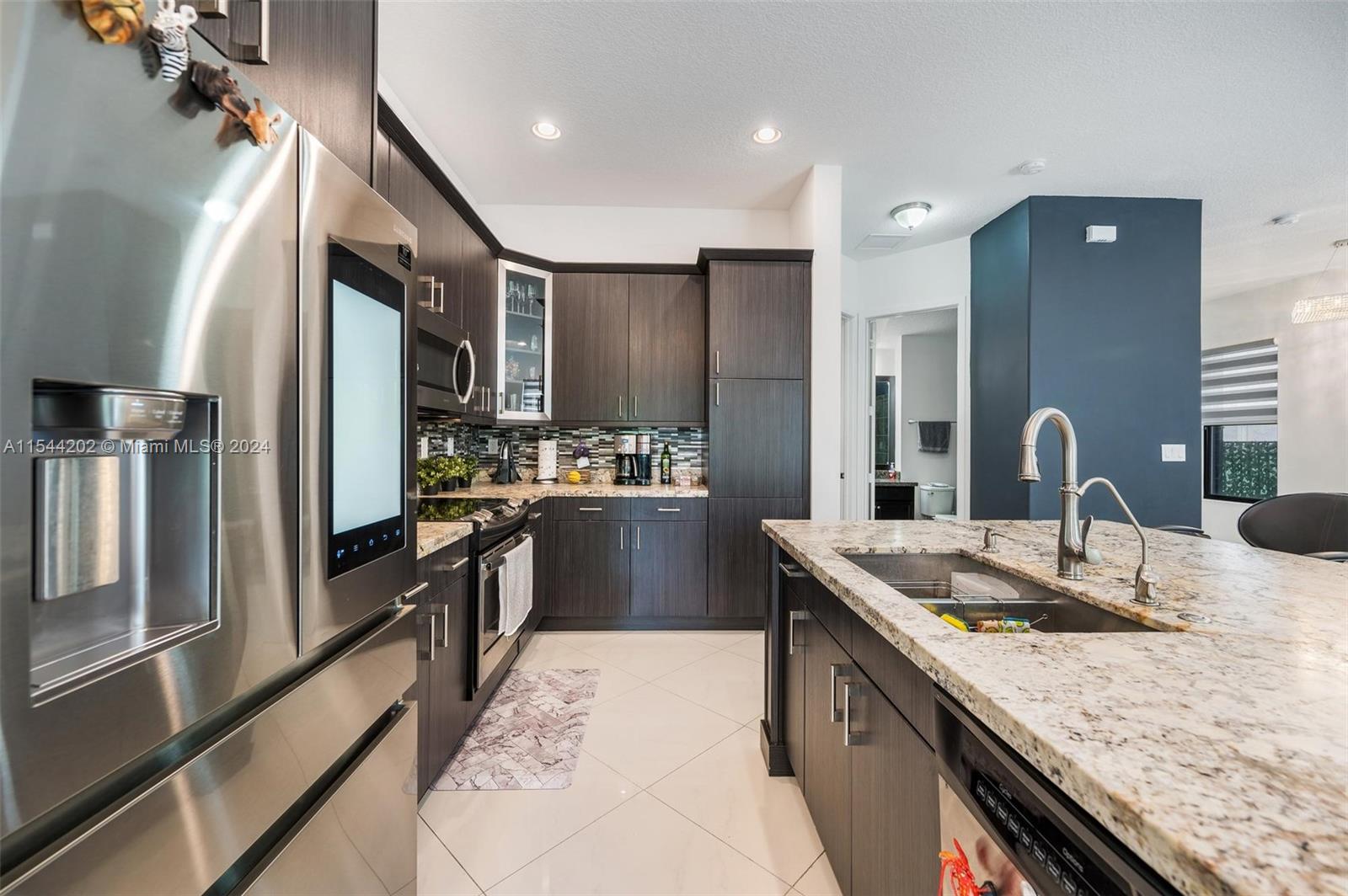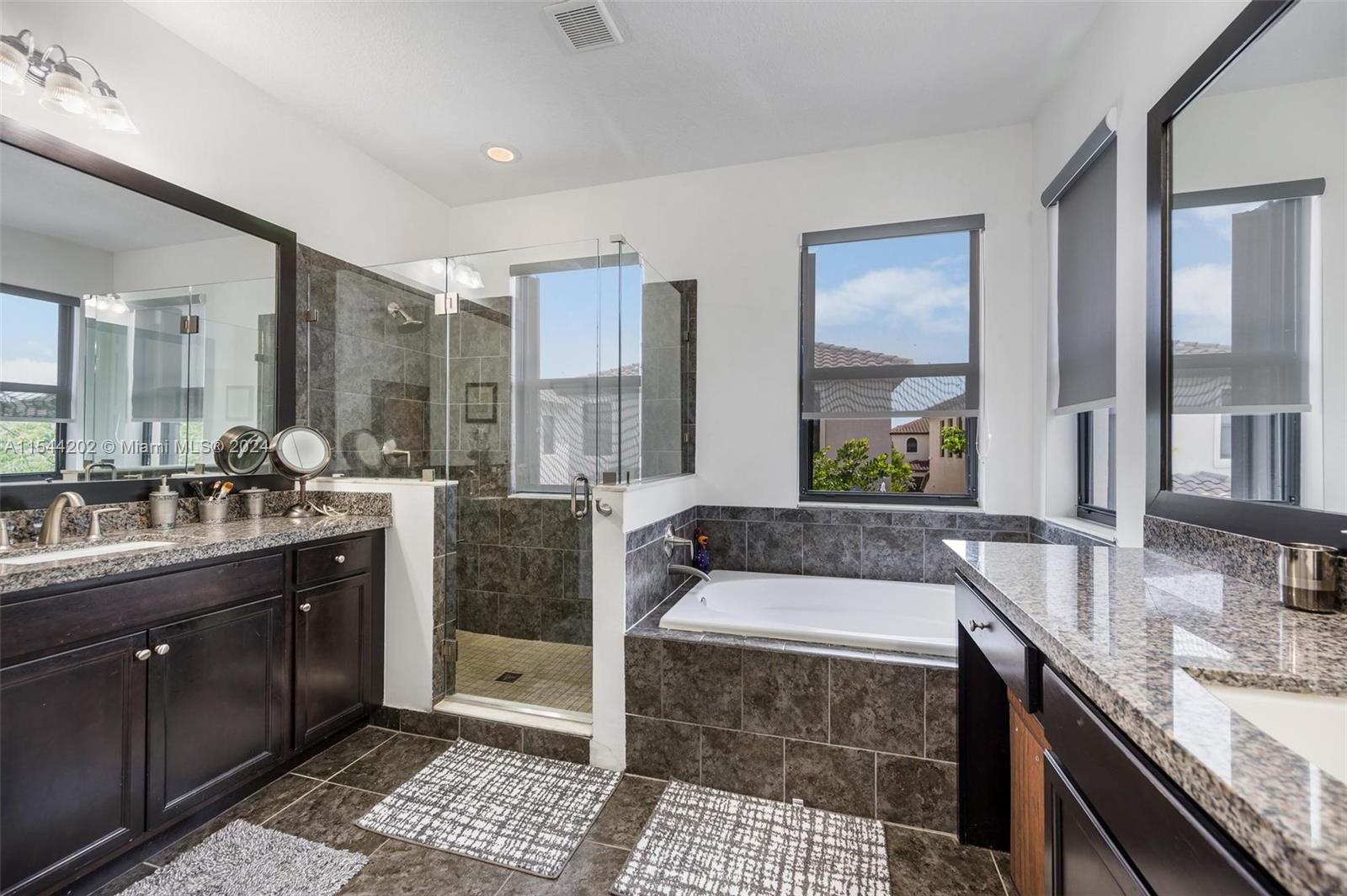 Stunning residence available in the prestigious Bonterra community. The property includes 5 spacious bedrooms and 3 full bathrooms with 2 car garage. With an open concept living/dining area with large kitchen featuring an island, stainless steel appliances, granite countertops, pool, cabana. There is one bedroom and full bathroom on the first floor that could be use an office also. The living room opens onto the patio. Bonterra is a gated community that has plenty of amenities such as saltwater pool, community center with gym, game room, children’s playground, plenty of guest parking available and 24 hour security. Easy access to major highways I75 and 826.