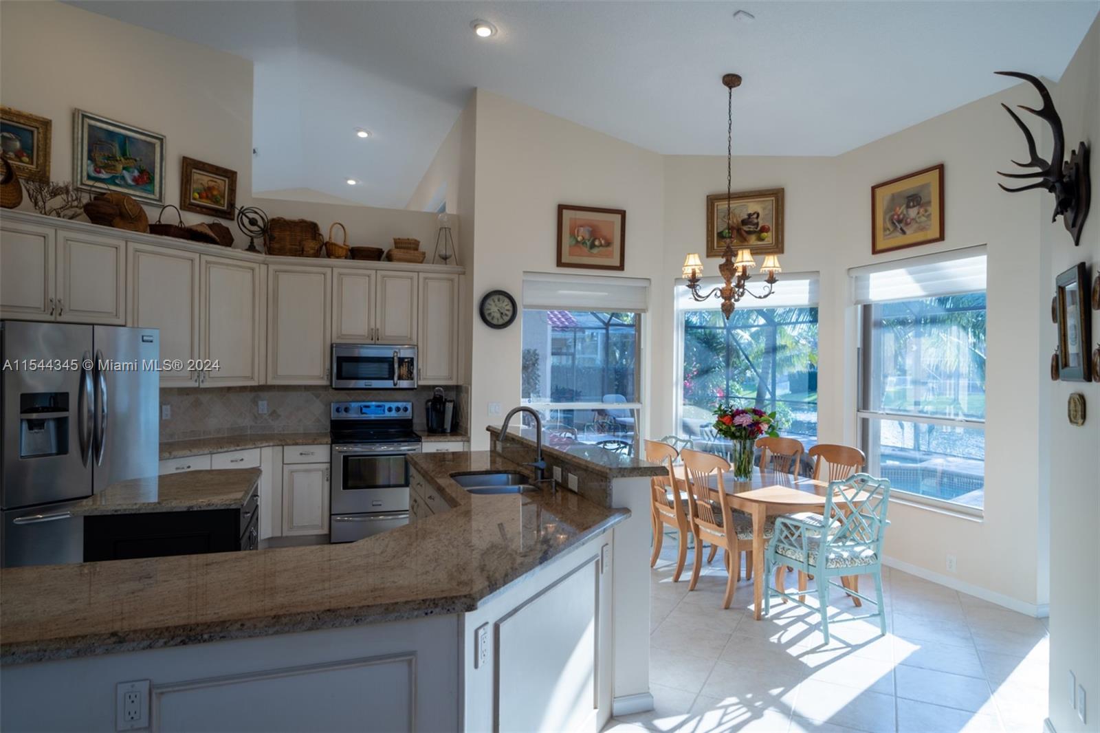 Westport beauty with 15 ft ceilings-stunning long, lake view! Circular driveway lead to grand double doors. Large dining room with huge picture window. Wall-to-wall living room has sliding doors to pool & spa. Beautiful kitchen: island, wrap-around peninsula, topped with granite. Laundry room with utility sink off kitchen. Breakfast area slider leads to patio and grill area. Family room with custom fireplace mantel. Four large bedrooms form ‘triple split’ bedrooms with oversized closets. All baths with Italian designer tile. Master suite has foyer and with ‘his and hers’ closets, hall leading to master bath with garden tub, shower with frameless glass and dual sinks. Screen-enclosed patio with doggie door by former owner. Pet-free and smoke-free home.