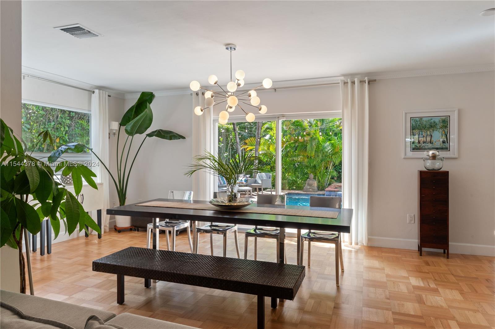 Elegance and comfort in a premier South Coral Gables neighborhood. Situated on a quiet, tree-lined street minutes away from shopping and every imaginable convenience. Newly refinished solid hardwood flooring, large hurricane impact windows, lots of natural light, new paint inside and out, and plenty of upgrades. The roof and AC have been replaced. Outside, you'll find a private, lushly swimming pool. The entrance and expansive driveway are finished in high end pavers. The home is within the Sunset Elementary district which offers international magnet program and offers the best of both worlds - a peaceful oasis yet close to all the amenities Coral Gables, South Miami and Coconut Grove. Don't miss out on the opportunity to make this your forever home.