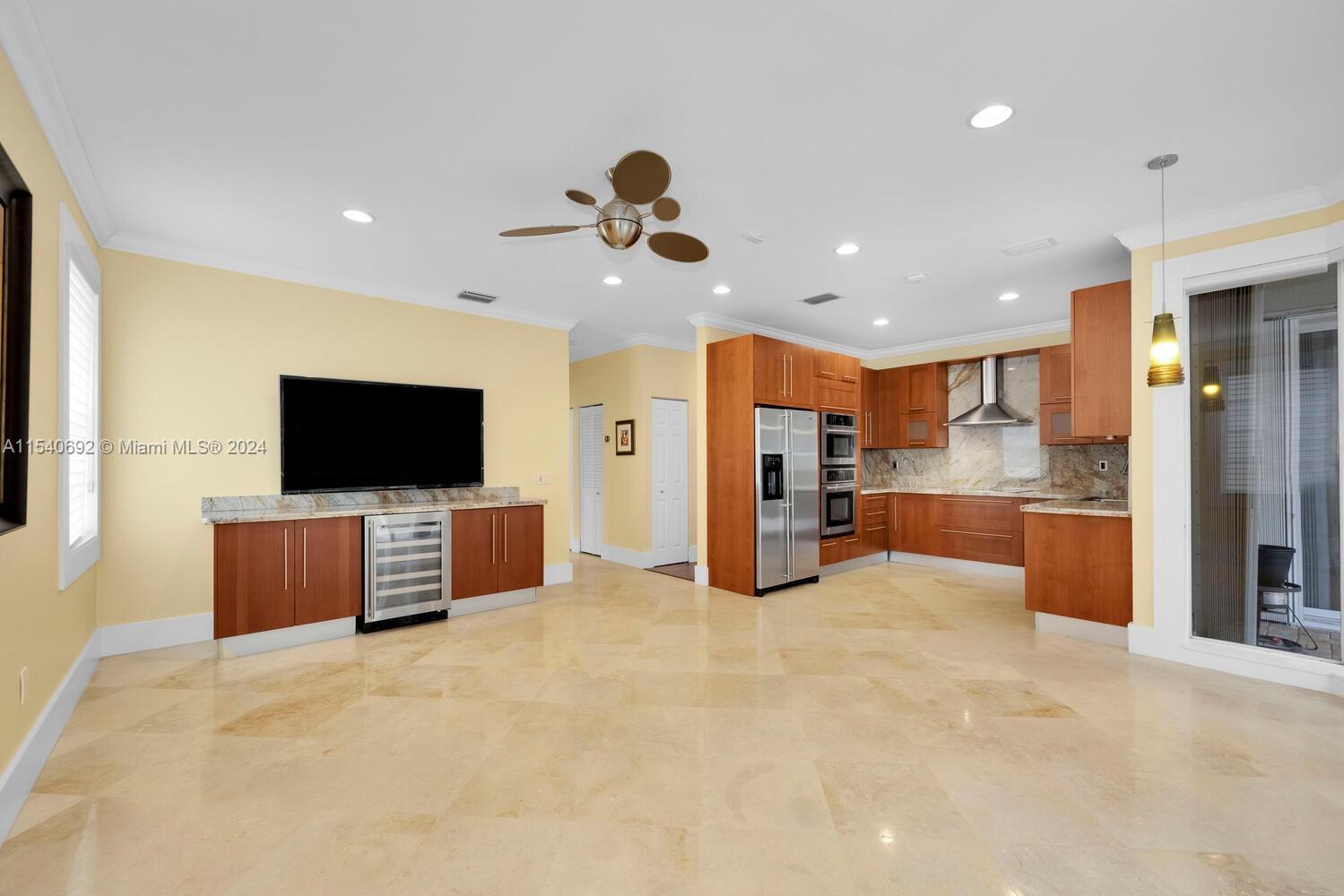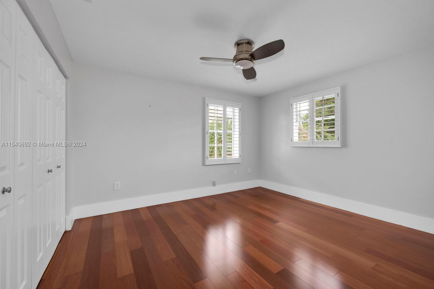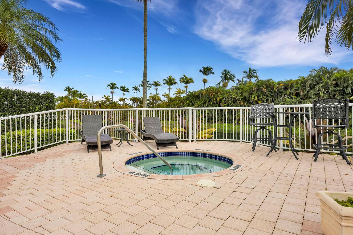 Discover the elegance of a 3-bedroom, 3-bathroom villa located in the prestigious Fairways area of Doral Estates Villas. This exquisite home welcomes you with a grand formal living room, accentuated by soaring 18-foot ceilings, luxurious Brazilian cherry wood floors, & sleek marble tile in the kitchen. The layout includes a convenient downstairs bedroom & bathroom, an indoor laundry room adjacent to the expansive two-car garage, & an outdoor screened terrace. Upstairs, find two ensuite bedrooms, featuring a spacious primary suite with a large walk-in closet, double vanity, Jacuzzi tub, & shower. The home is equipped with partial impact windows & accordion shutters. Residents enjoy access to Trump National Doral Golf & Spa Resort, 24 hour security with a gated entrance, & a community pool.