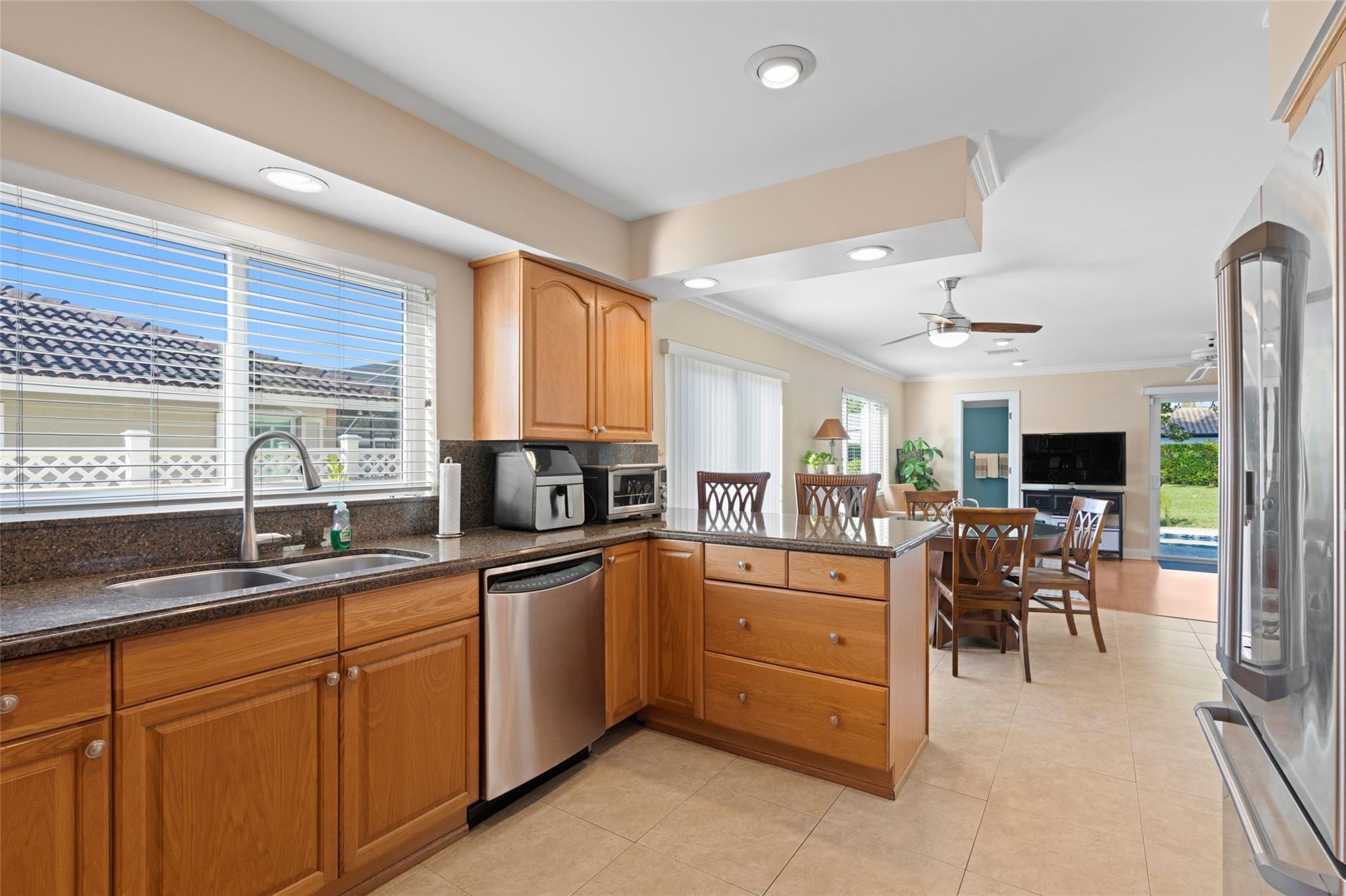 Discover serenity in this 4-bed, 2.5-bath that feels like "home" when you walk in the door. Impeccably maintained inside and out, it boasts impact windows/doors for storm protection and energy efficiency. Nestled on an oversized, tranquil lot, walk to parks and schools. Enjoy the perfect blend of comfort and convenience! Two patios and a giant pool perfect for entertaining!
