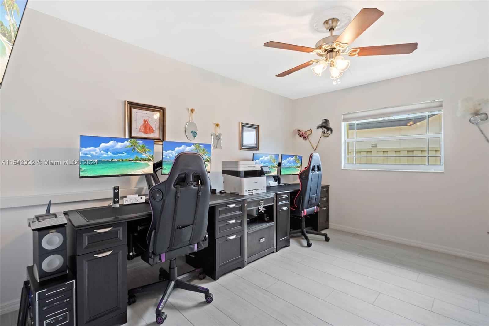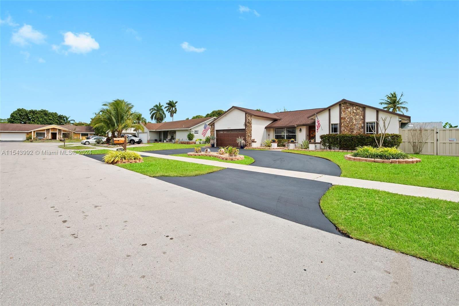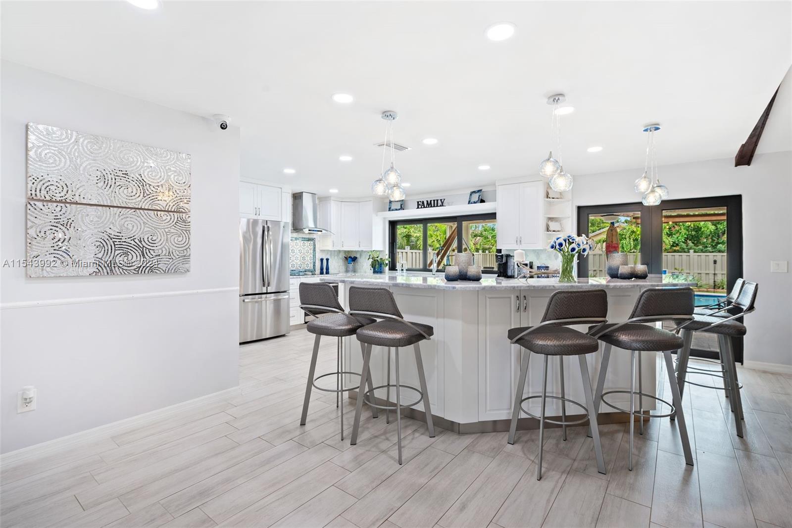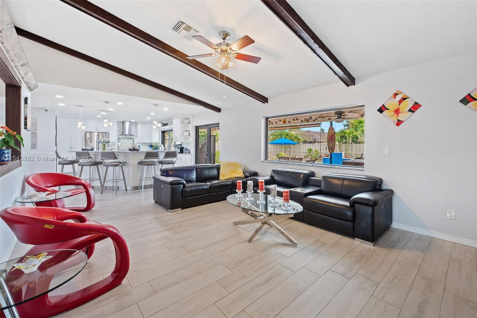 Welcome to paradise. This stunning 3/2 home offers many amenities and smart features, creating the ultimate haven for relaxation and entertainment. Step inside to discover modern elegance, with updates throughout the home including a newer roof and sleek ceramic floors. Both bathrooms have been tastefully renovated with modern fixtures and finishes, while the chef's dream kitchen with updated appliances and a big island perfect for entertaining. Now we take you ourdoors to breathtaking landscaping and a tropical oasis pool with and adjacent cozy firepit for evenings under the stars.The home also has smart home tech. with security of modern living from smart locks, smart AC thermo., smart switches, and security featuring 11 cameras with 4 PTZ (pan/tilt/zoom) all at your fingertips.
