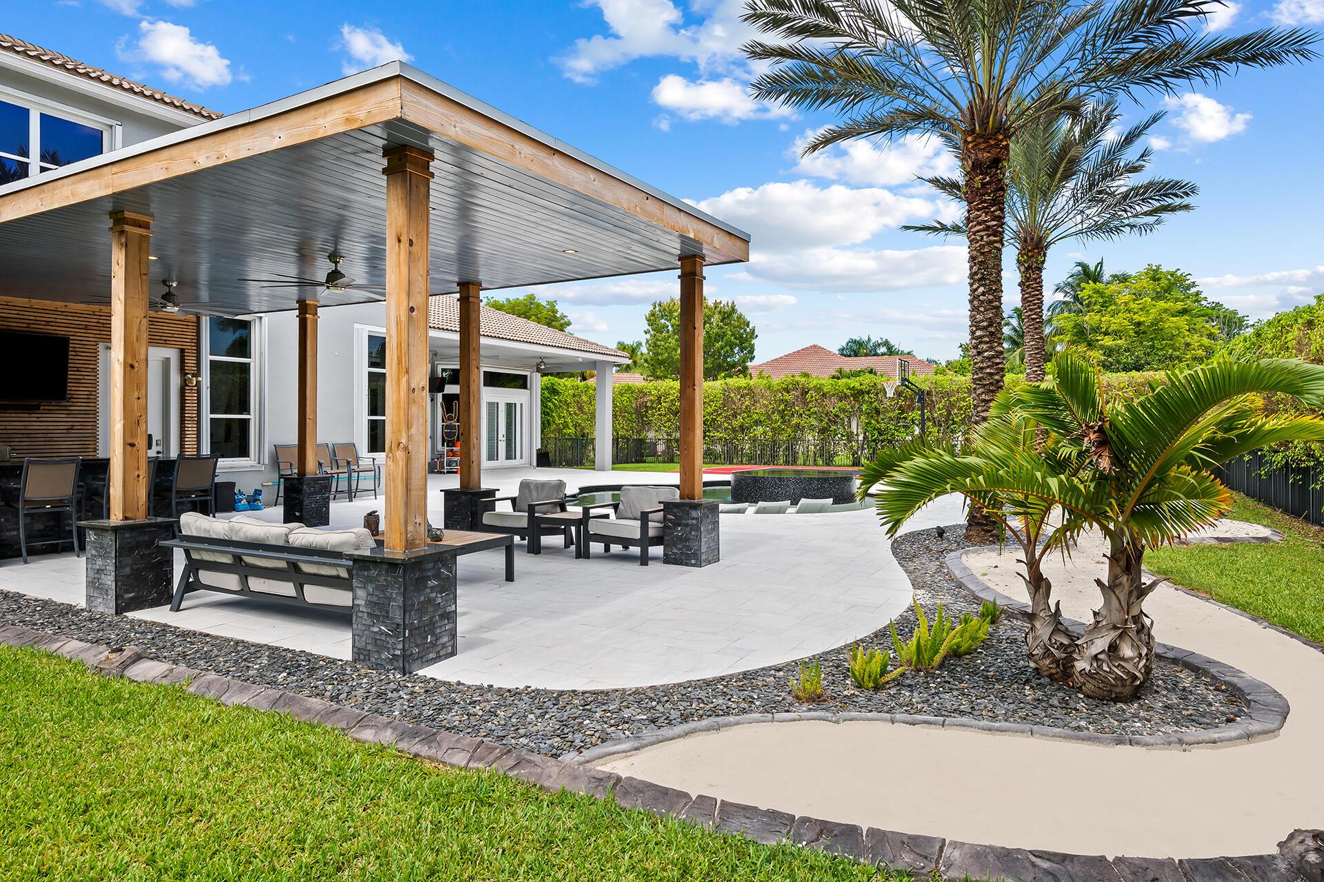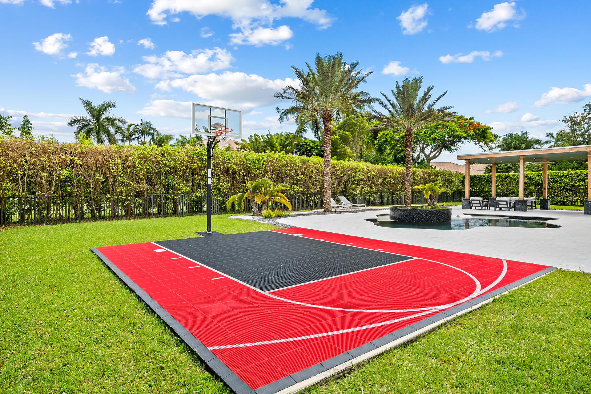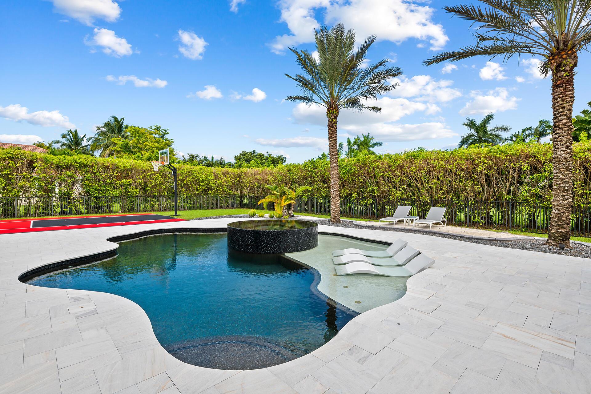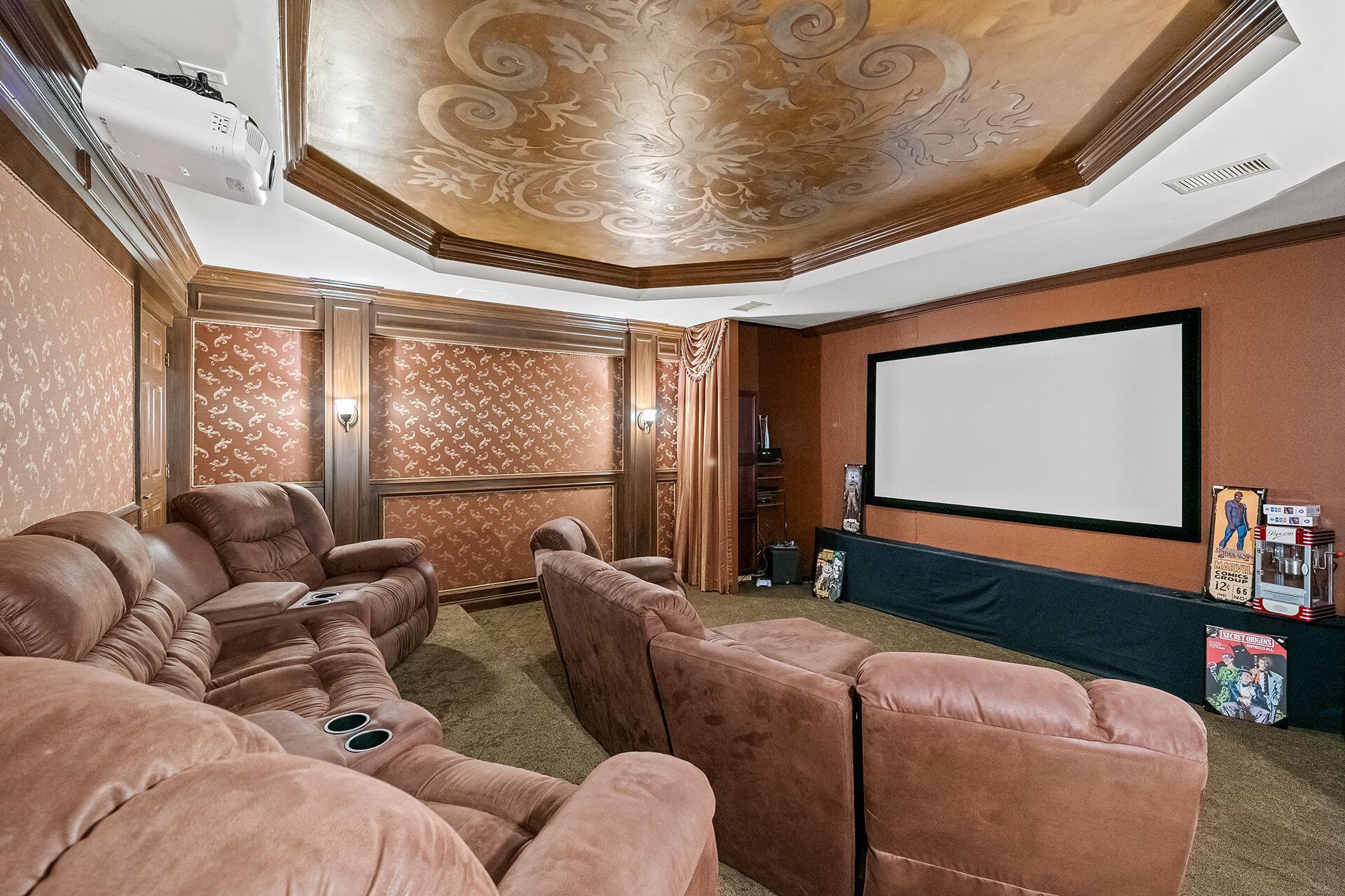 Welcome to this stunning home situated on an oversized nearly 1/2 an acre lot and an expansive 4386 SF of living space. Step inside to an open and split floor plan of 5 beds, 4.5 baths + a home office. The updated kitchen features new quartz countertops, a waterfall peninsula, double wall oven, and a wine fridge. The family room offers soaring 20 ft ceilings and a newly refinished fireplace. The first floor primary bedroom features custom closets and a lux bathroom suite with a roman tub, dual shower heads, and dual vanities. Entertain friends and family in the professional soundproof theater with seating for eight or outside alongside the newly refinished pool and spa, full basketball court, or under the covered patio with summer kitchen including a built in grill and beverage center.