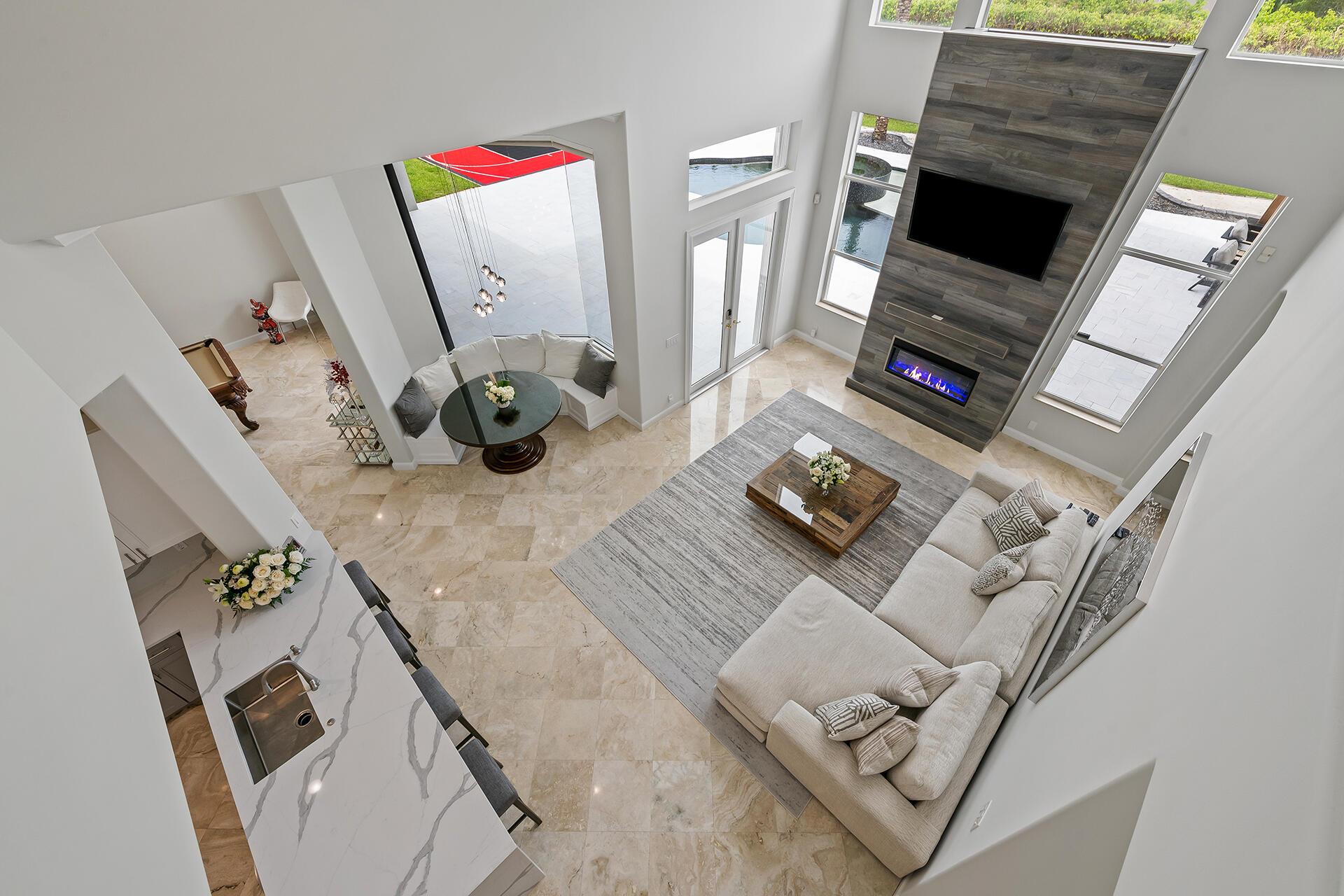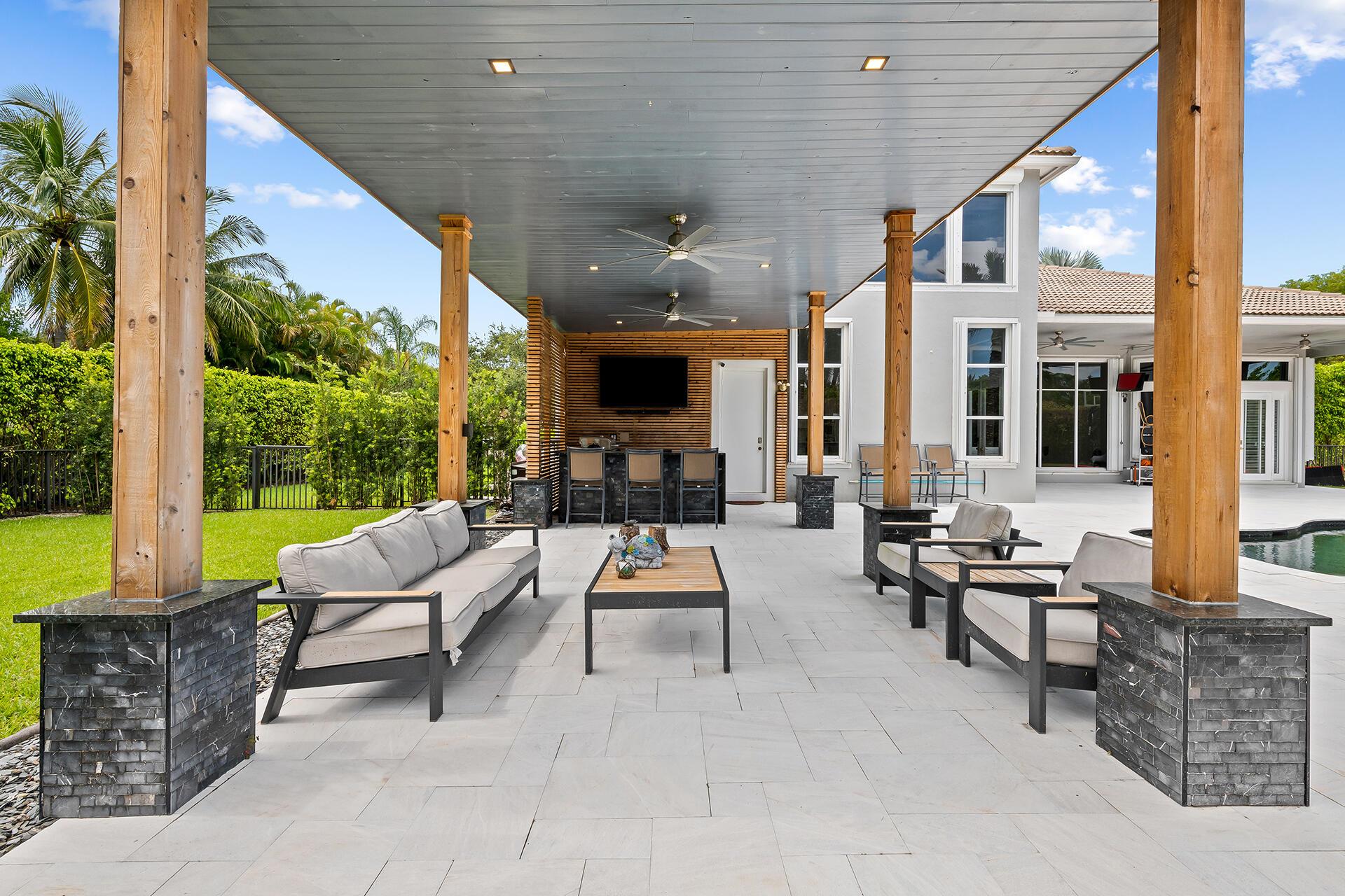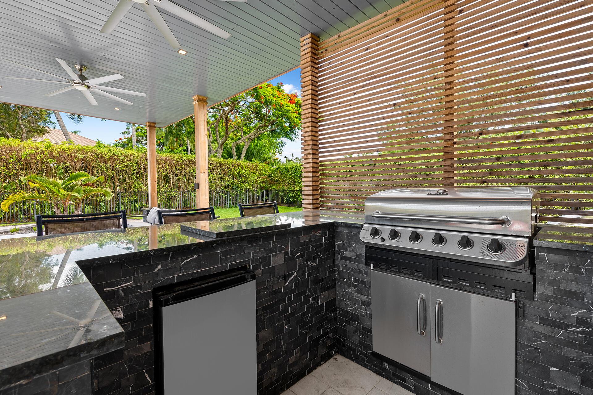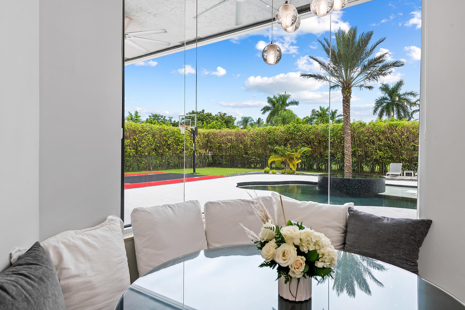 Welcome to this stunning home situated on an oversized nearly 1/2 an acre lot and an expansive 4386 SF of living space. Step inside to an open and split floor plan of 5 beds, 4.5 baths + a home office. The updated kitchen features new quartz countertops, a waterfall peninsula, double wall oven, and a wine fridge. The family room offers soaring 20 ft ceilings and a newly refinished fireplace. The first floor primary bedroom features custom closets and a lux bathroom suite with a roman tub, dual shower heads, and dual vanities. Entertain friends and family in the professional soundproof theater with seating for eight or outside alongside the newly refinished pool and spa, full basketball court, or under the covered patio with summer kitchen including a built in grill and beverage center.