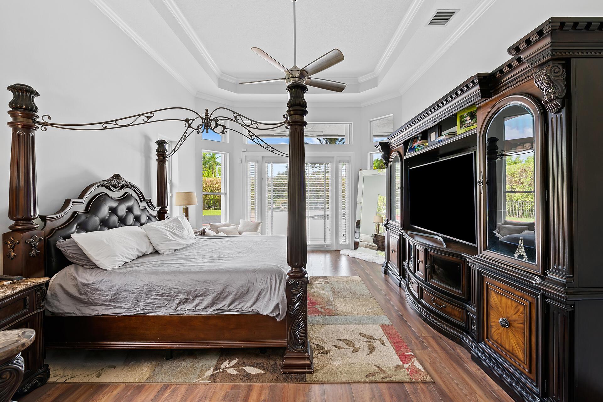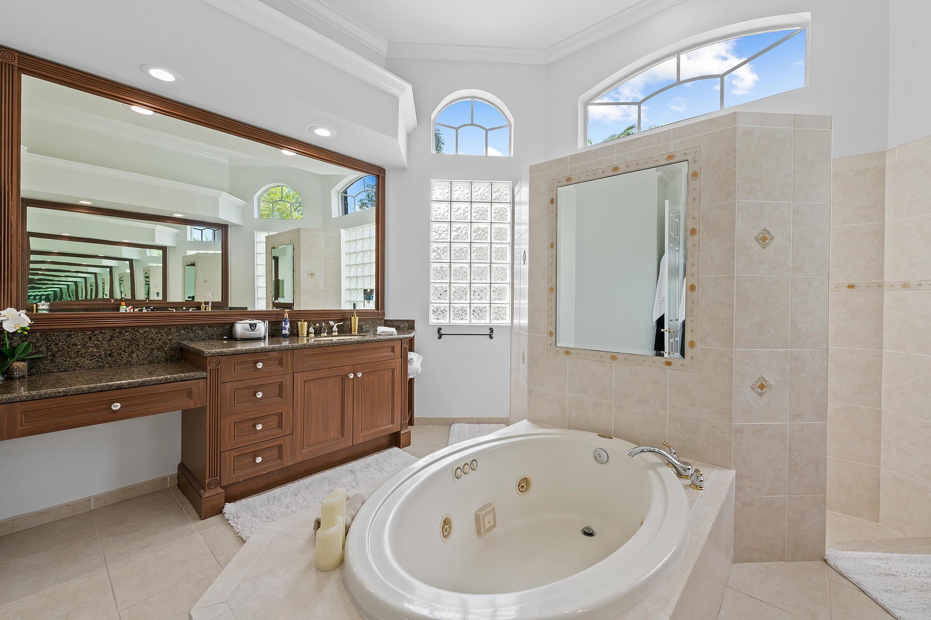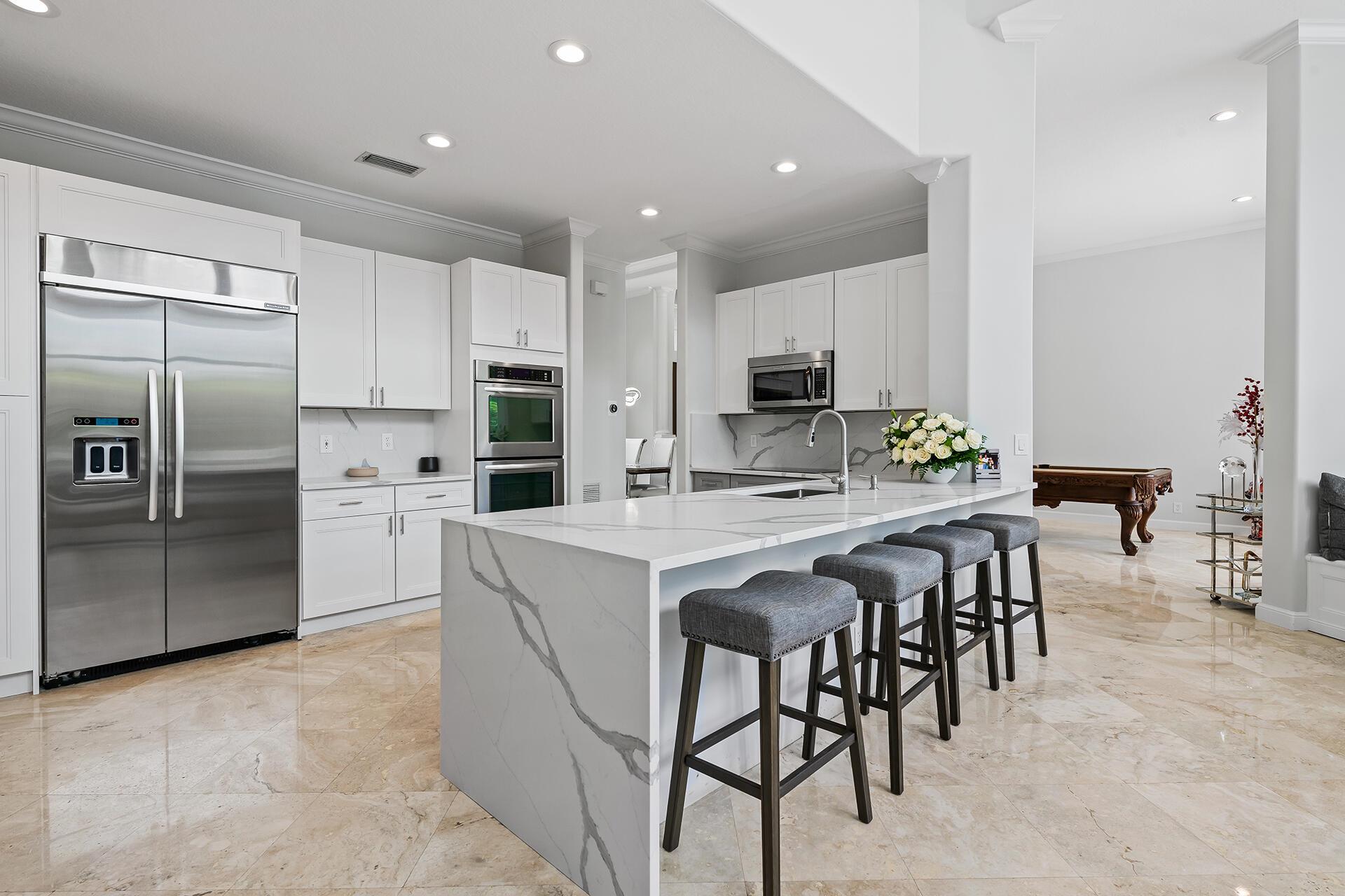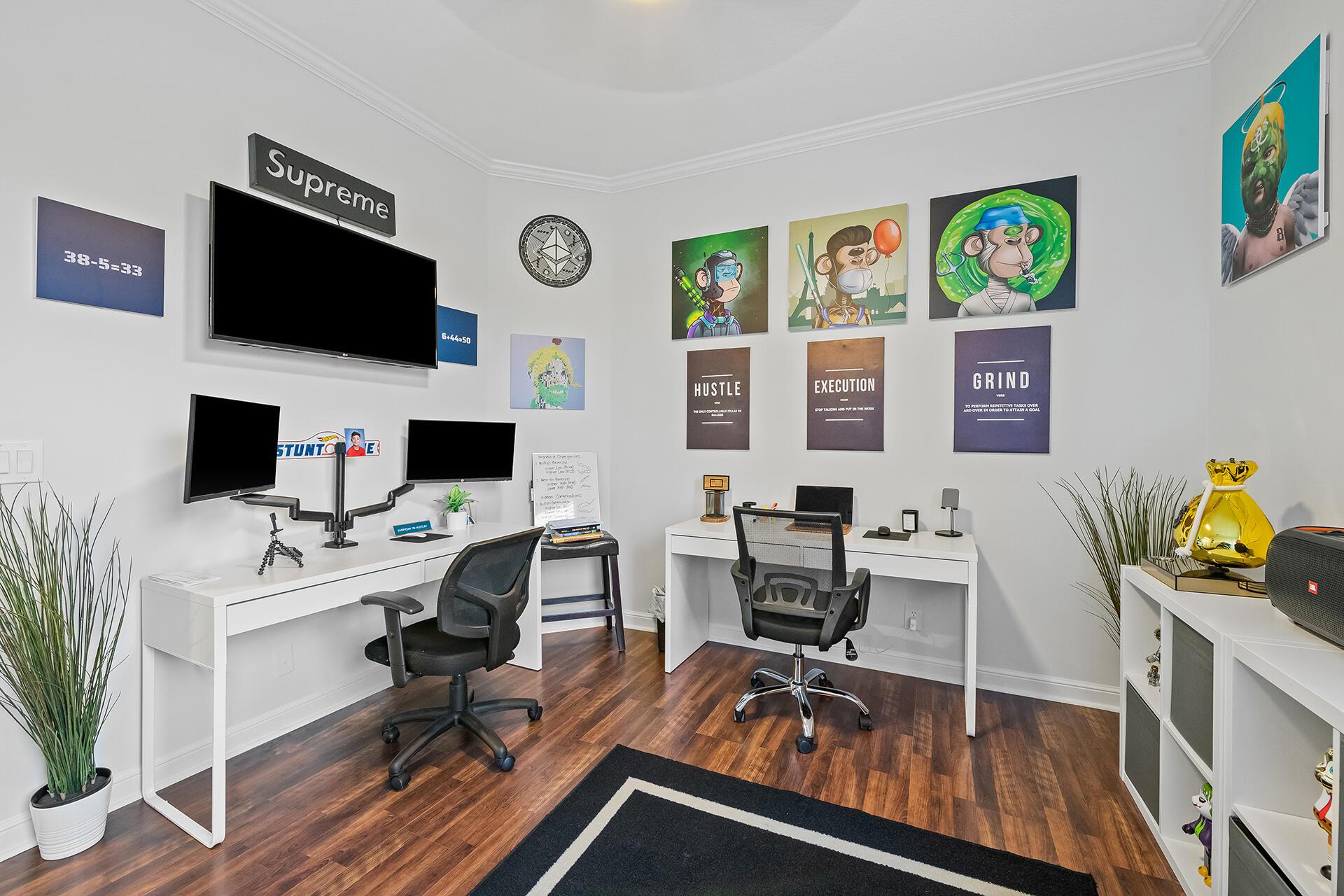 Welcome to this stunning home situated on an oversized nearly 1/2 an acre lot and an expansive 4386 SF of living space. Step inside to an open and split floor plan of 5 beds, 4.5 baths + a home office. The updated kitchen features new quartz countertops, a waterfall peninsula, double wall oven, and a wine fridge. The family room offers soaring 20 ft ceilings and a newly refinished fireplace. The first floor primary bedroom features custom closets and a lux bathroom suite with a roman tub, dual shower heads, and dual vanities. Entertain friends and family in the professional soundproof theater with seating for eight or outside alongside the newly refinished pool and spa, full basketball court, or under the covered patio with summer kitchen including a built in grill and beverage center.