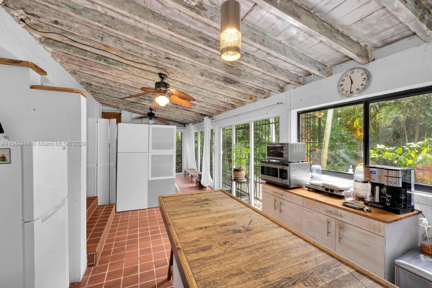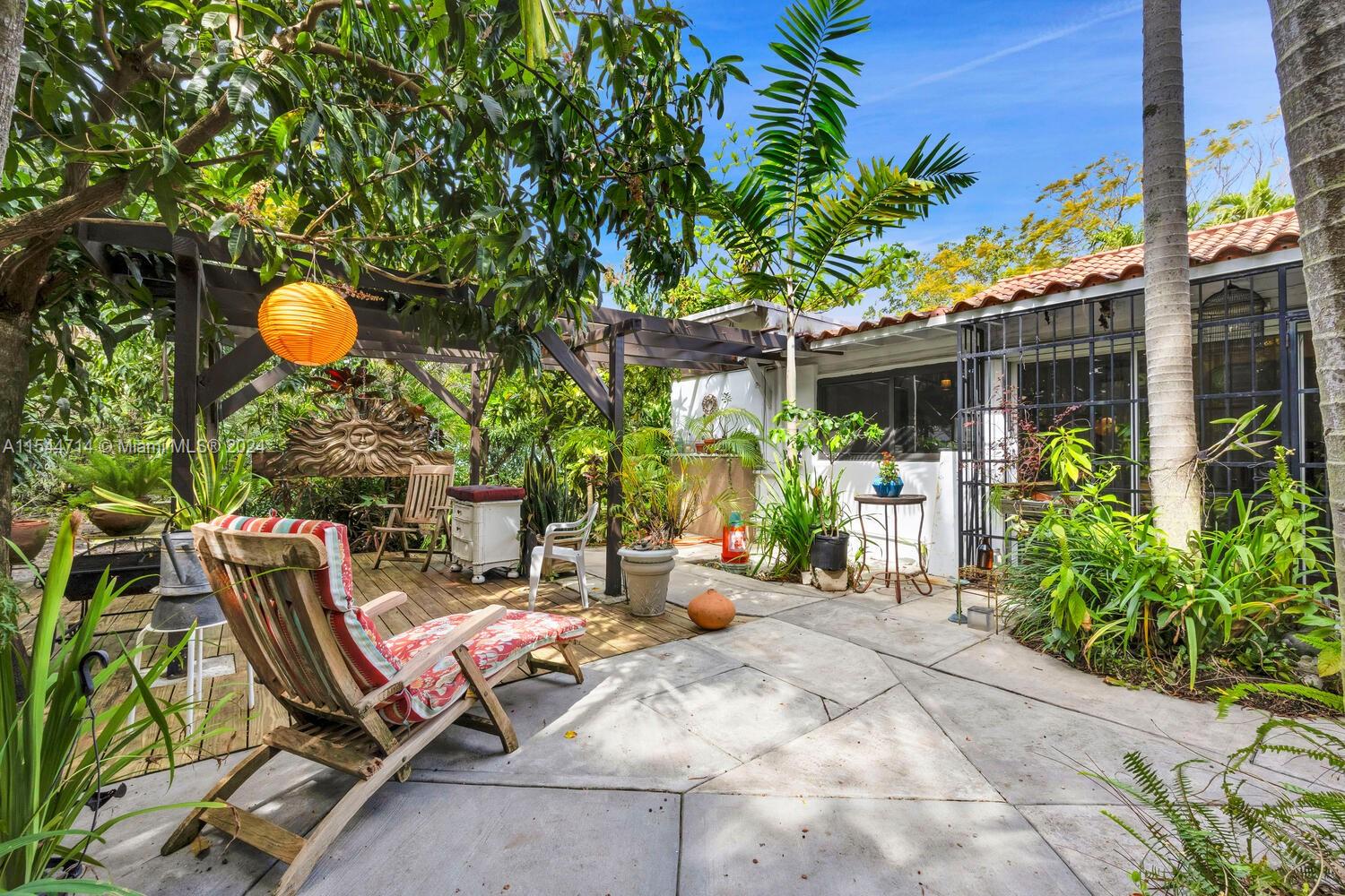 Charming North Grove bungalow on a quiet, tree-lined, no thru-traffic street. 3BR/2BA main house + a 1BR/1BA attached guest quarters (w/ private entrance), Light-filled living spaces feature vaulted, wood-beamed ceilings, working fireplace & wood flooring. Classic kitchen w/ white cabinetry. Living & dining rooms + enclosed Florida room w/ built-in bar. Enjoy outdoor living & entertainment in the private tropical garden w/ wooden deck, exotic native plants & fruit trees (mango, avocado, starfruit and lychee). High sea-level elevation (not in a flood zone). Located just a short walk or bike ride to bayfront parks & marinas and the Grove village center’s trendy galleries, boutiques & cafes. Minutes drive to downtown, MIA, Key Biscayne & the beaches.