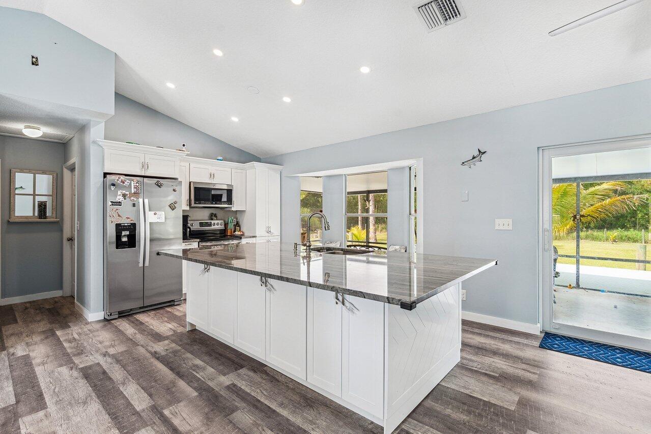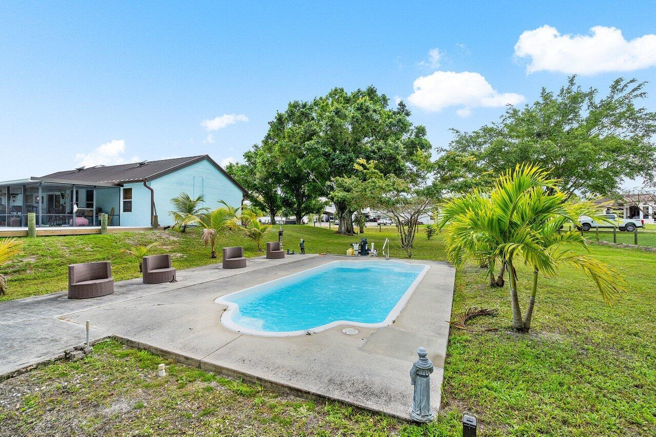If your looking for amazing pool home look no further than this charming Acreage home. This stunner is a must see as it features a new metal roof, fully fenced yard, huge drive through detached garage, beautiful pool and huge back deck. As you enter this amazing home you cant help but notice the amazing new floors, stunning kitchen with stainless appliances and beautiful grey granite tops. The spa like master bath is absolutely breath taking and features custom shower and free standing soaker tub. The homes attached garage was also converted in to a great office or bonus room. Come see this great home as soon as possible as it wont last long