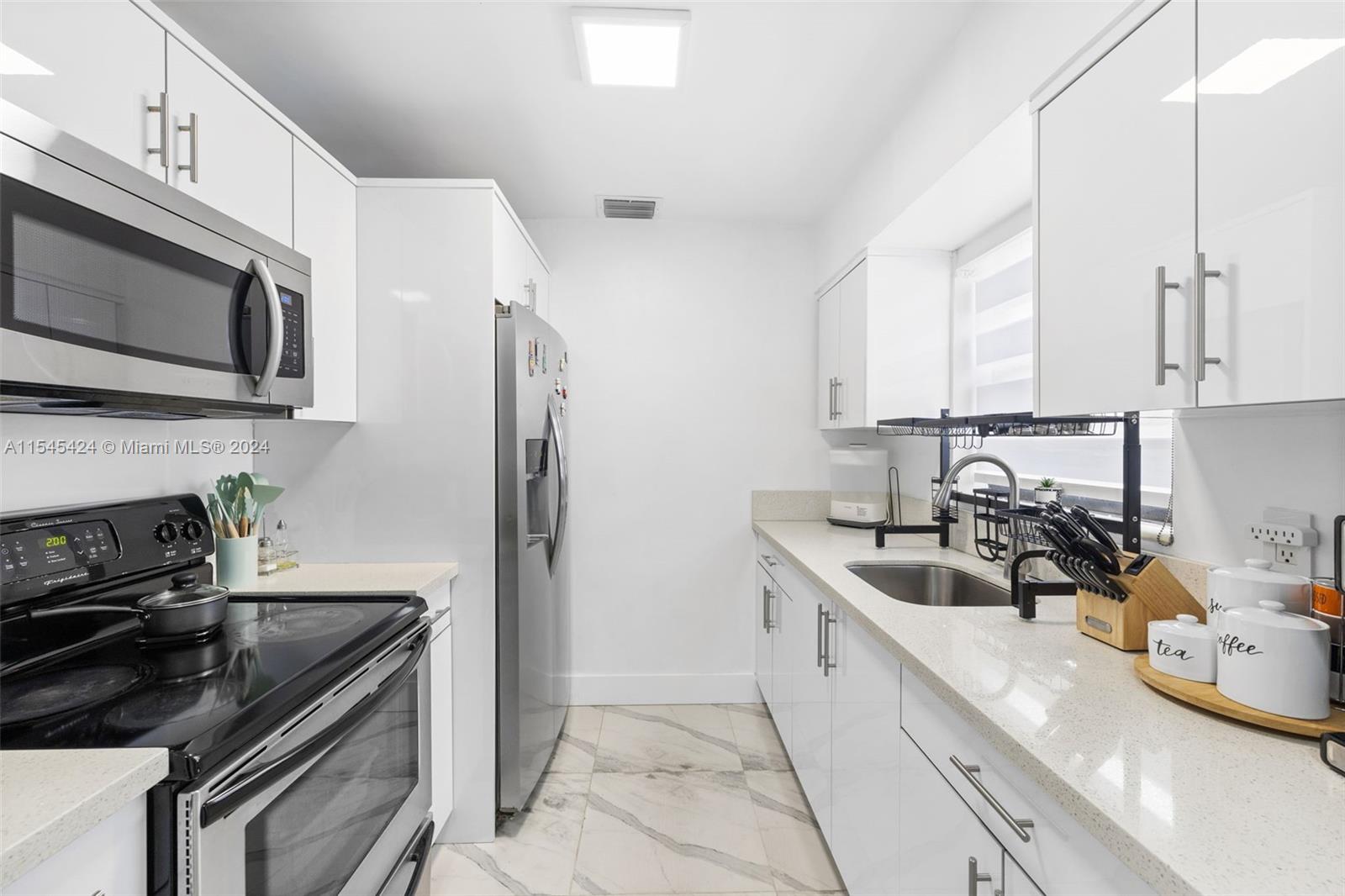 Beautifully updated home features 2 bedrooms, 1 full bathroom plus a studio with a little kitchen, bathroom and independent entrance. Marble Ceramic tiles throughout the entire home, fashion and modern. New A/C central, new kitchen, new appliances, new curtains! Minutes from Shopping Plazas, restaurants, and the Turnpike. This is a must see! Washer and dryer are not included.