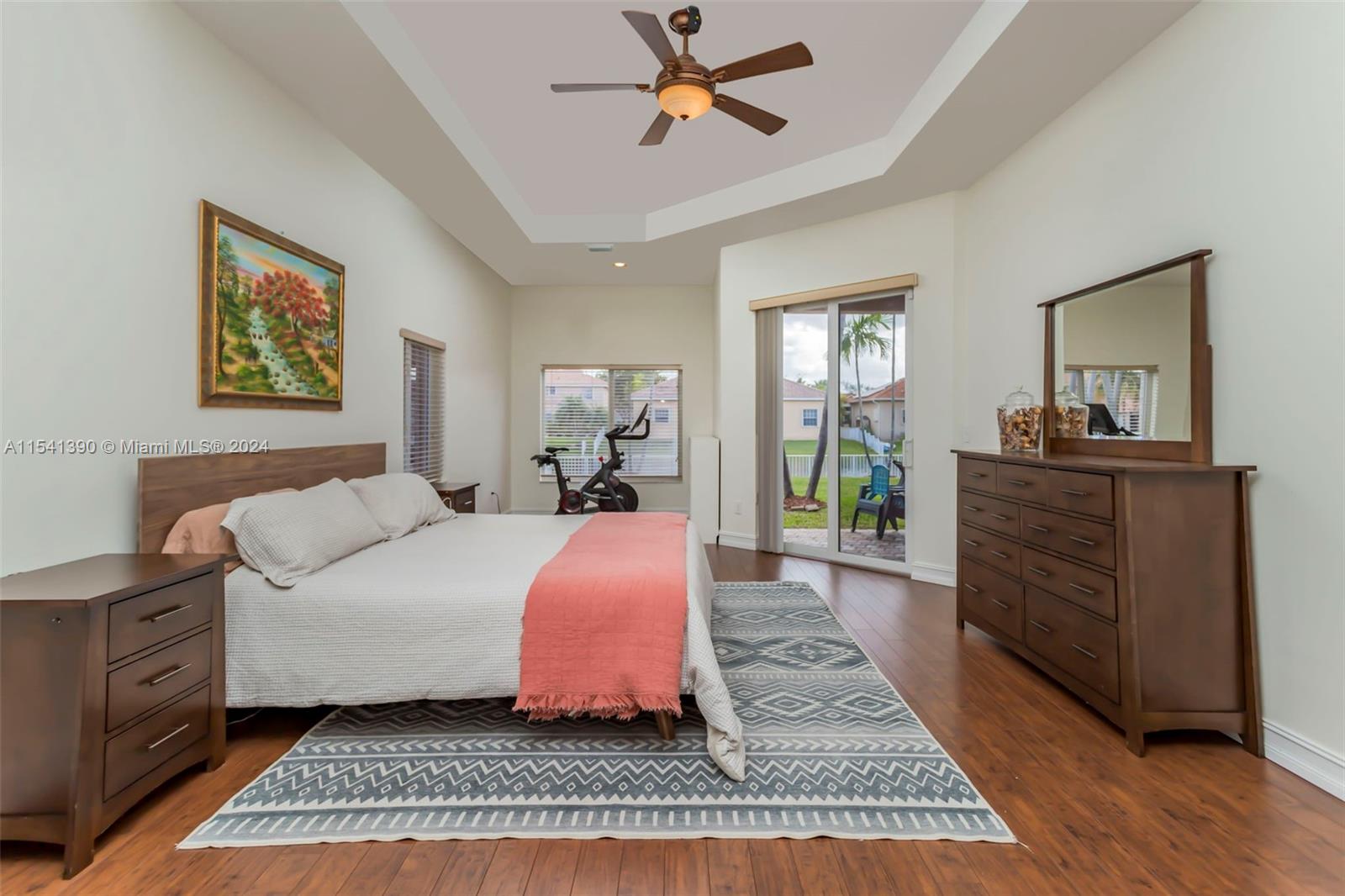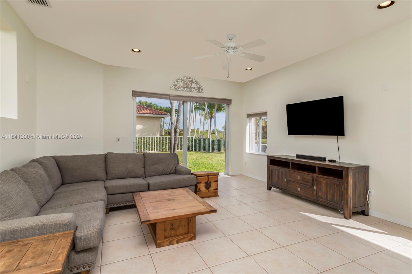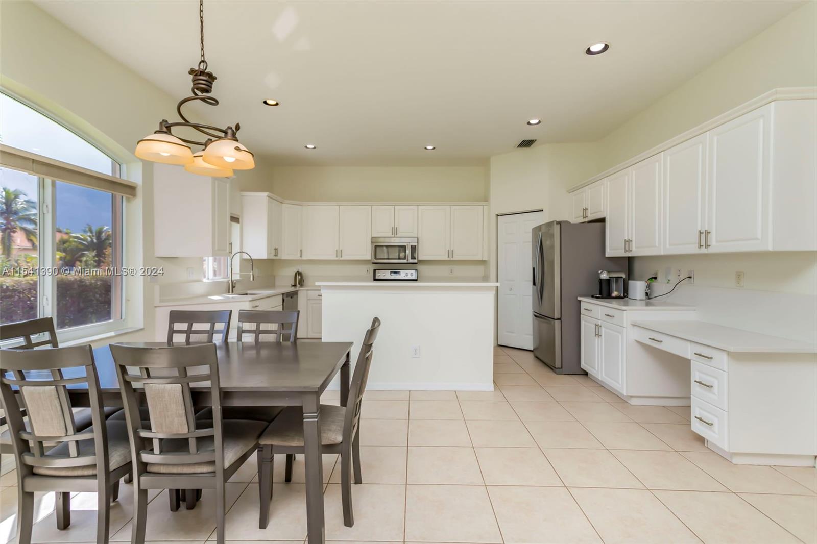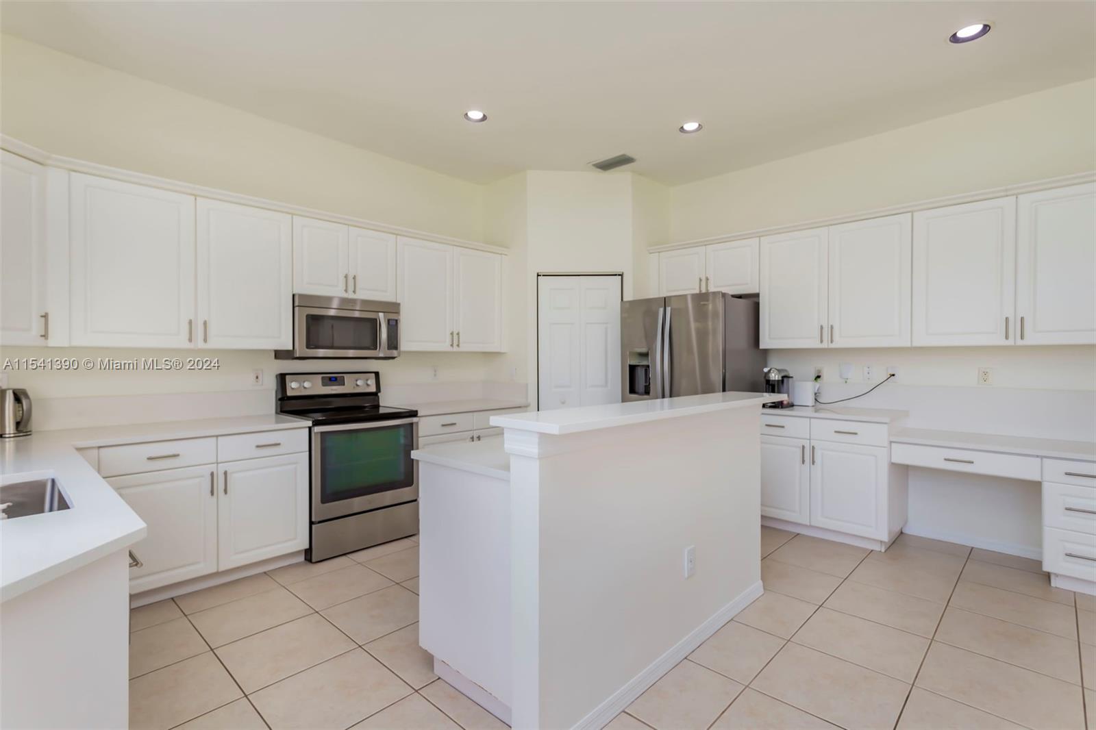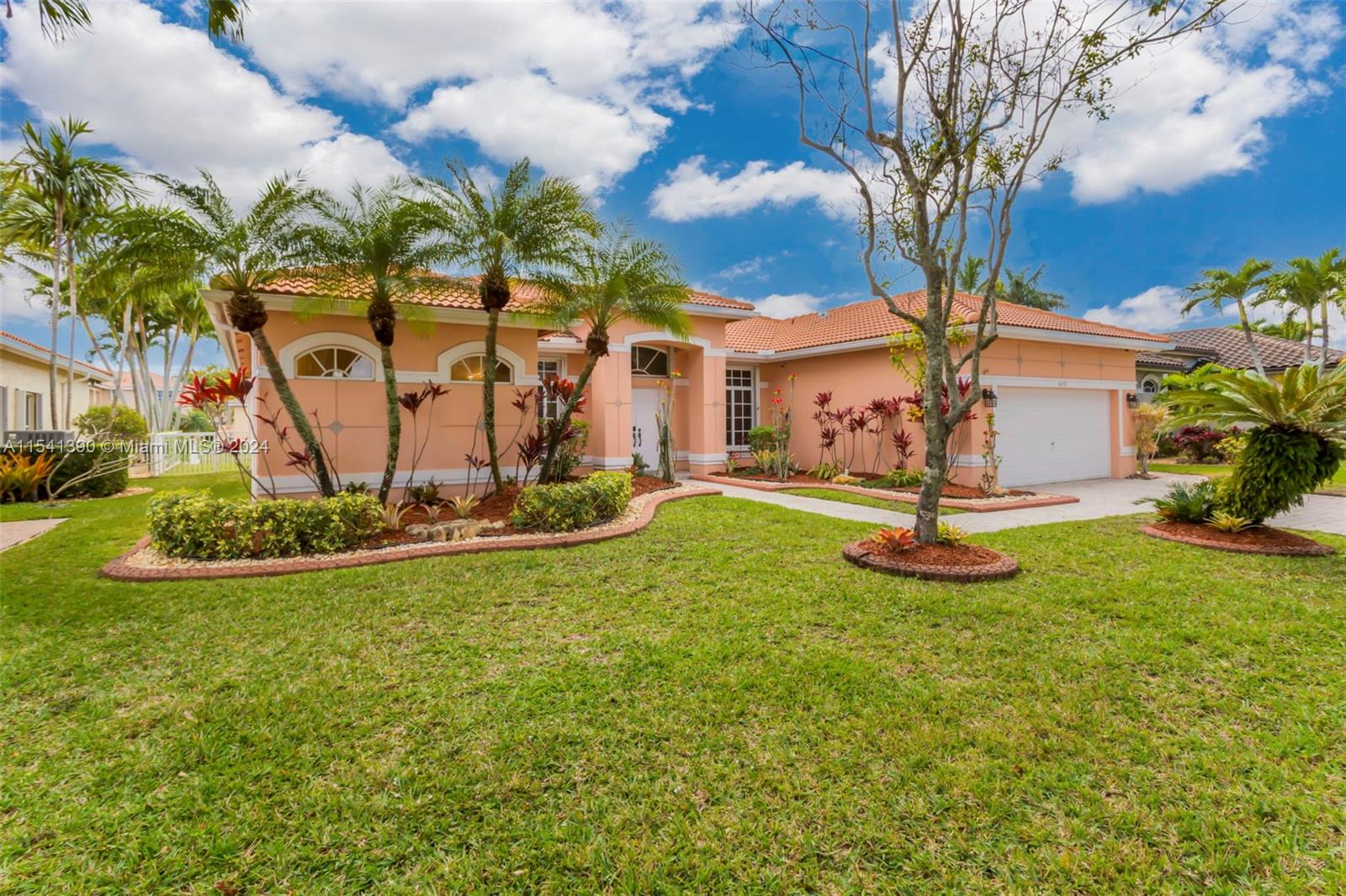 Welcome to this beautiful single-story lakeside paradise nestled amidst lush landscaping. Lots of natural lighting that streams through the hurricane impact windows. Recessed lighting & freshly painted warm neutral colors add a touch of modern sophistication. The heart of the home is the open-concept kitchen & family room, where breathtaking lake views provide a stunning backdrop for daily life. Kitchen is complete w beautiful quartz countertops, pristine white shaker cabinets, & SS appliances. A large pantry ensures that all your storage needs are met. Retreat to the oversized primary bedroom, w custom closets & a spacious sitting area. Modern conveniences include a Tesla charger hookup & whole house generator hookup, ensuring that you're always prepared. Brand new AC