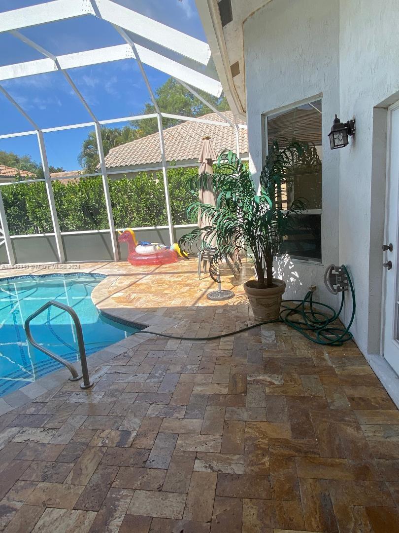 NEW ROOF, 3 BEDS WITH AN OFFICE/DEN THAT CAN EASILY BE CONVERTED INTO A 4TH BEDROOM. ONE OF THE FEW HOMES IN THE COMMUNITY WITH A PRIVATE POOL. 2700 sq ft open concept house which has a luxurious master suite with soaring ceilings, double vanities, double walk in closets, huge shower, separate soaking tub and en suite toilet. Eat in kitchen with granite counters, stainless appliances, a commanding foyer. . Marble floors throughout the house and stone lanai outside. Garage floor has Polycurate finish. House has fresh paint inside and out. Close to A schools with a dedicated pathway for the Elementary school and the bus stops at the gate for the older kids. Lexington estates sponsors events year round. Egg hunts, Halloween, Winter Fest.