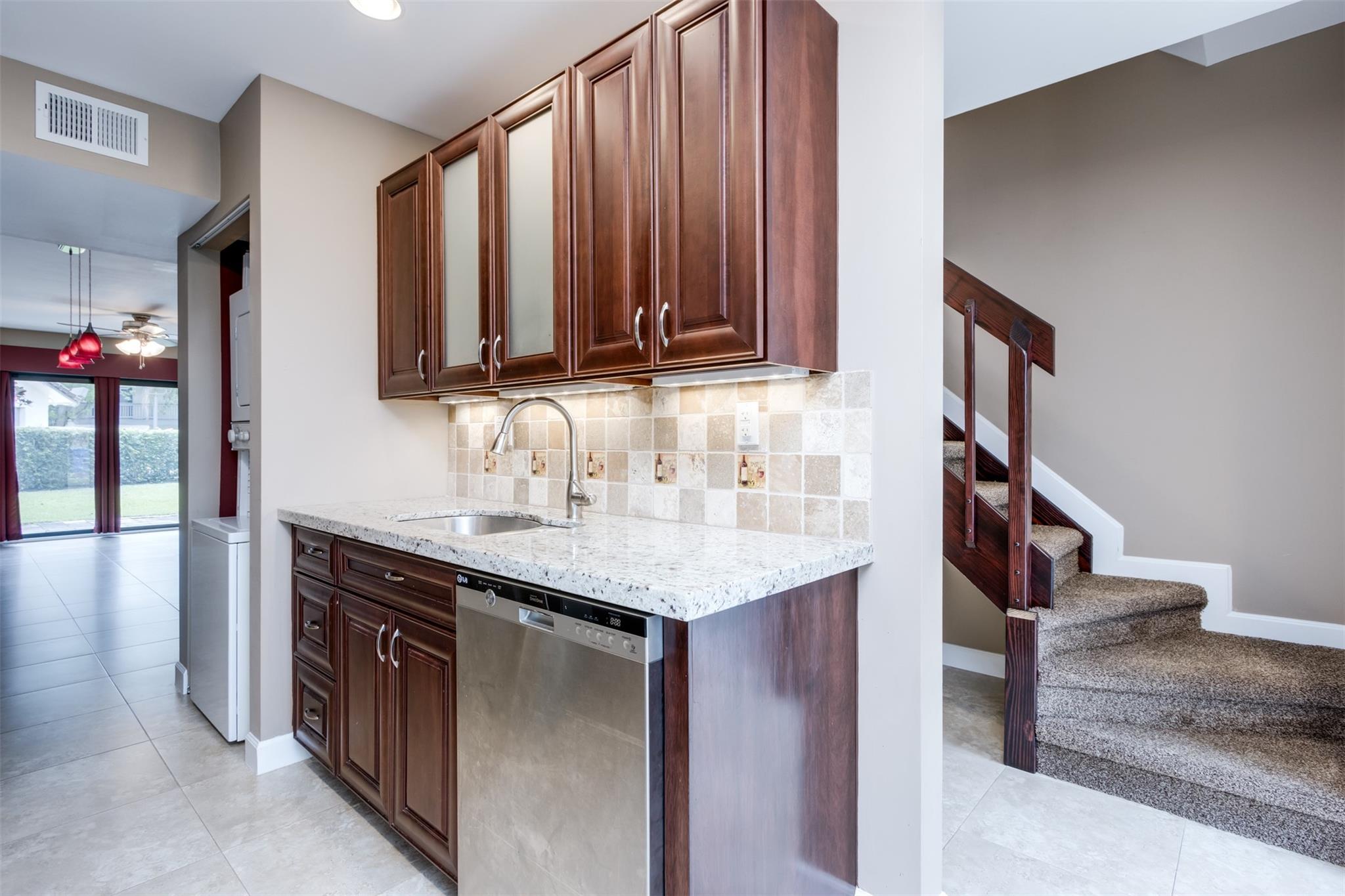 Very Strong Association. Can purchase with 3%. updated and impeccably kept condo/townhouse w/low maintenance, no assessments, and they have reserves! Walking distance to University Dr, shops, restaurants, & a 2-minute drive to Whole Foods! You can't beat this LOCATION, LOCATION. The first floor has beautiful tile throughout, & beautiful wood cabinetry in the kitchen w/granite counters, and SS appliances. Impact Hurricane windows and doors along with accordion shutters. Both bathrooms have been beautifully updated & custom cabinetry in all closets. W/D in unit. Large patio, right across from the pool area, and the garden area is lined with Magnolia trees. Very strong association. . No downpayment requirement per the association.