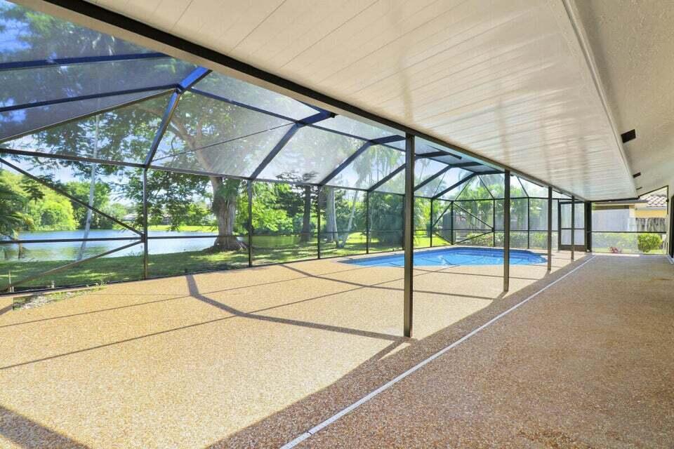 Discover this Escondido gem! .25-acre lot, 3 beds, 2 baths + den (perfect for office), stunning lake views, screened patio with custom pool, vaulted ceilings, real fireplace. Recent upgrades: recessed lighting, new fixtures, tile flooring throughout home, renovated bathrooms with new vanities, toilets, mirrors, baseboards, shelving in master walk-in closet, exterior repaint. Modern kitchen: soft-closing cabinets, stainless steel appliances, 18-inch sink with quartz backsplash, ample pantry space. New tiles around fireplace, front door, LG kitchen appliances, washer/dryer, water heater. Low HOA, A-rated schools, 3 mins from turnpike, 7 mins from I95. Close to places of worship.