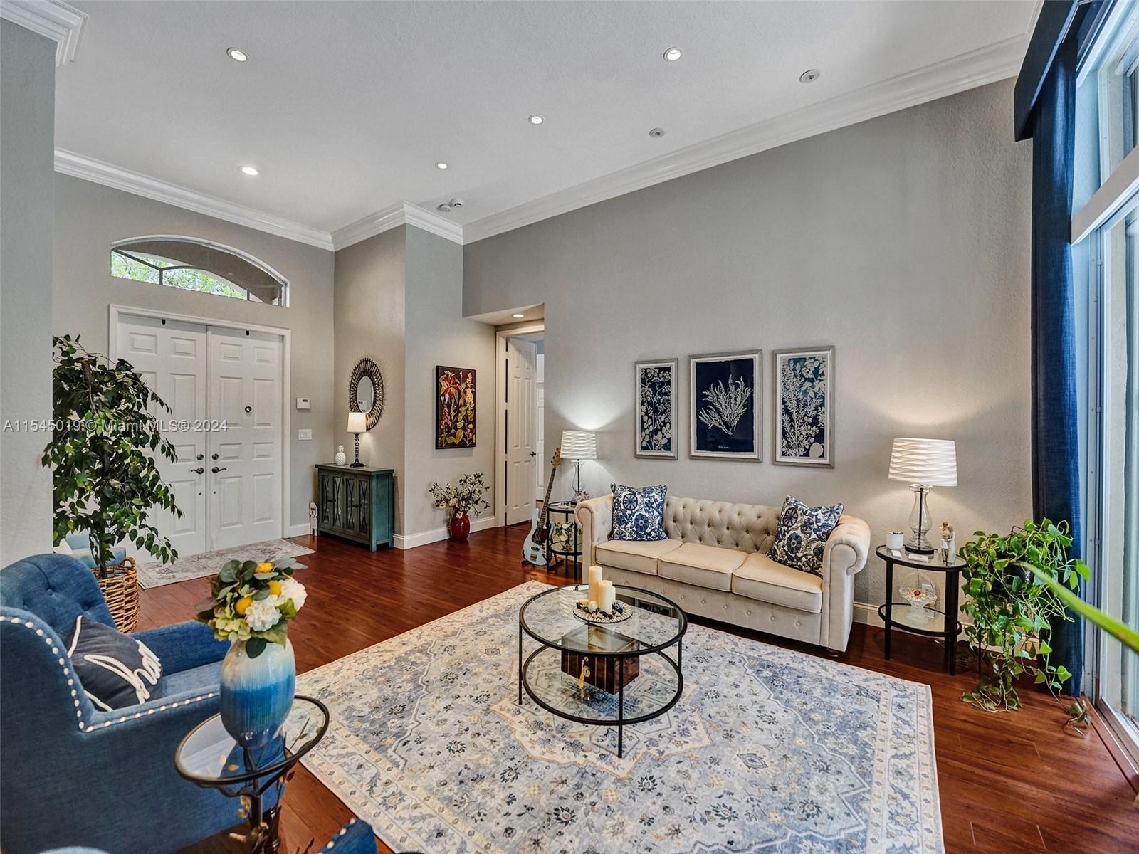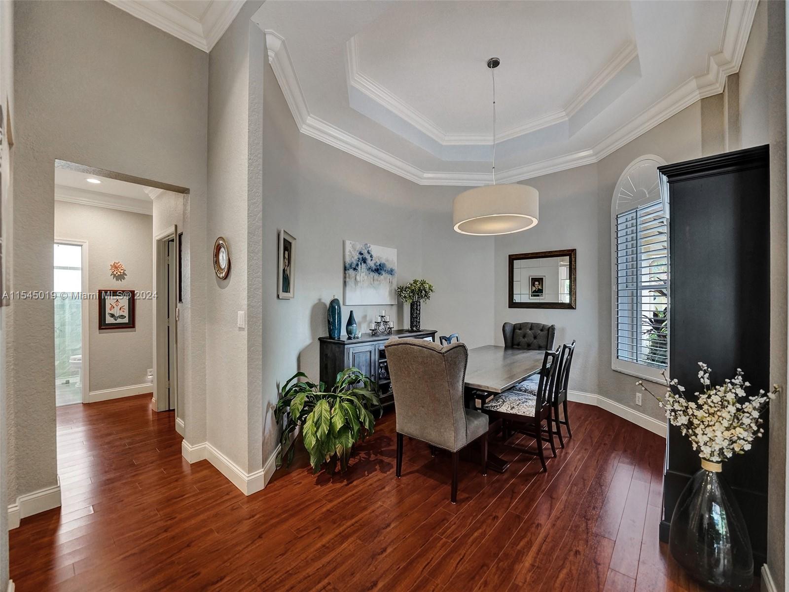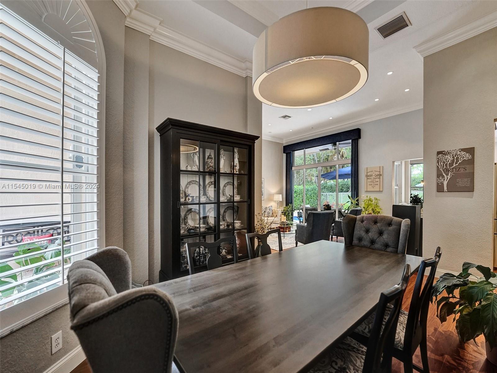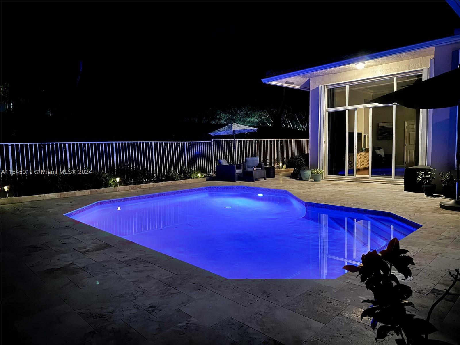 Unveil the charm of this residence in The Ridges with 4 bedrooms with custom closet cabinetry, and one bedroom is transformed into a well-designed custom office. This home includes 3 upgraded bathrooms and a primary suite bathroom with a Vessel tub and marble finishes. The contemporary kitchen has Silverstone countertops and stainless steel appliances. Lush tropical greenery that captivates curb appeal. Retreat to your private oasis in the backyard, where a travertine patio leads to a magnificently refinished Diamond Brite pool with heating and a saltwater system, all enclosed within a fully fenced yard for privacy. Situated within walking distance of the library and highly acclaimed "A" schools, this home is an exquisite find.