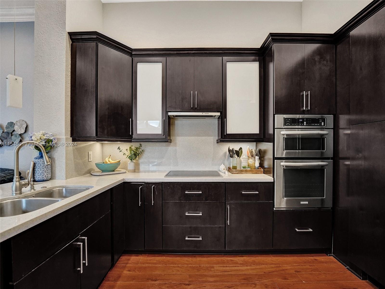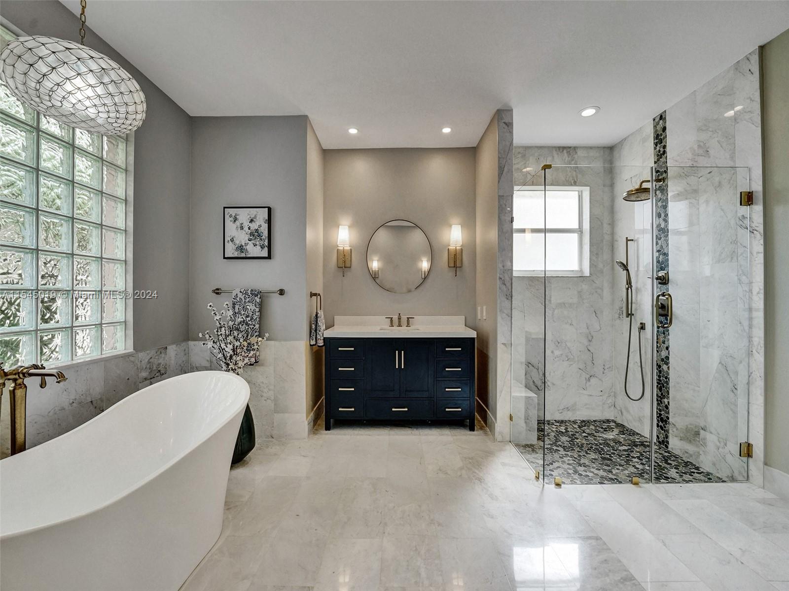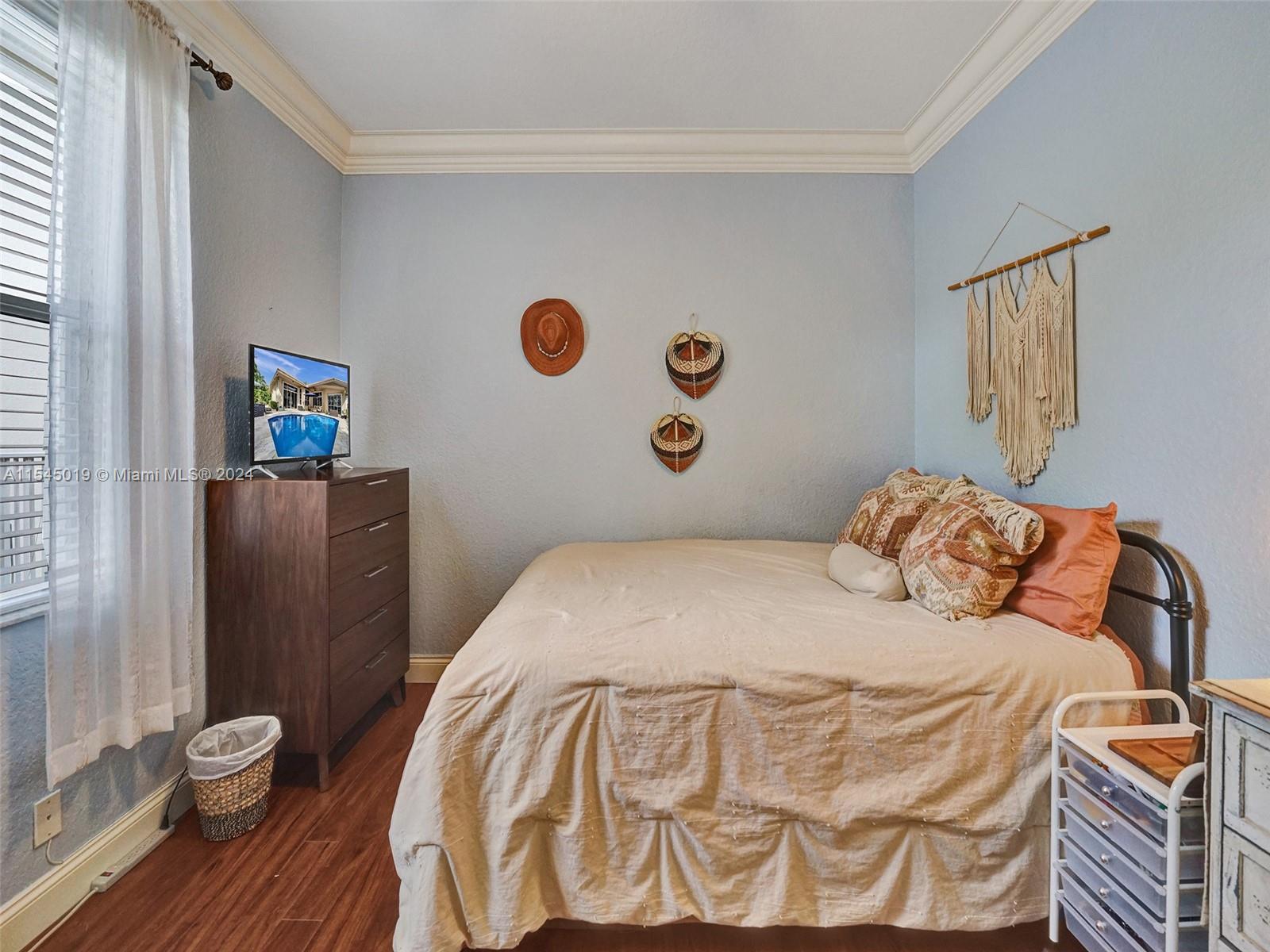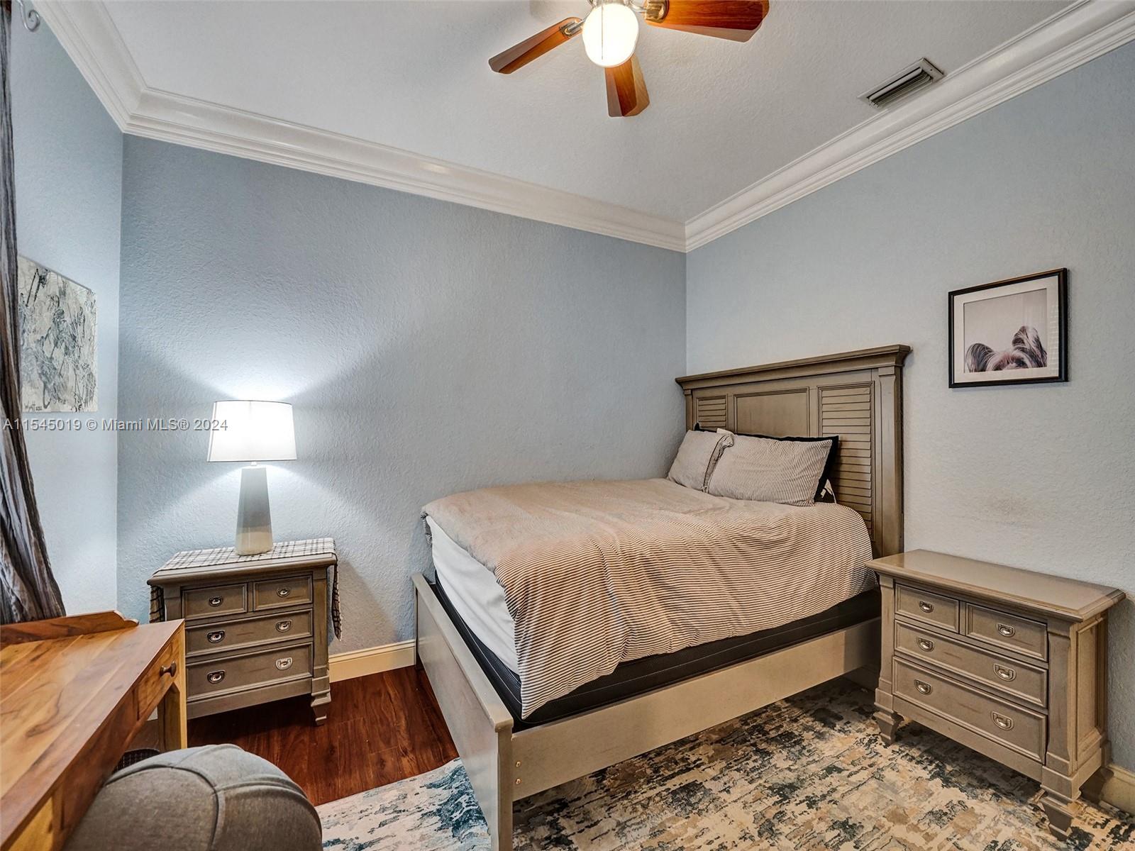 Unveil the charm of this residence in The Ridges with 4 bedrooms with custom closet cabinetry, and one bedroom is transformed into a well-designed custom office. This home includes 3 upgraded bathrooms and a primary suite bathroom with a Vessel tub and marble finishes. The contemporary kitchen has Silverstone countertops and stainless steel appliances. Lush tropical greenery that captivates curb appeal. Retreat to your private oasis in the backyard, where a travertine patio leads to a magnificently refinished Diamond Brite pool with heating and a saltwater system, all enclosed within a fully fenced yard for privacy. Situated within walking distance of the library and highly acclaimed "A" schools, this home is an exquisite find.