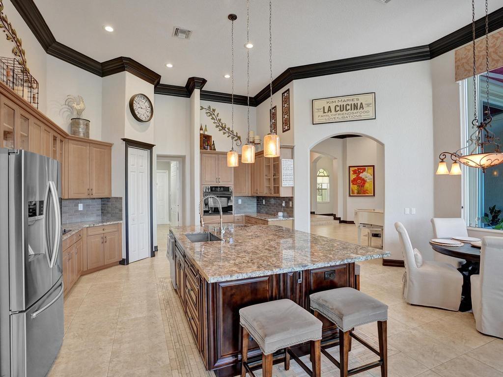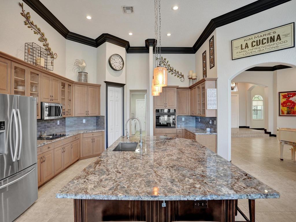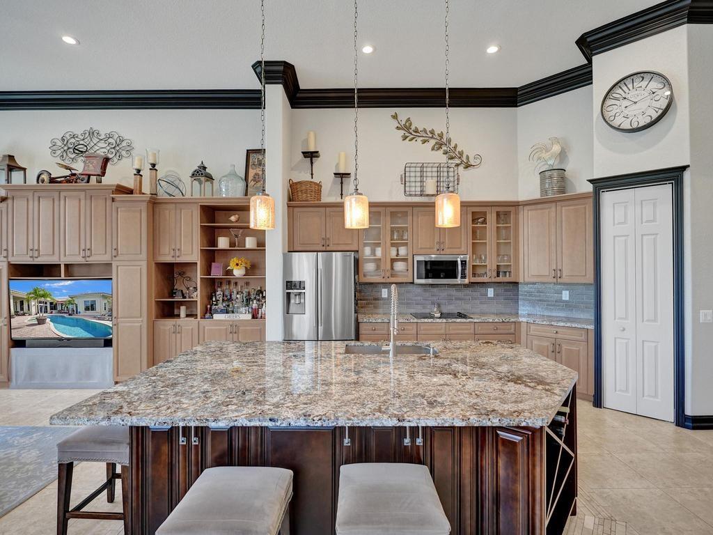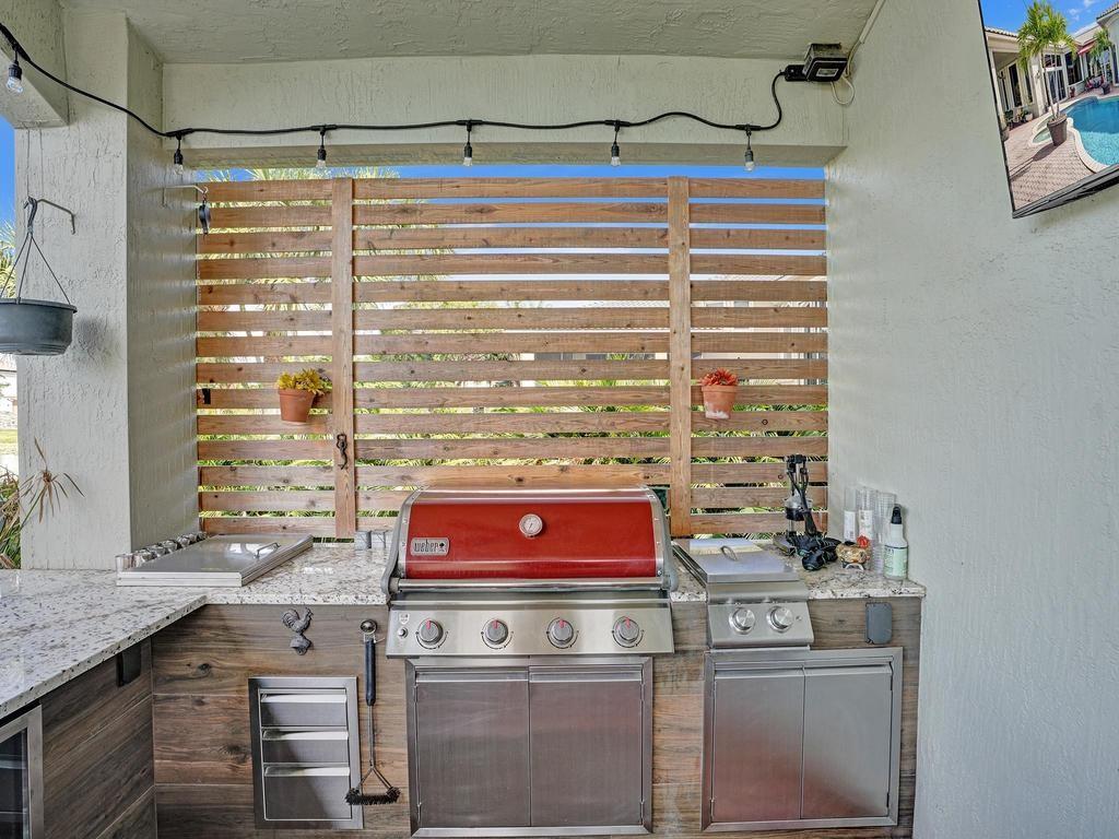 Stunning 5 Bedroom 4 Bath Waterfront Pool Home Located In Olde Brook In Heron Bay. Interior Features Include Upgraded Chef's Kitchen With Wood Cabinets And Granite Countertops. Large Entertaining Island, Wine Storage, Stainless Steel Appliances, Double Oven, Pantry. Triple Split Floor Plan With 5th Bedroom As Media Room/Man Cave With 100" Projector TV. Primary Bedroom With Sitting Area. Primary Bathroom Remodeled, Floor To Ceiling Tile, Oversize Soaking Tub, Frameless Shower. Laundry Room With Updated Wood Cabinets and Granite Countertops, Undermount Stainless Sink. Exterior Features Impact Windows And Accordion Shutters, Summer Kitchen With Seating Area, Granite Countertops, Cedar Wood Privacy Screen, New Exterior Painting, Exterior Carriage Lights. Resort Style Amenities.