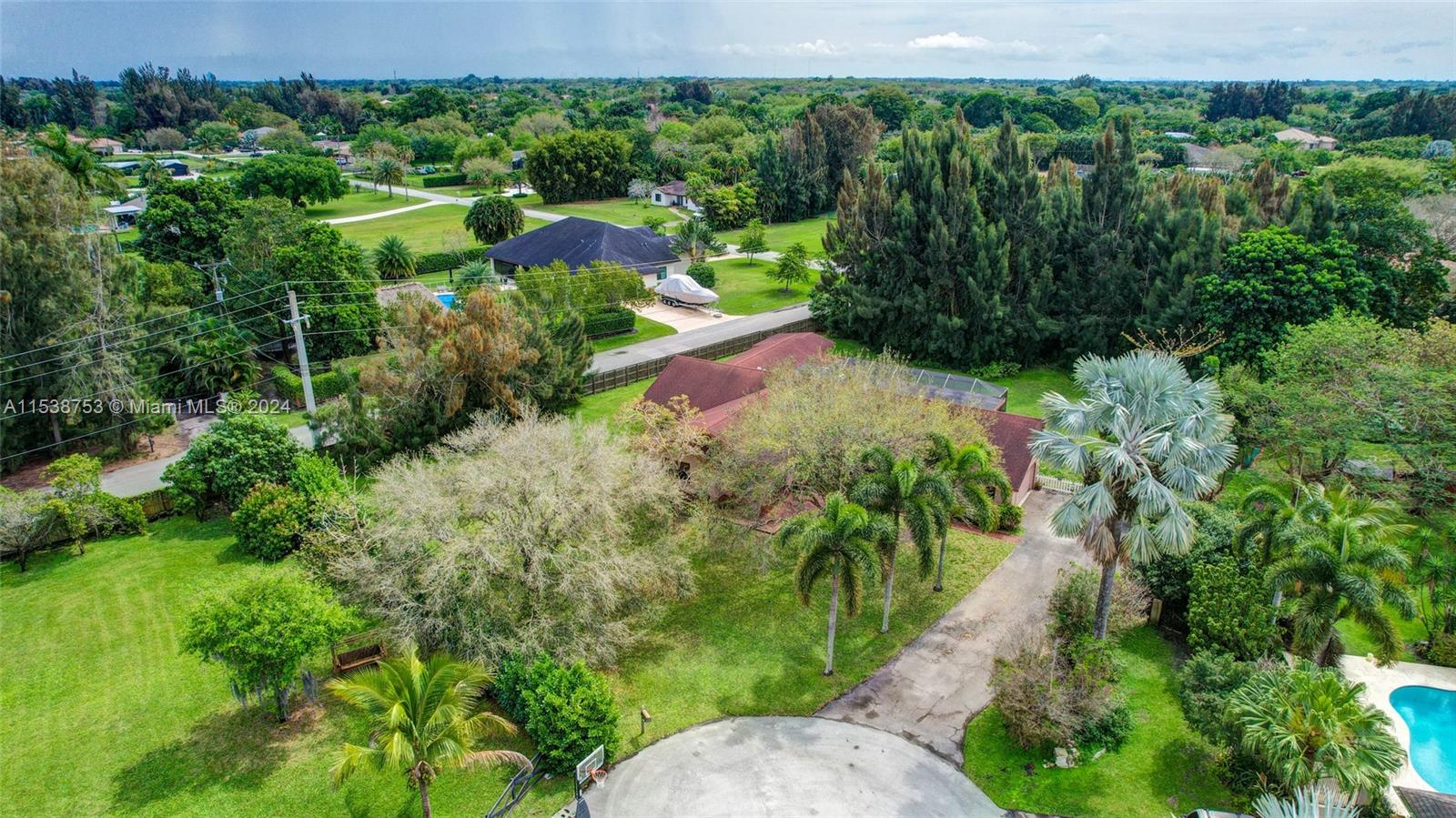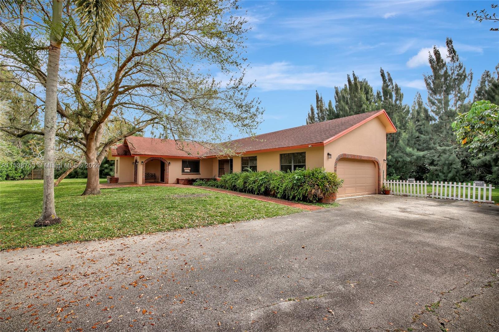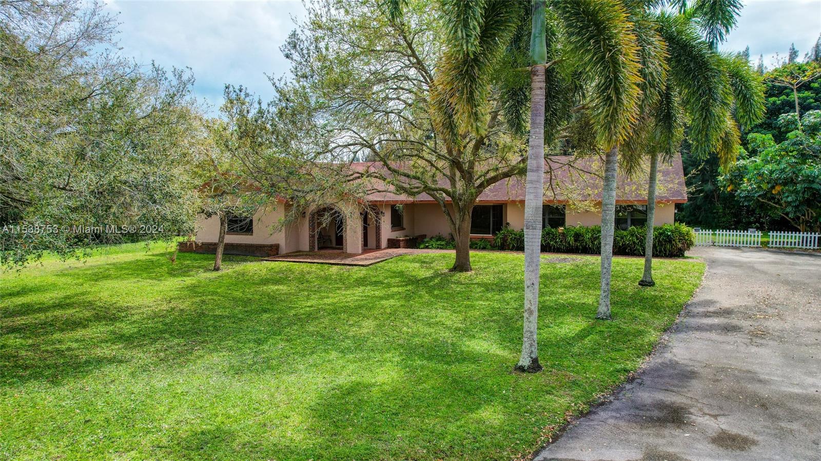 Location, location, location! Rare opportunity to own this 1.07-acre cul-d-sac property in Sequoia Estates, Davie. Featuring a 2-car garage, spacious driveway & oversized kitchen w/ serene backyard views, this well-built 5 bedroom 3.5 bathroom ranch style home w/ volume ceilings offers endless possibilities for customization. Newly completed & permitted addition boasts an en-suite bedroom, perfect guest room, in-laws suite or office space overlooking the green front yard. Great room overlooks a covered / screened patio & lush mature tree canopy, w/ no neighbors behind the home. No HOA, equestrian-friendly, horses welcome. Live your dream in this tranquil haven! Enjoy top-rated schools in one of South Florida's sought-after districts. Home may be larger than tax roll, Buyer may verify.