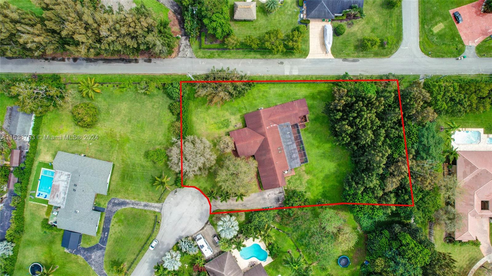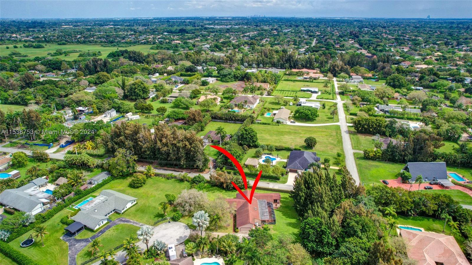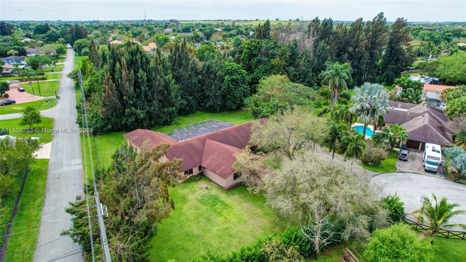 Location, location, location! Rare opportunity to own this 1.07-acre cul-d-sac property in Sequoia Estates, Davie. Featuring a 2-car garage, spacious driveway & oversized kitchen w/ serene backyard views, this well-built 5 bedroom 3.5 bathroom ranch style home w/ volume ceilings offers endless possibilities for customization. Newly completed & permitted addition boasts an en-suite bedroom, perfect guest room, in-laws suite or office space overlooking the green front yard. Great room overlooks a covered / screened patio & lush mature tree canopy, w/ no neighbors behind the home. No HOA, equestrian-friendly, horses welcome. Live your dream in this tranquil haven! Enjoy top-rated schools in one of South Florida's sought-after districts. Home may be larger than tax roll, Buyer may verify.
