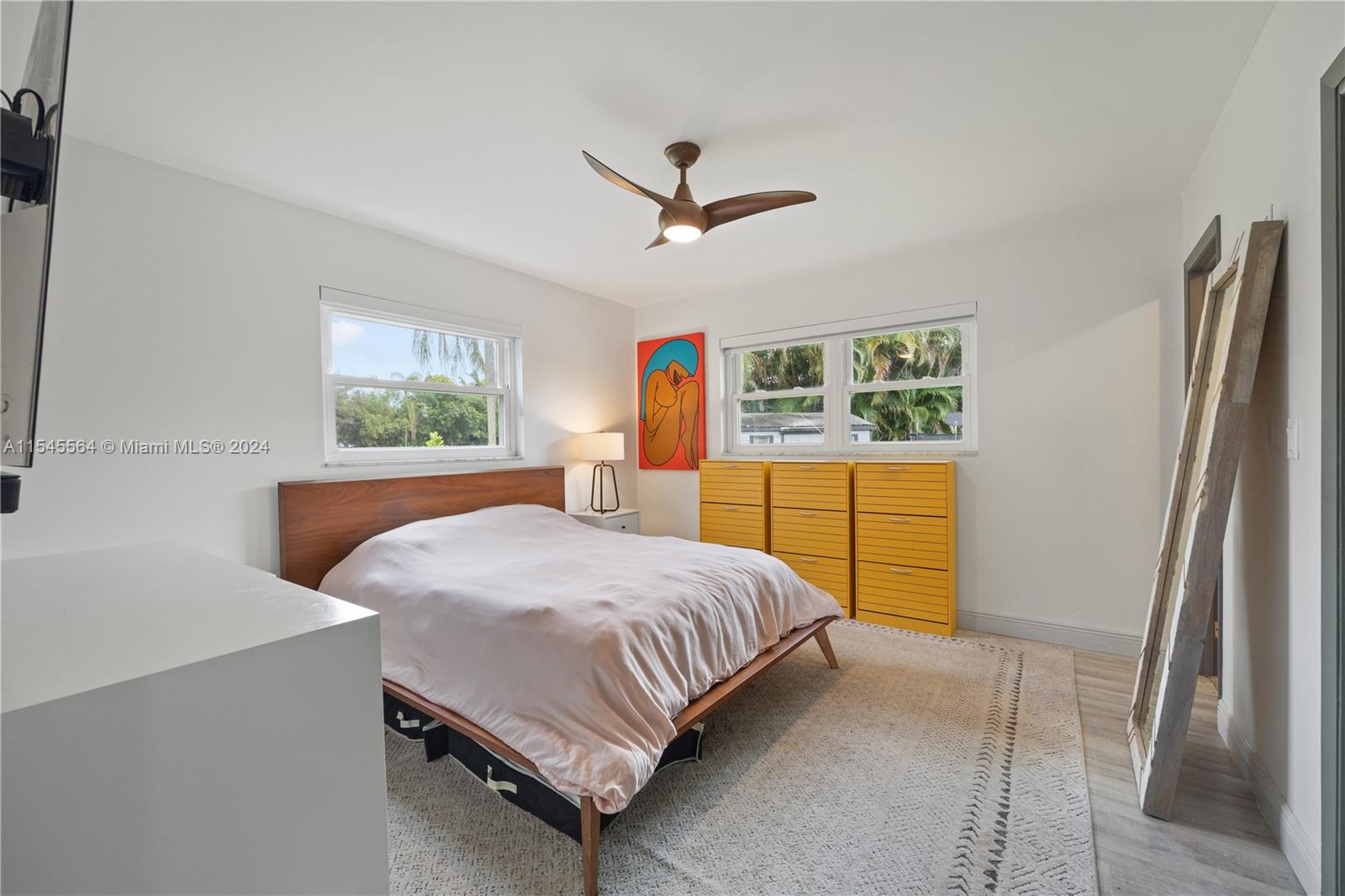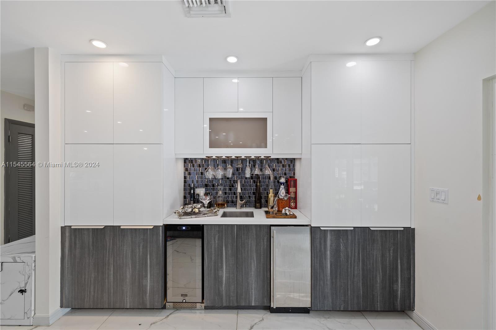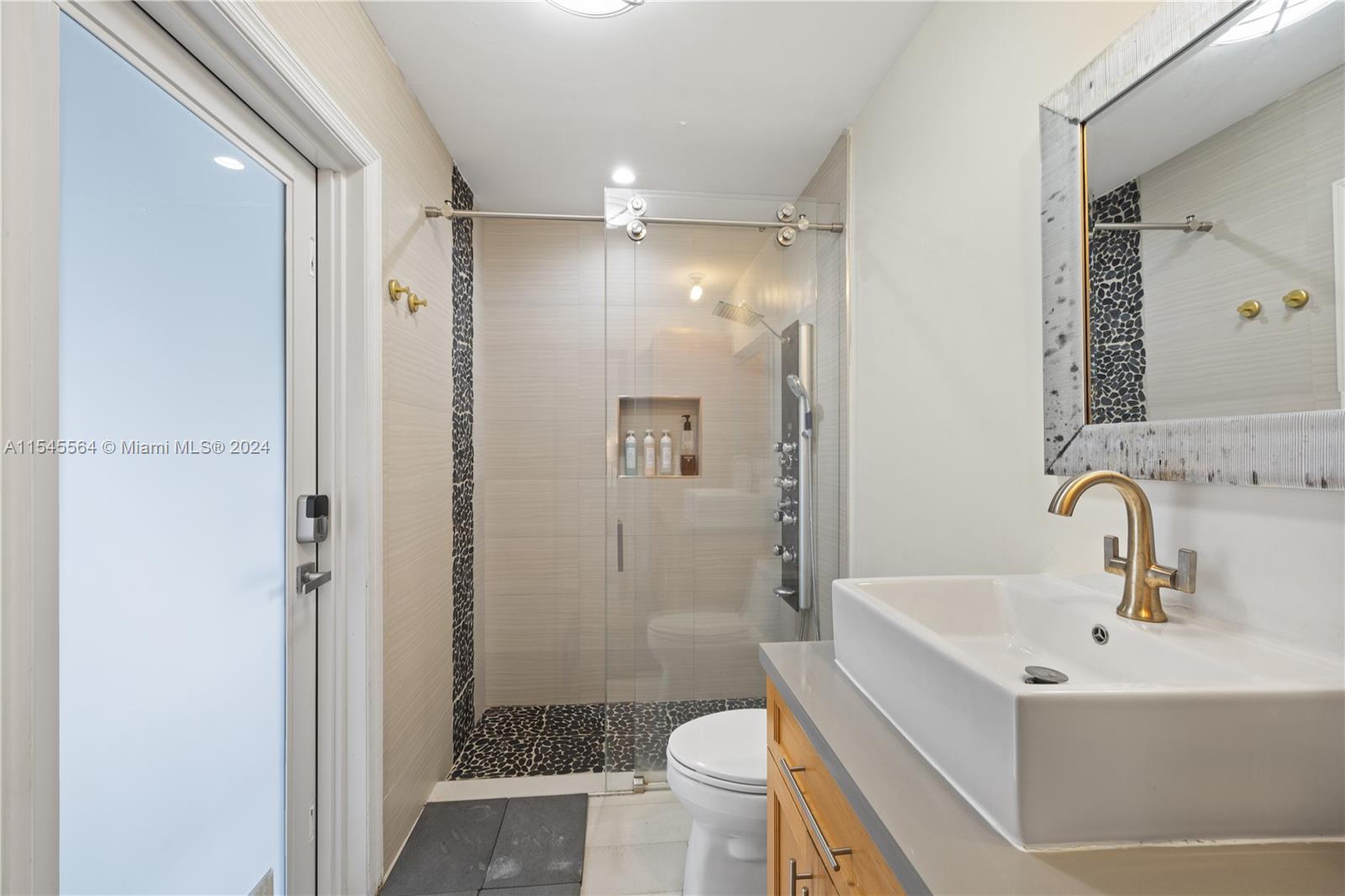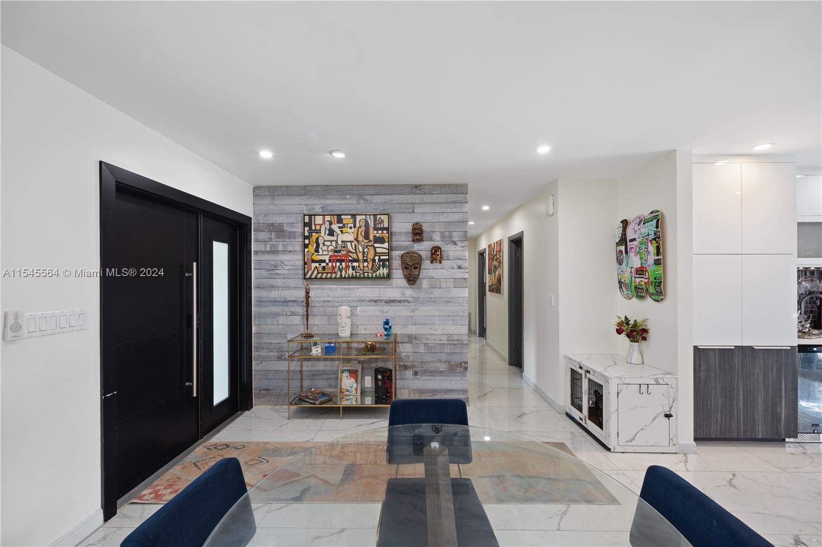 Welcome to your dream oasis! Beautifully remodeled 3/2 ranch-style home sits on an expansive, almost 30,000 sq ft lot! The kitchen features top-of-the-line Bosch appliances, ice maker and wine bar, perfect for entertaining. Plans are included to expand the master/living area for added space. All windows, doors, and garage are hurricane-rated. Home boasts a guest house with a bathroom/shower, complete with new tile floors. picturesque lakefront views and a 20 X 40 saltwater pool surrounded by travertine pool deck. The outdoor BBQ area features built-in appliances, including a KamadoJoe smoker, ideal for outdoor gatherings. Additional amenities include an outdoor shower, fire pit area, and shed. With updates like a 2018 roof, 2019 A/C, and a water heater from 2022.