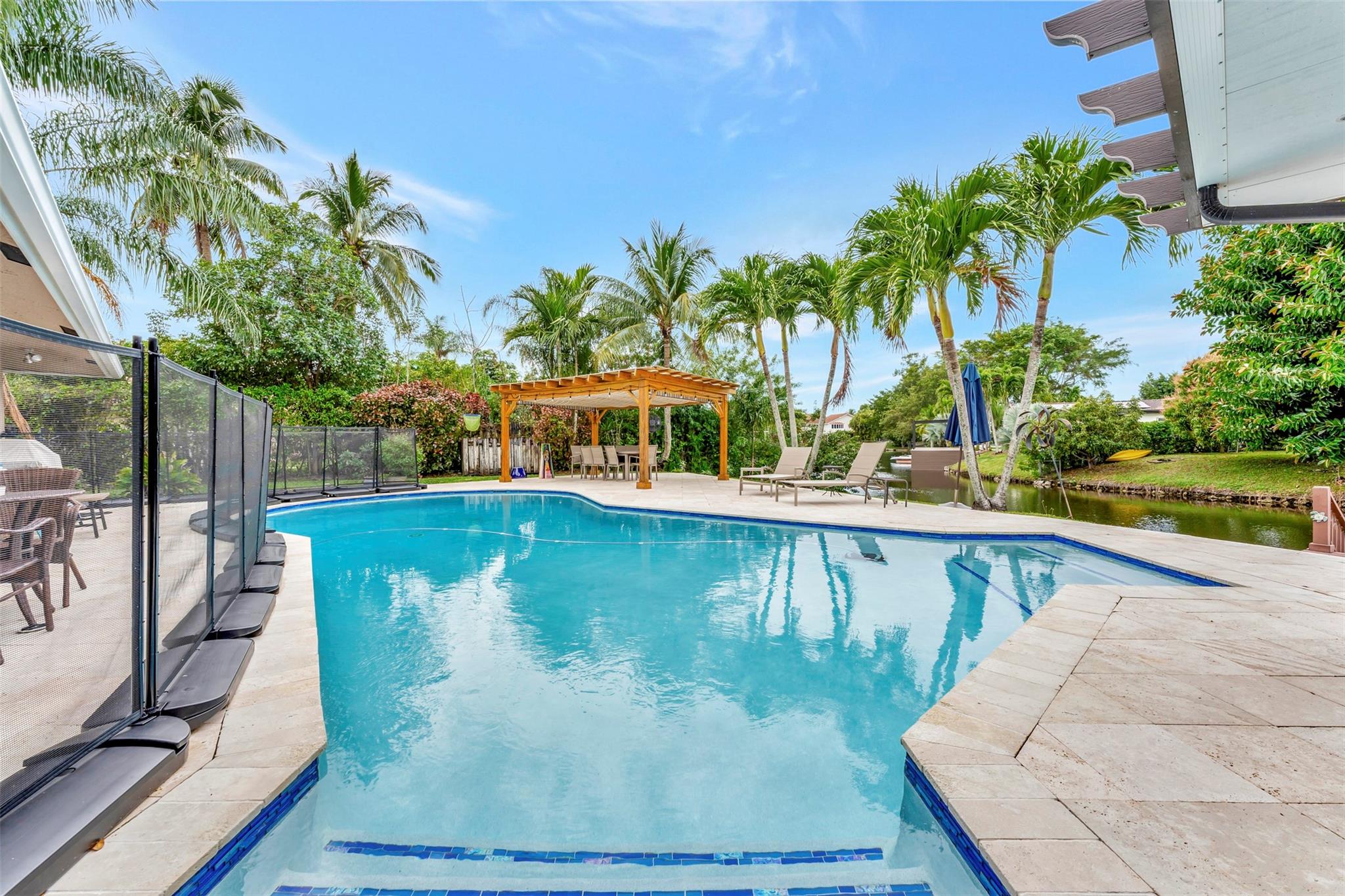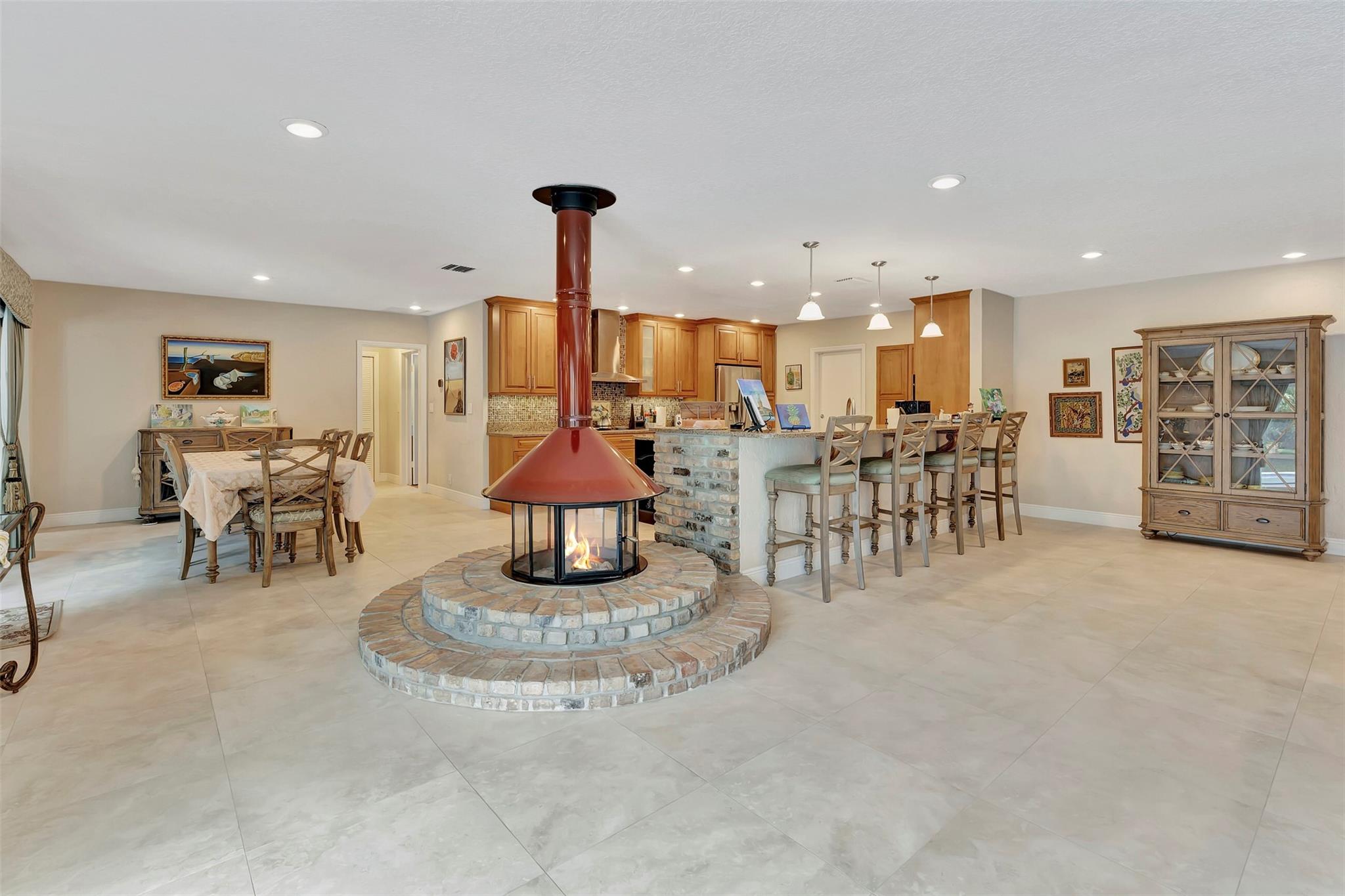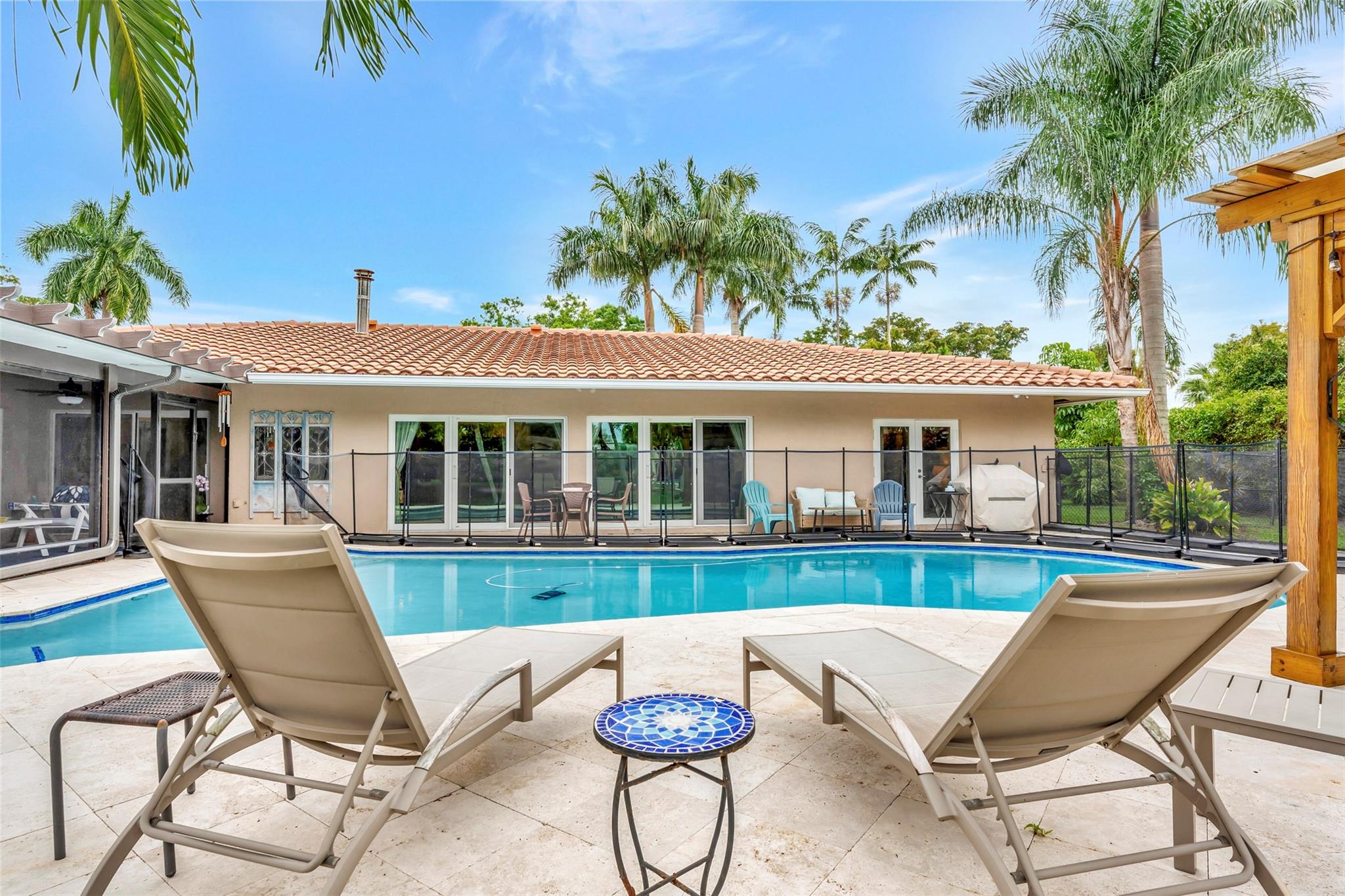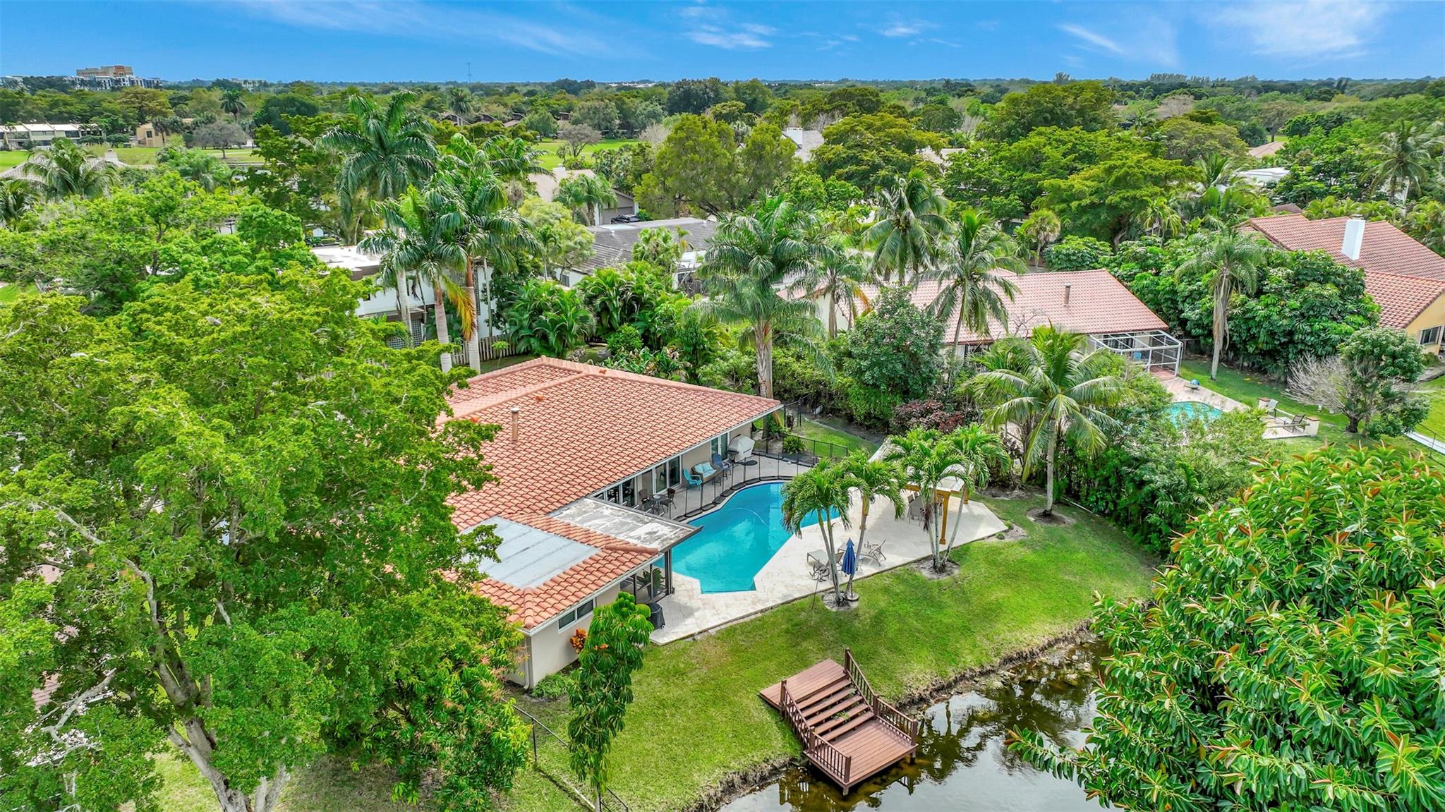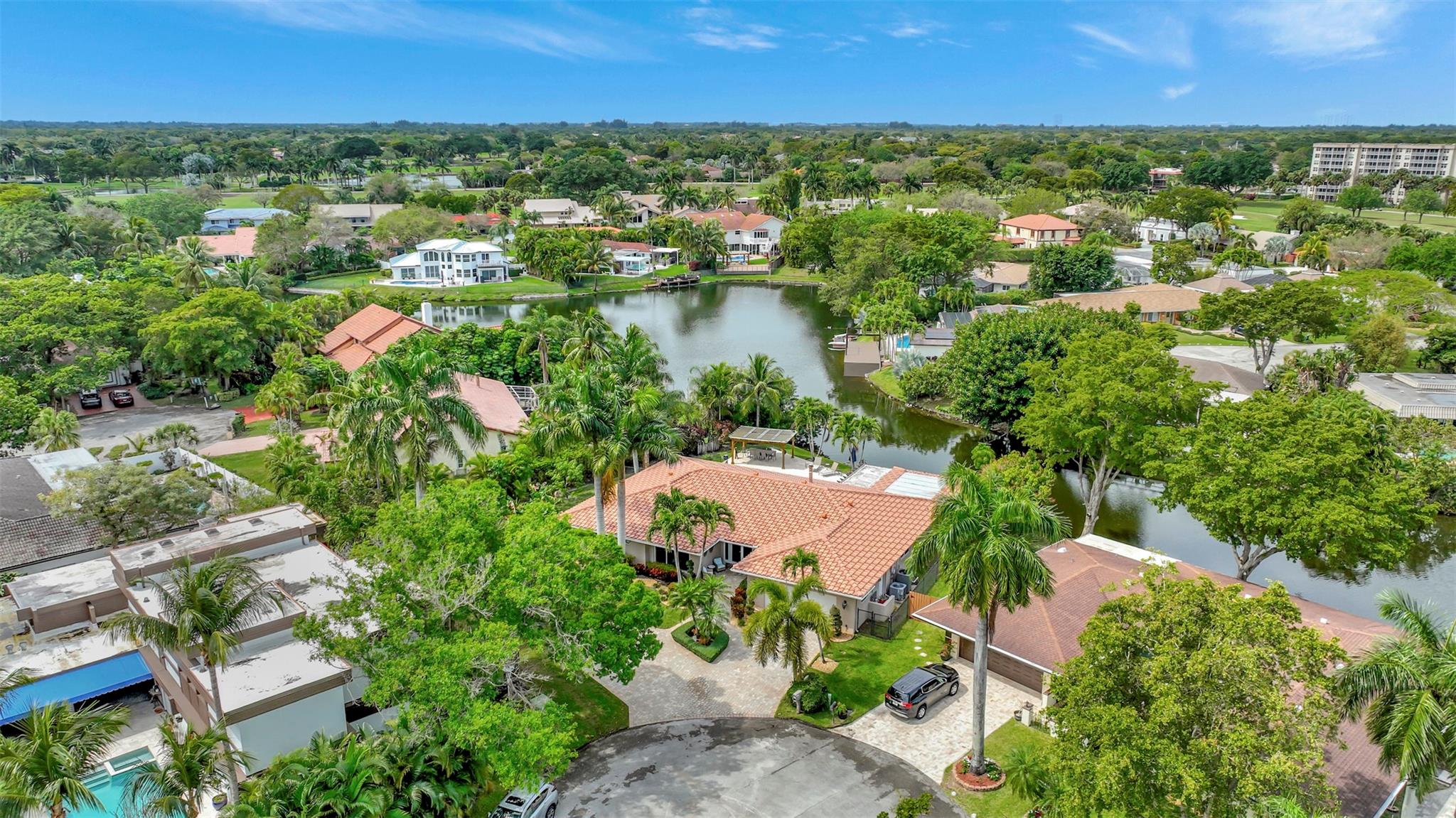 THIS ONE WILL IMPRESS! 5/3 single family home in Jacaranda Country Club. Spacious home on a quiet cul de sac with a water front oversized lot & 2 paved driveways. Large remodeled kitchen with custom wood cabinets, center island with Kitchen Aid & Bosch appliances, including double ovens for added convenience. . Enjoy the wood burning fireplace on chilly winter evenings and open concept ideal for entertaining with a split floorplan for privacy. Bathrooms have all been remodeled Motorized Hunter shades in great room. You will love floating in the fully remodeled salt water pool with a view of the serene water, the travertine deck, custom Pergola and screened in patio for those relaxing evenings. Close to shopping, restaurants and airport. ROOF 2013, AC's 2021 and 2023, IMPACT THROUGHOUT.