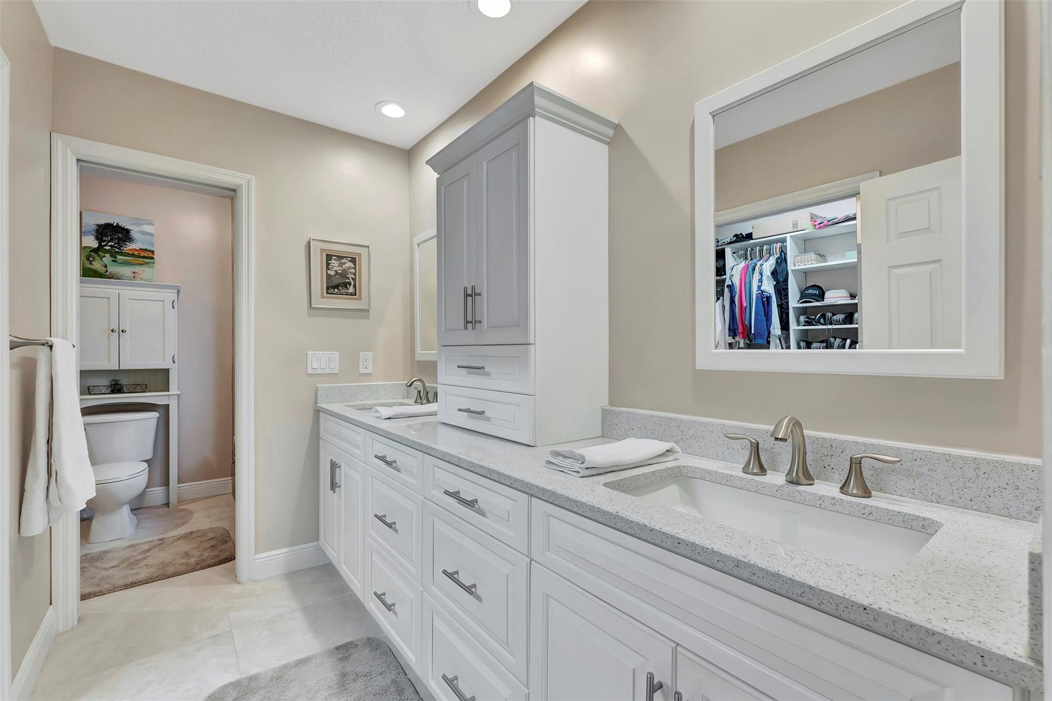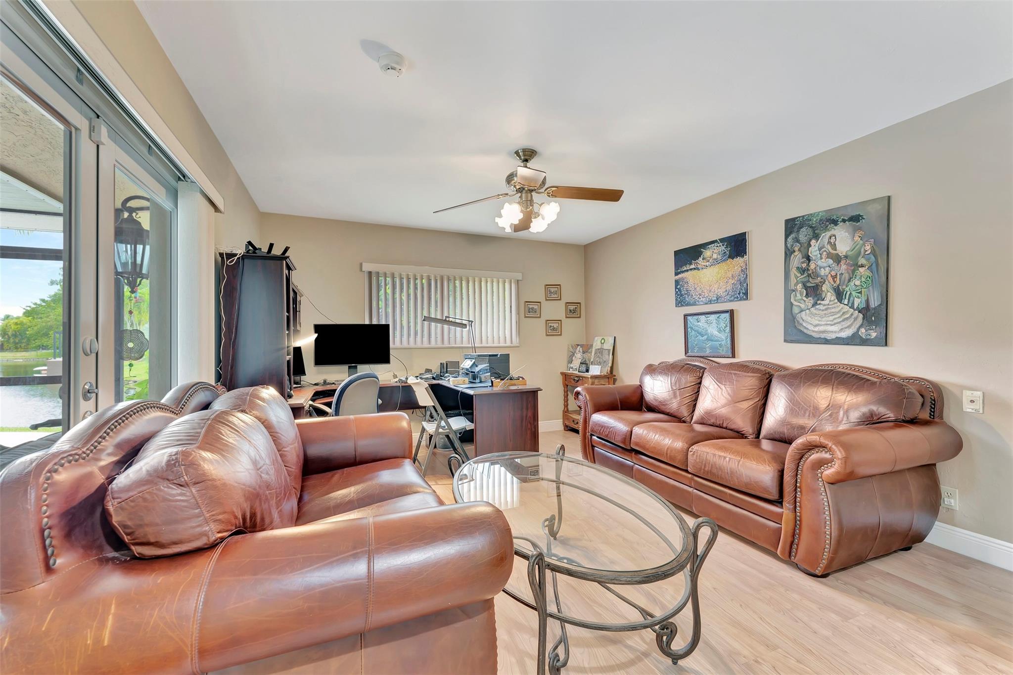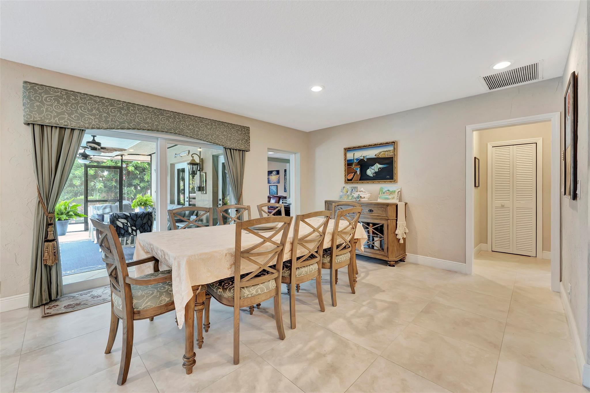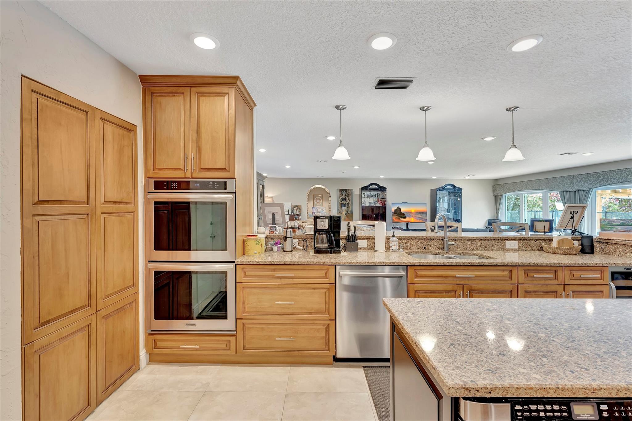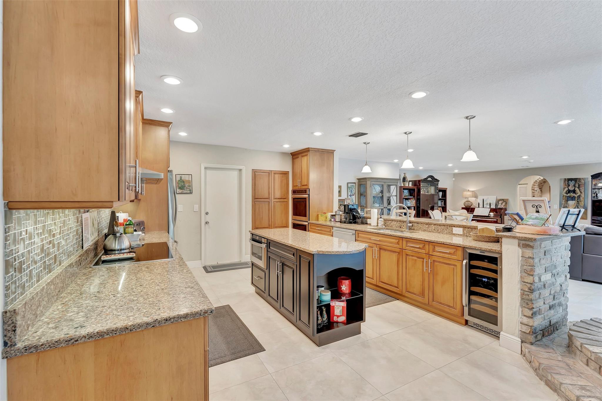 THIS ONE WILL IMPRESS! 5/3 single family home in Jacaranda Country Club. Spacious home on a quiet cul de sac with a water front oversized lot & 2 paved driveways. Large remodeled kitchen with custom wood cabinets, center island with Kitchen Aid & Bosch appliances, including double ovens for added convenience. . Enjoy the wood burning fireplace on chilly winter evenings and open concept ideal for entertaining with a split floorplan for privacy. Bathrooms have all been remodeled Motorized Hunter shades in great room. You will love floating in the fully remodeled salt water pool with a view of the serene water, the travertine deck, custom Pergola and screened in patio for those relaxing evenings. Close to shopping, restaurants and airport. ROOF 2013, AC's 2021 and 2023, IMPACT THROUGHOUT.