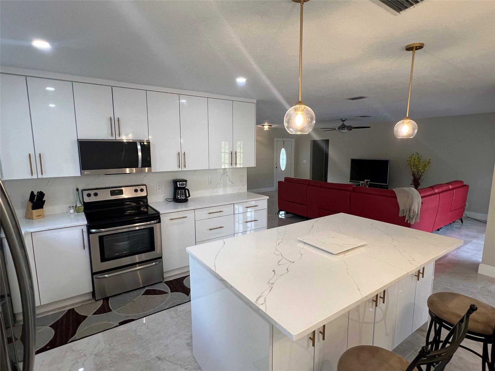 Fantastic home situated on a large pie shaped lot, tucked away on a quiet cul-de-sac street. This beautiful home has many recent upgrades that include, a brand new 2024 barrel tile roof, New kitchen with a large island, quartz counter-tops and stainless steel appliances. New LED lighting. All new tile flooring through-out. Both bathrooms just renovated with new tile, frameless shower doors and new vanities. New Diamond-Bright pool surface, new pool pump. New irrigation lines and sprinkler heads. Fully fence yard. New garage door opener. Accordion storm shutters. No HOA! Shops, restaurants, hospital, houses of worship and expressway all close by. Don't miss your opportunity to own this great property. Schedule your private showing today!