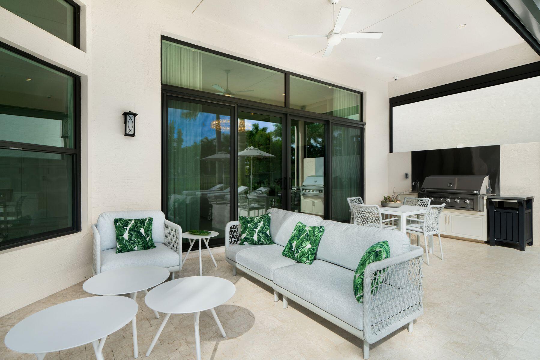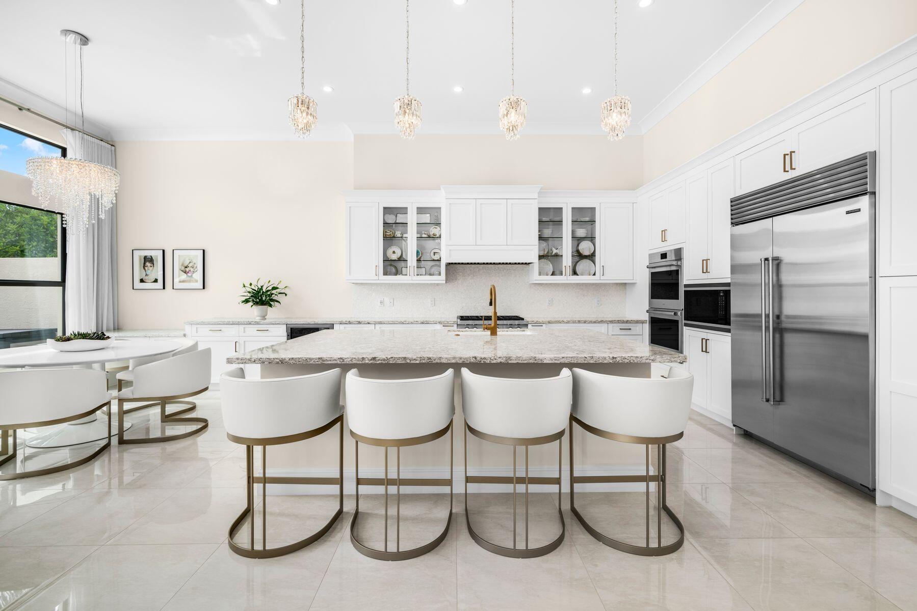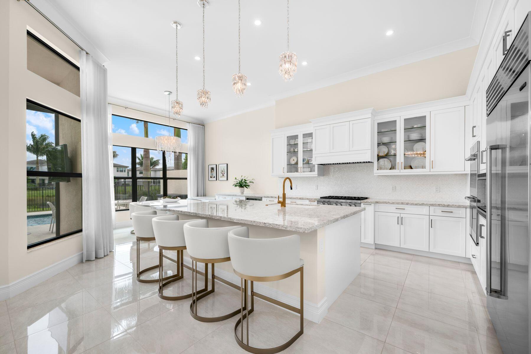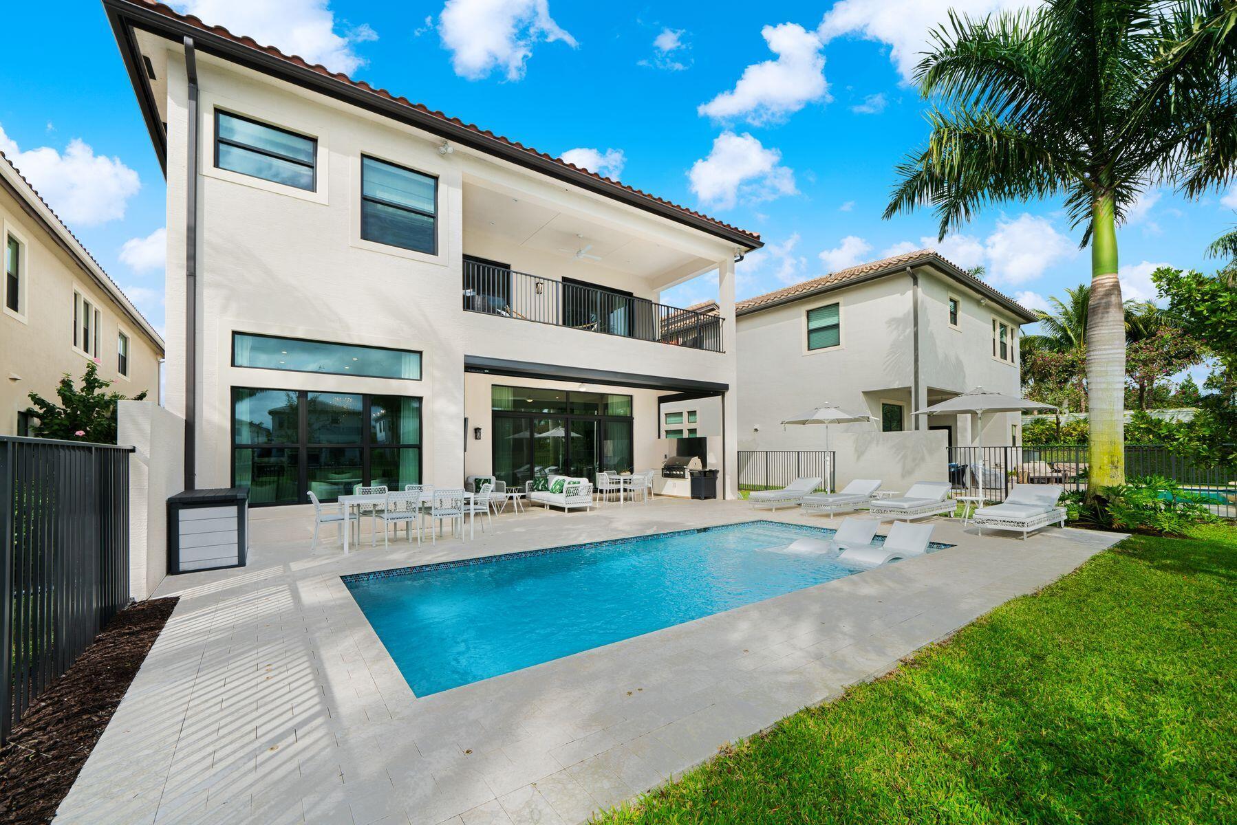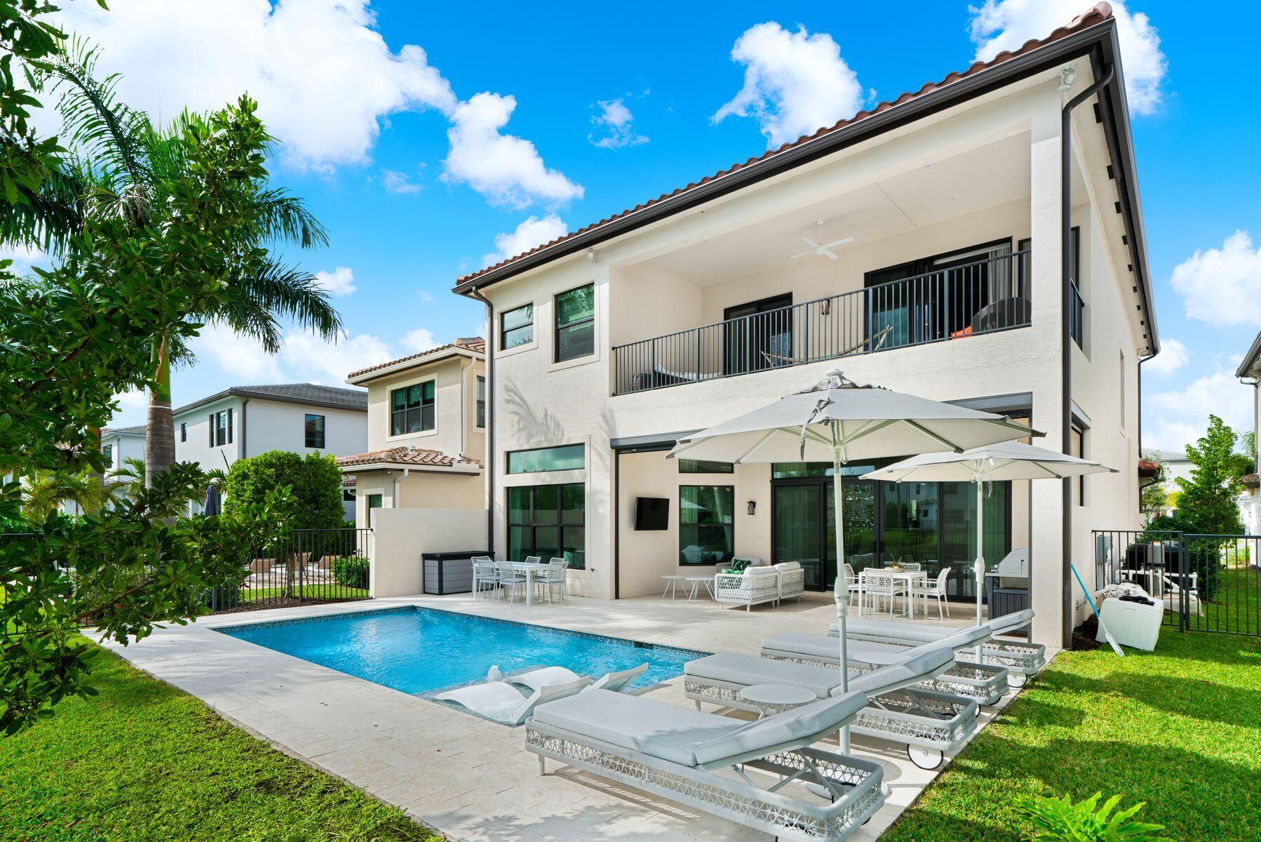Nestled in the prestigious community of Boca Bridges, this designer-decorated and highly upgraded Florence model presents an unparalleled blend of luxury and comfort. Boasting timeless architecture and meticulous craftsmanship, this home features five bedrooms and five full bathrooms. The open-concept layout seamlessly integrates the living, dining, and kitchen areas, ideal for entertaining guests or enjoying family gatherings. A chef's kitchen with top-of-the-line appliances and custom cabinetry awaits culinary enthusiasts. Retreat to the lavish master suite offering his and her closets and bathrooms. Adding to the extensive list of amenities, this home is equipped with a full home generator and impact screens. The backyard is perfect for outdoor living, showcasing an upgraded pool with