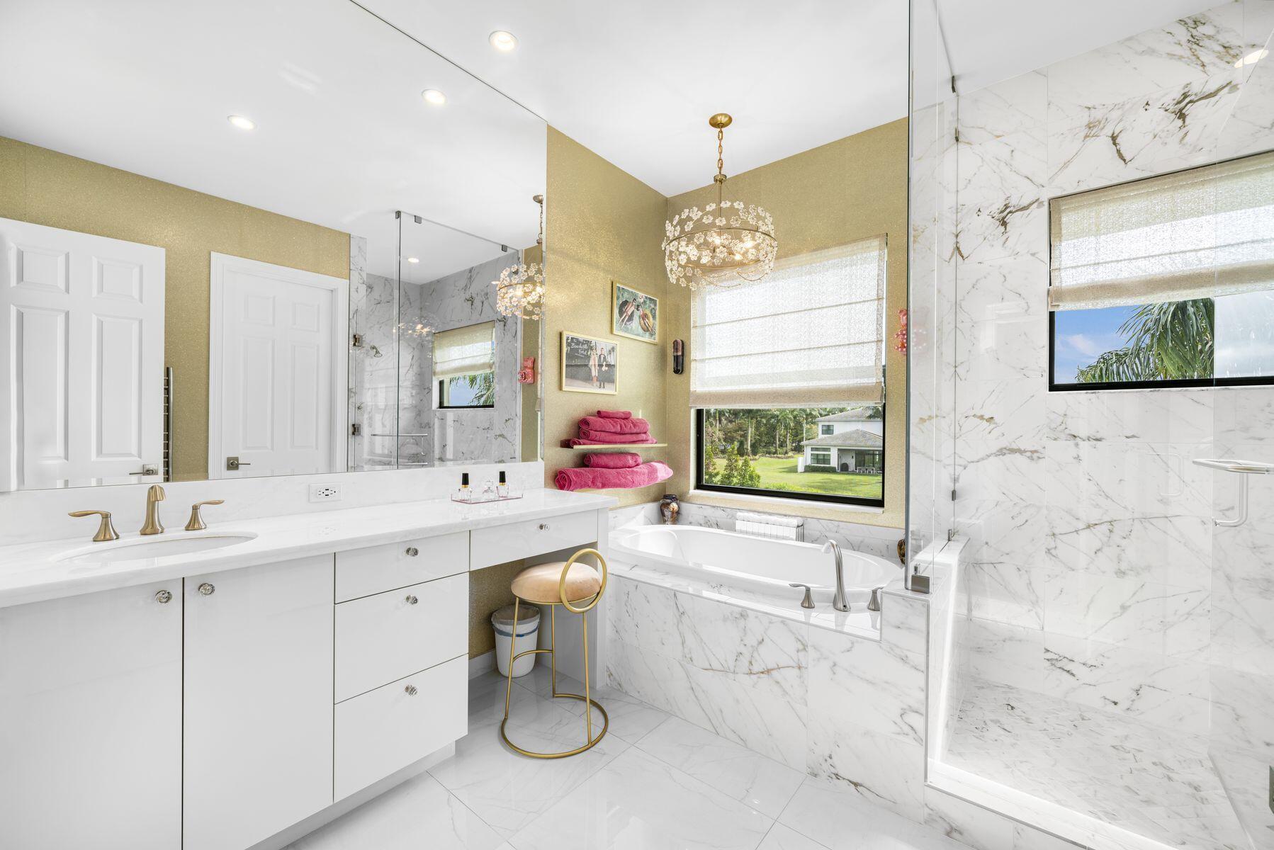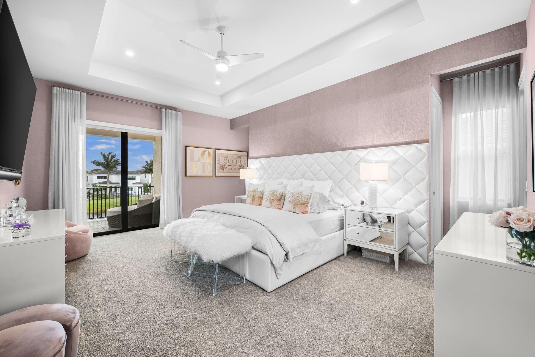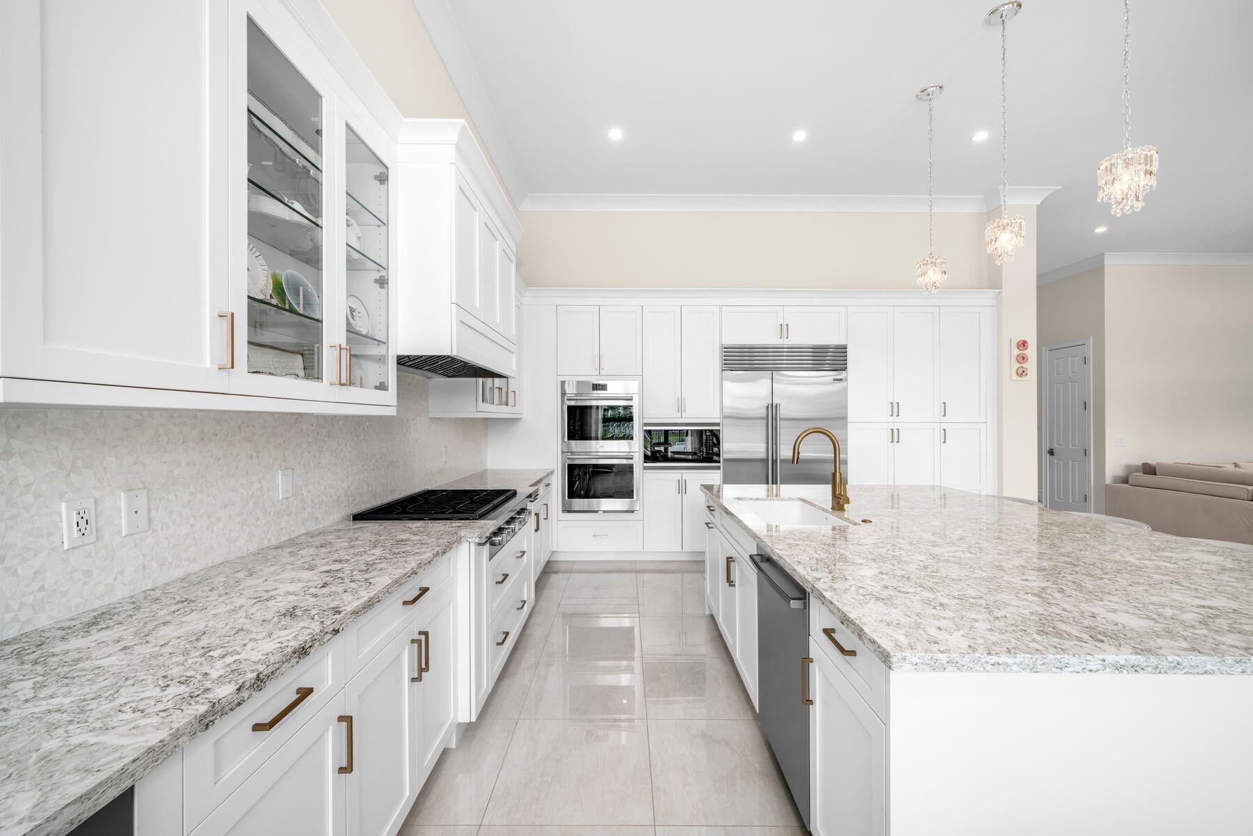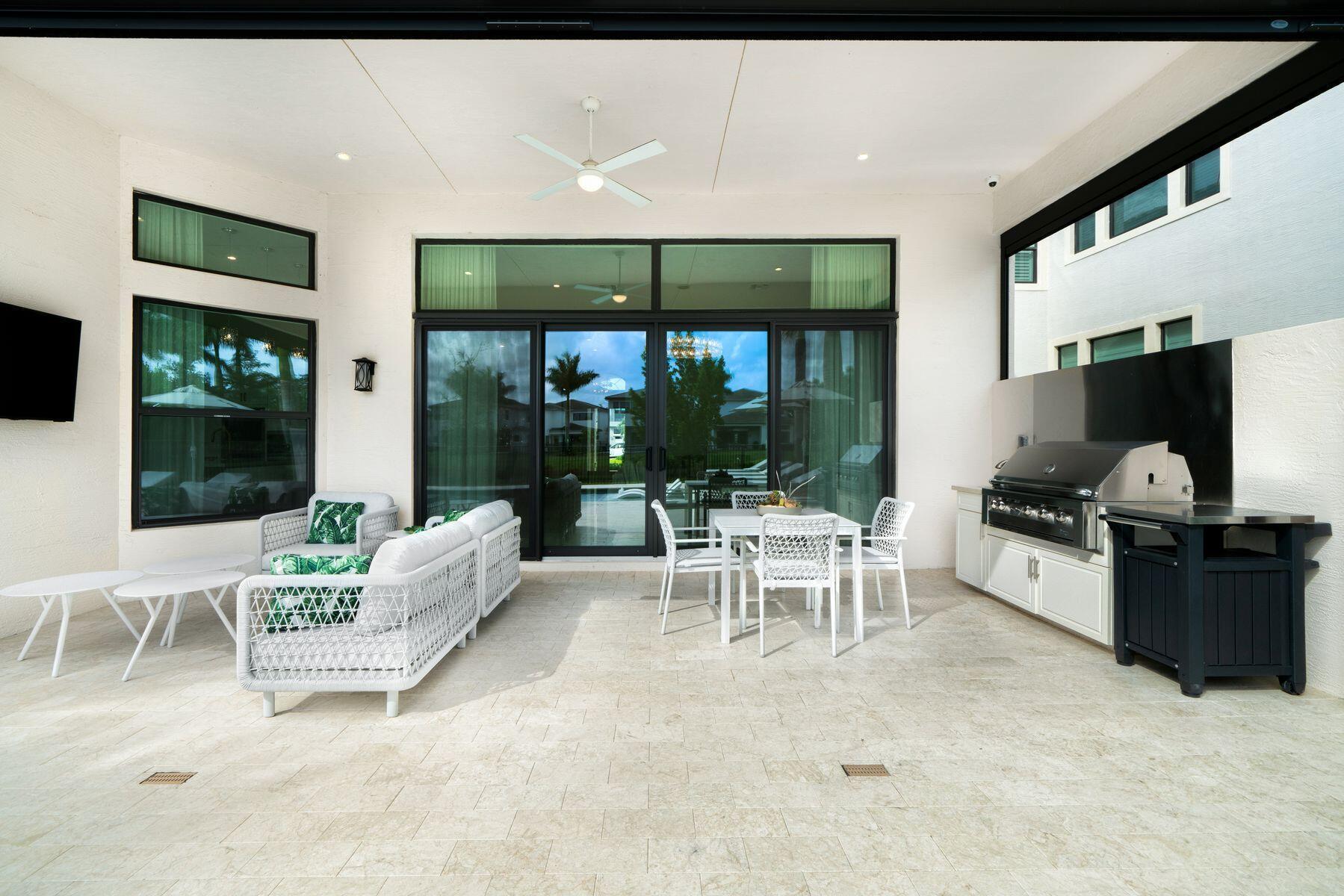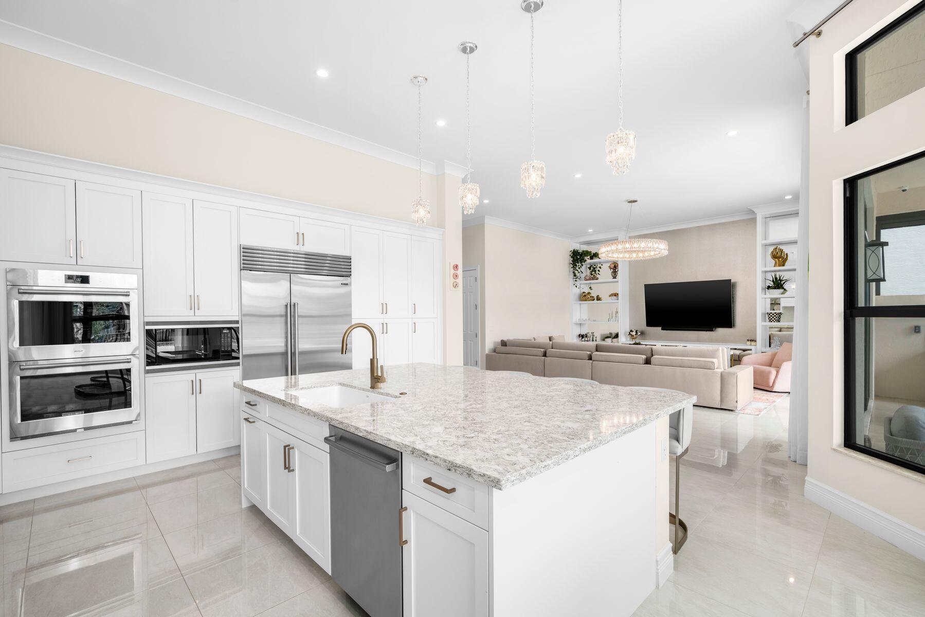 Nestled in the prestigious community of Boca Bridges, this designer-decorated and highly upgraded Florence model presents an unparalleled blend of luxury and comfort. Boasting timeless architecture and meticulous craftsmanship, this home features five bedrooms and five full bathrooms. The open-concept layout seamlessly integrates the living, dining, and kitchen areas, ideal for entertaining guests or enjoying family gatherings. A chef's kitchen with top-of-the-line appliances and custom cabinetry awaits culinary enthusiasts. Retreat to the lavish master suite offering his and her closets and bathrooms. Adding to the extensive list of amenities, this home is equipped with a full home generator and impact screens. The backyard is perfect for outdoor living, showcasing an upgraded pool with