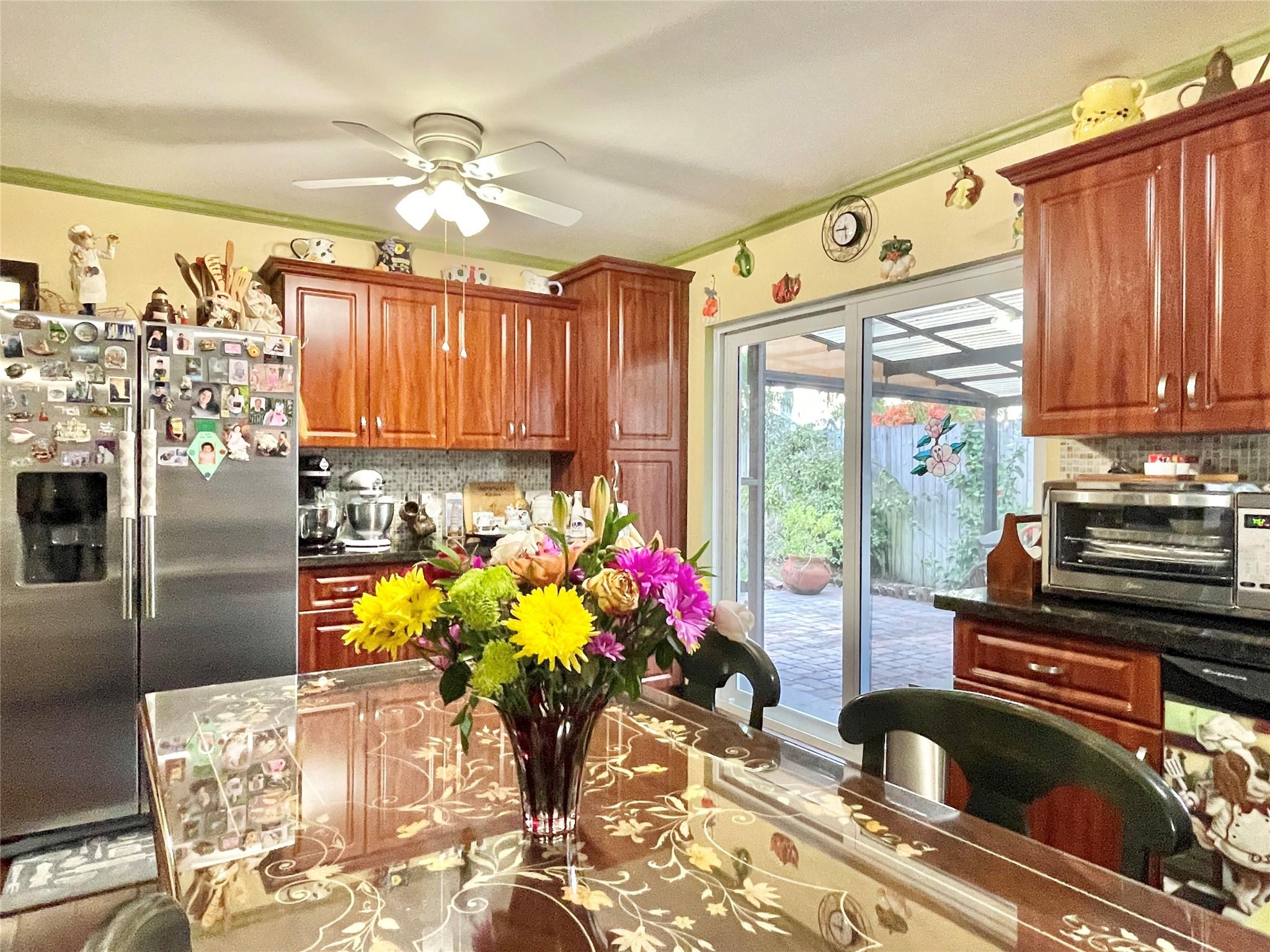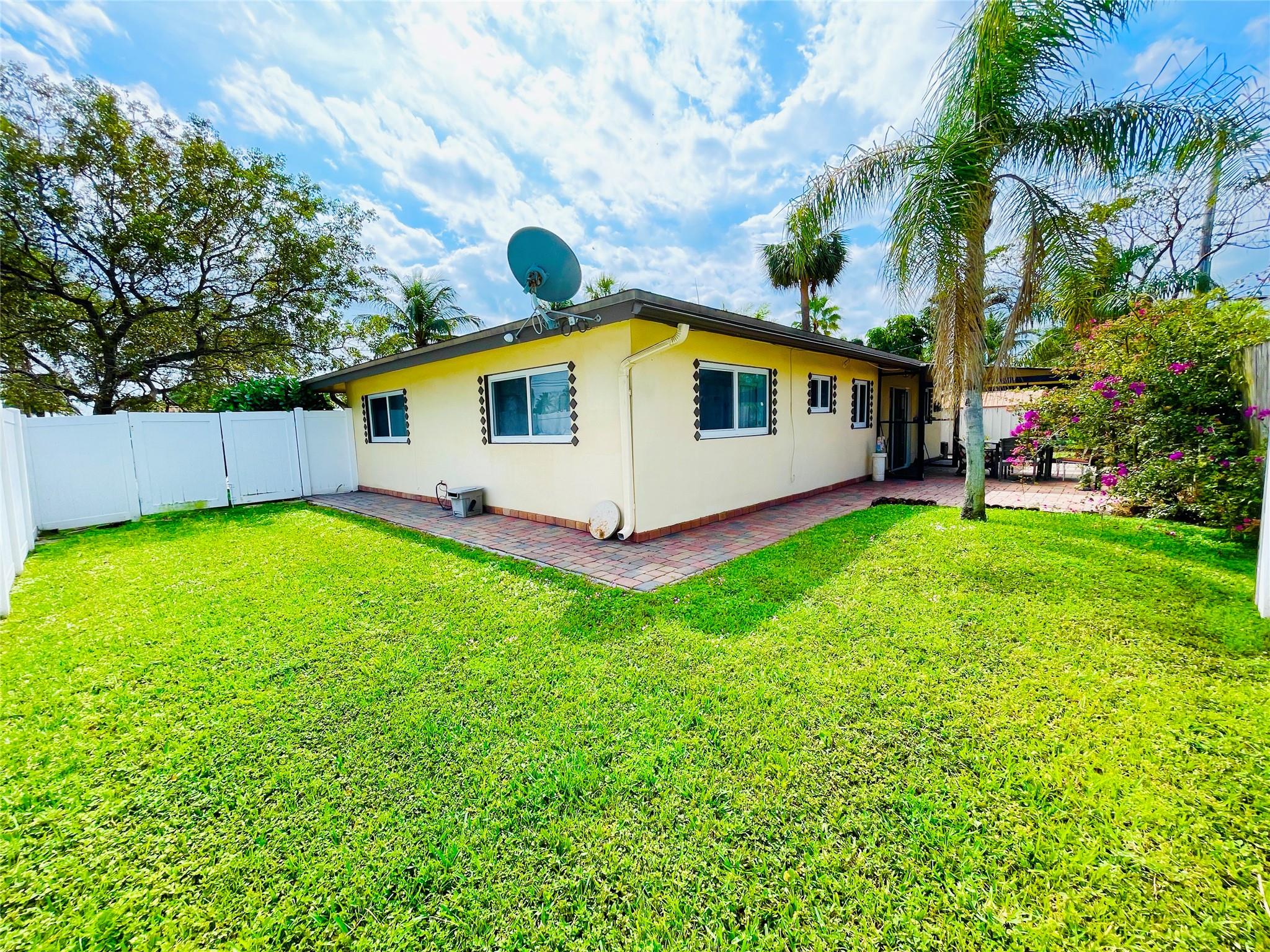 Welcome to this beautifully updated 2-bed/2-bath single-family home sitting on a corner lot. Featuring high-impact windows & doors, this home offers style. The dark brown wood kitchen cabinets complement the marble countertops, creating a sophisticated look. Inside, you'll find laminate floors throughout the house, adding warmth & charm to the living spaces. Both bathrooms have been updated & feature showers for your convenience. The covered back patio & totally fenced-in yard provide privacy. There is room for a pool $ a spacious shed for extra storage. The 1-car garage & circular driveway offer parking for many cars. Located in a great neighborhood, this home is just around the corner from Publix & less than 2 mi from the newly developed beach restaurants, shops & pier in Pompano Beach.