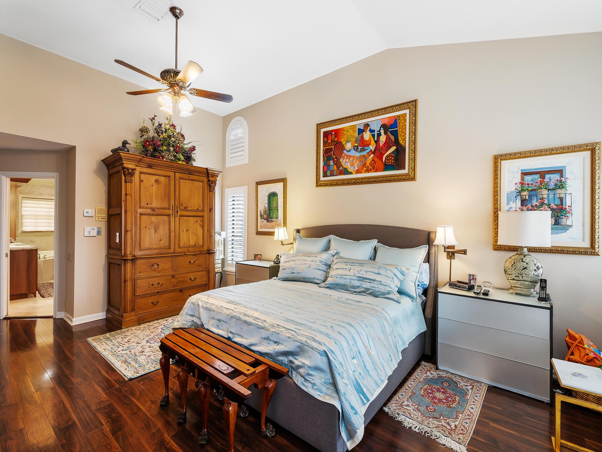 A well-loved home on a small Cul -de- sac in Cypress Head. This house sits on a builder's acre with the best lake views in the community with over 295 ft of lake frontage. This well cared for home features all updated bathrooms, updated kitchen as well as 24x48 porcelain tiled floors, throughout the main living areas. The lake can be seen from most rooms with beautiful sunsets. The large backyard has privacy on both sides. The open pool and patio areas features a summer kitchen made of granite and brick, and a handmade rock waterfall, Accordion shutters on all windows and doors, recently installed, full house generator with a 500-Gal gas tank.Beautiful trees, and lush landscaping with Washingtonian palms and much more
